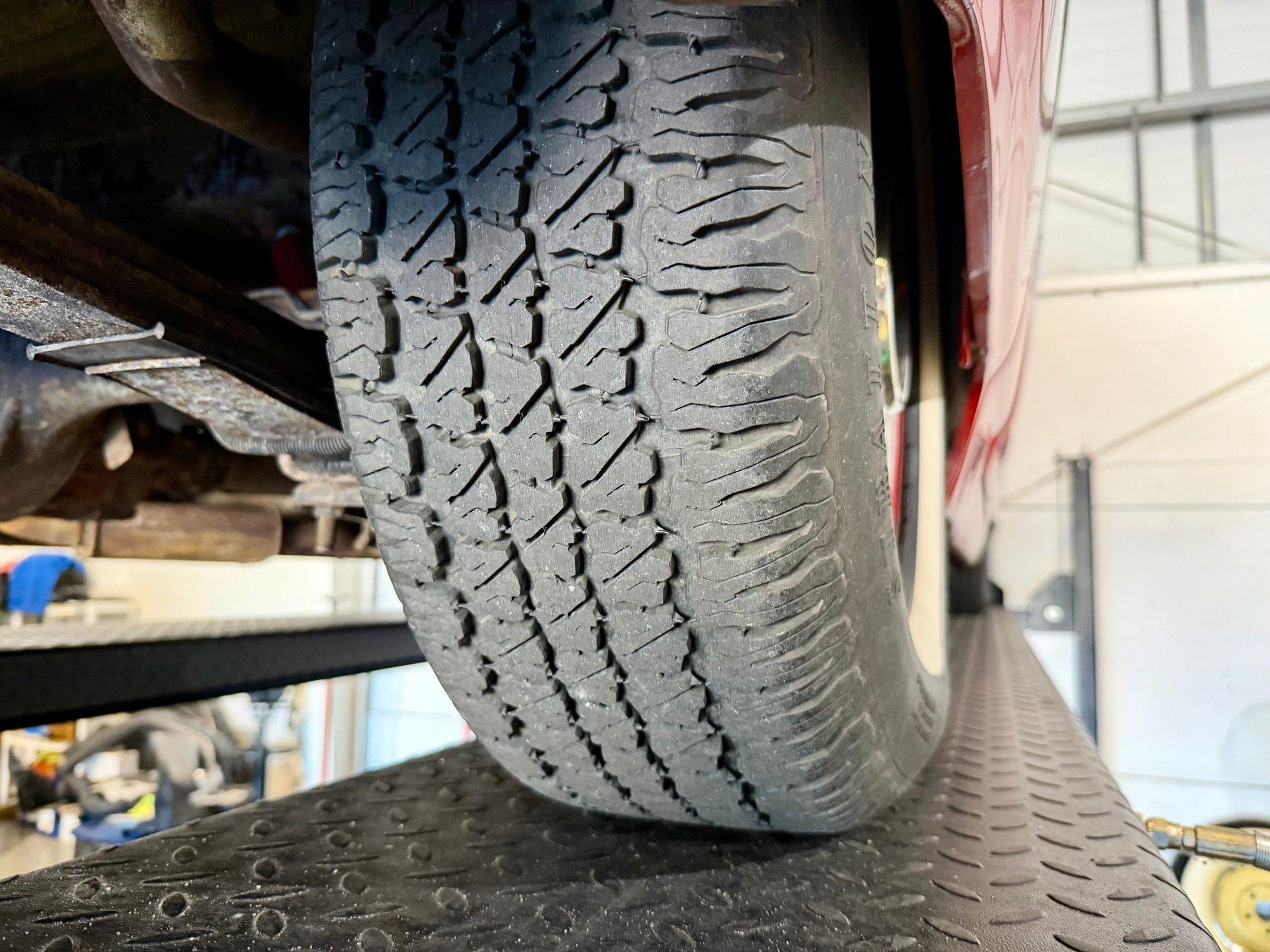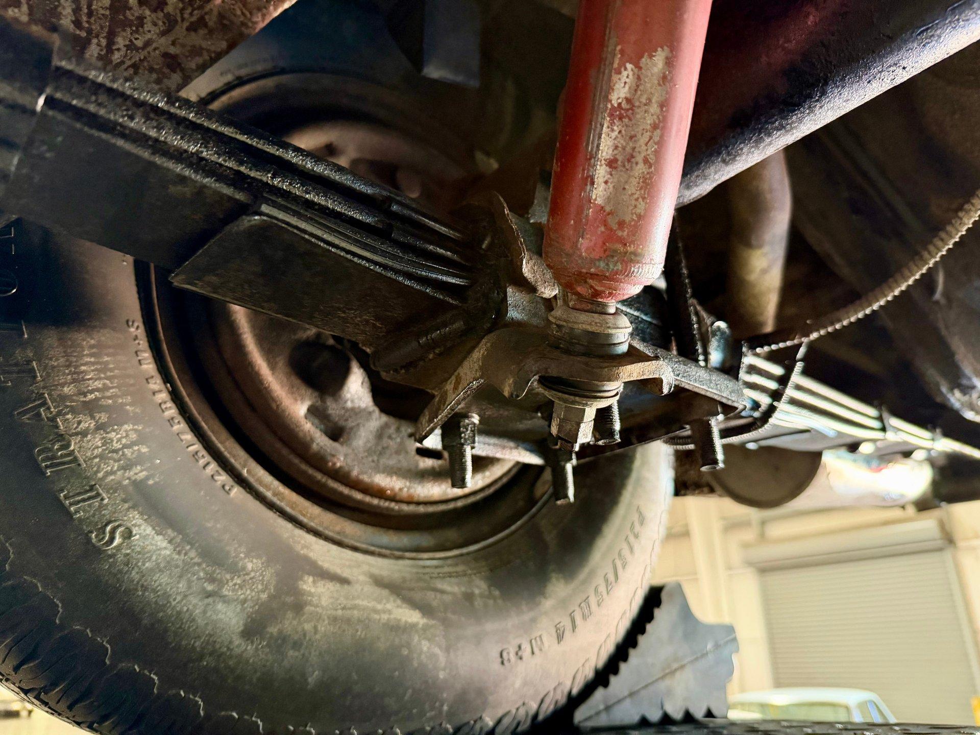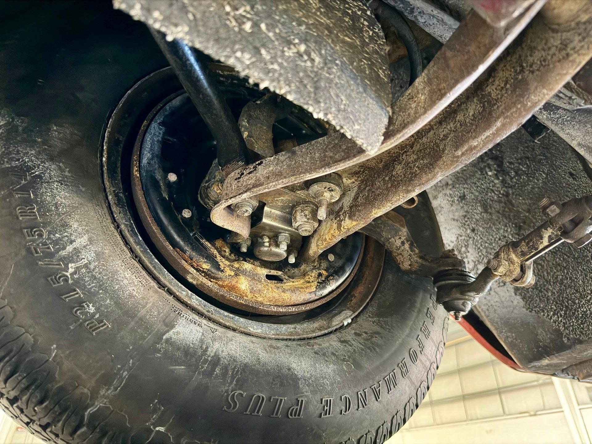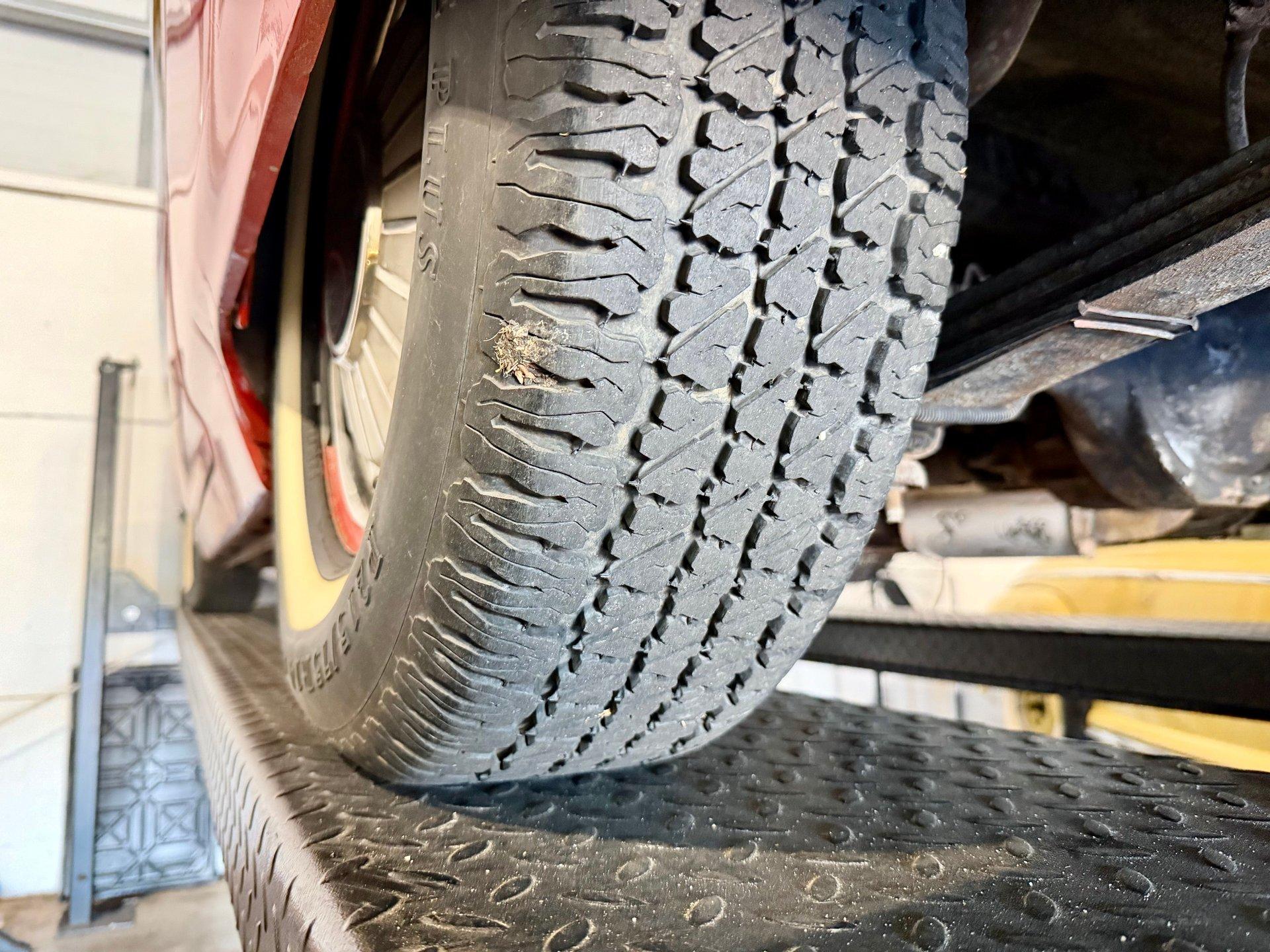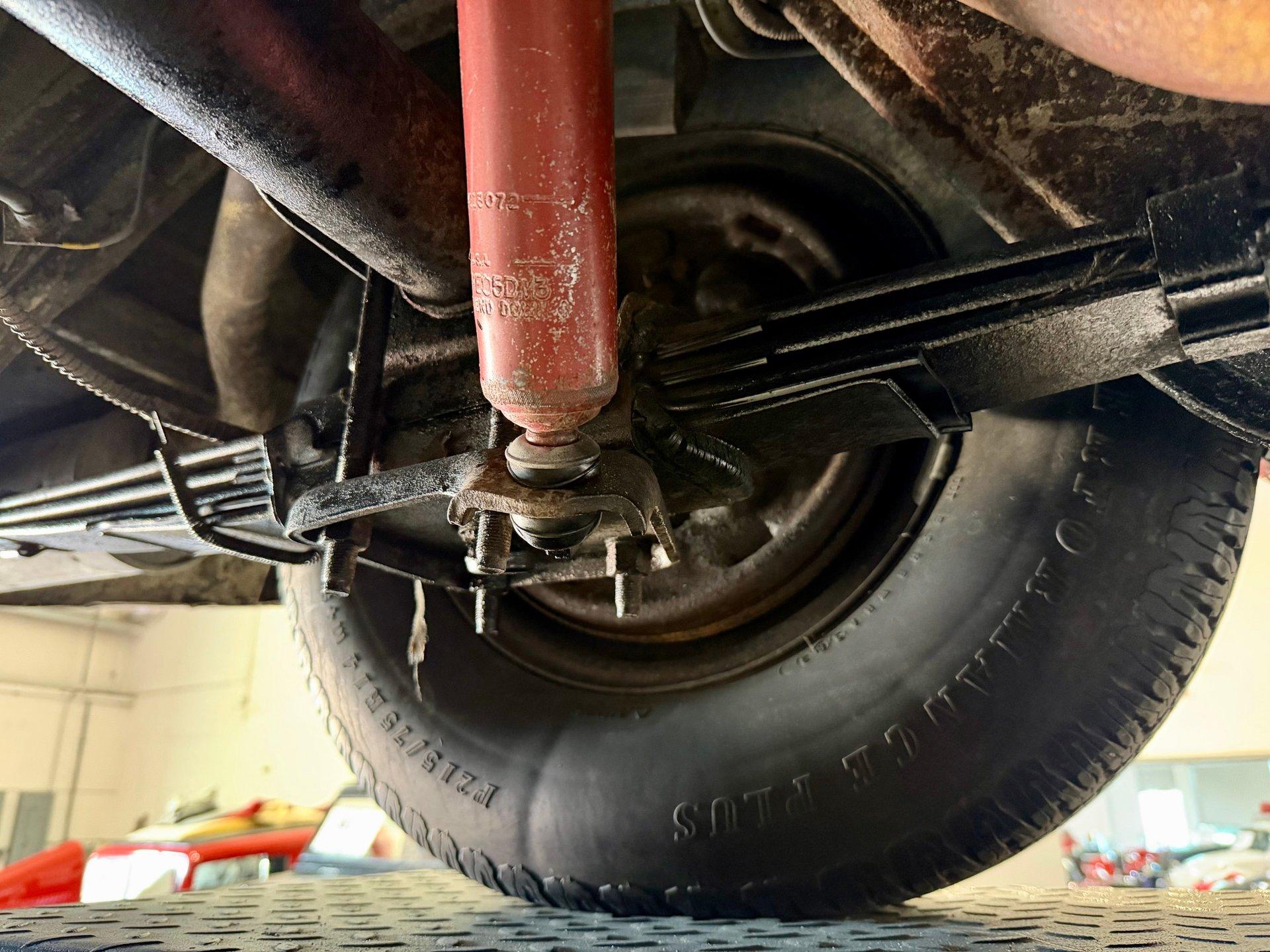 Open up the driver's door and you will see a nice honest red vinyl interior with bucket seats and a beautiful center console. You can get in and out with ease thanks to a tilt-away steering column, and have room for the rest of the family thanks to a roomy rear seat!