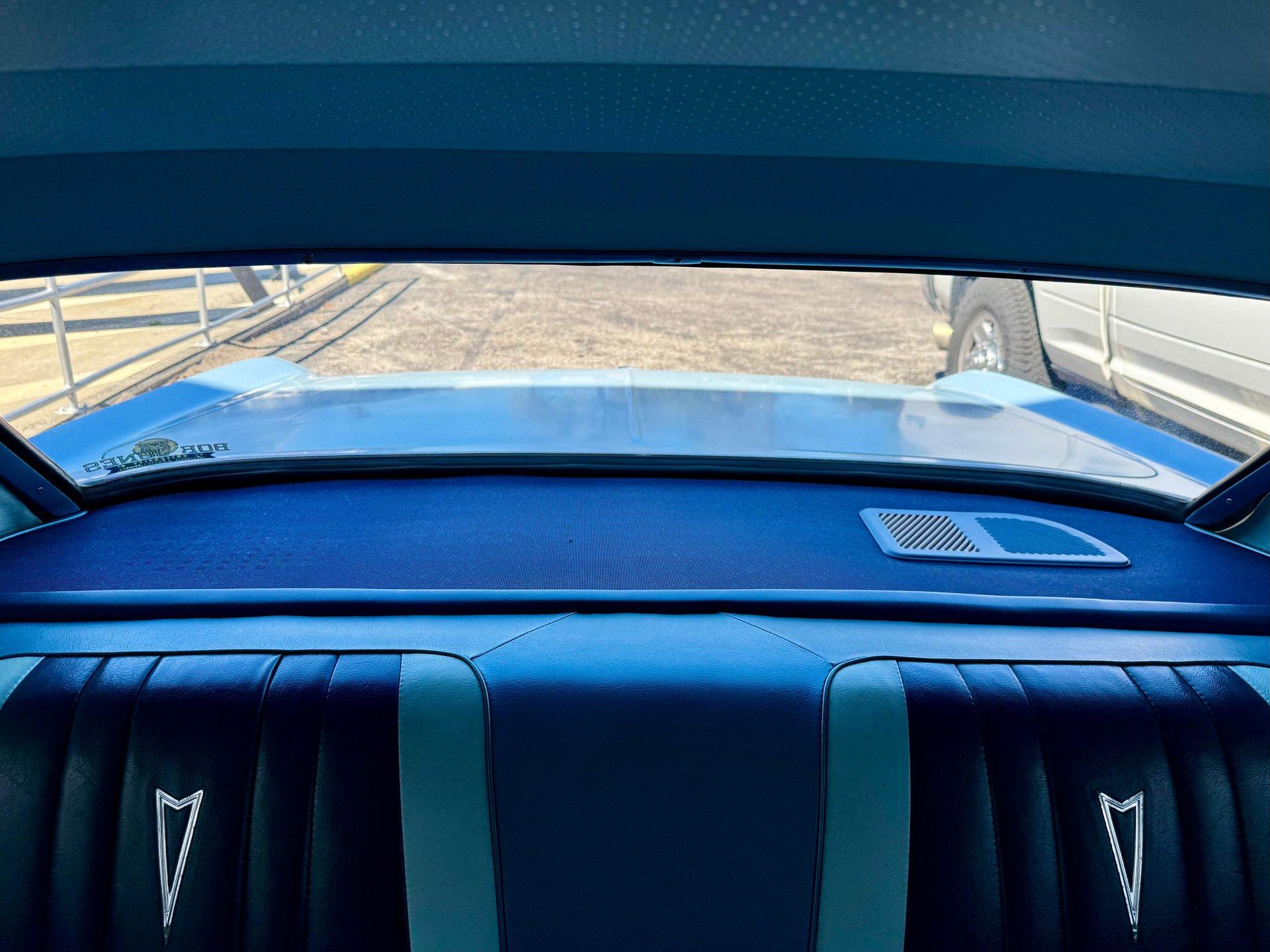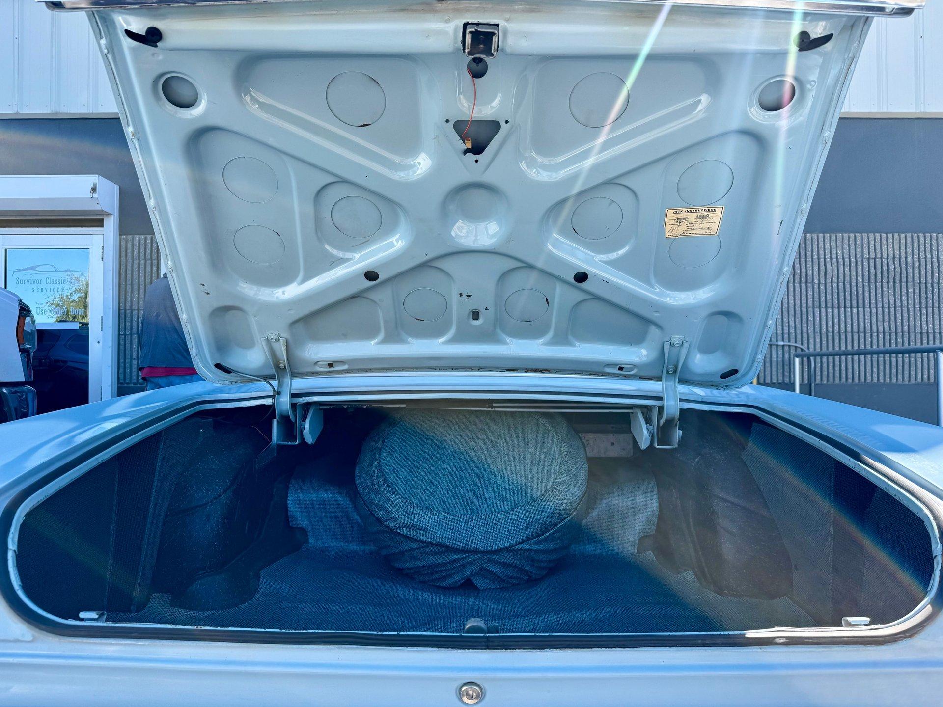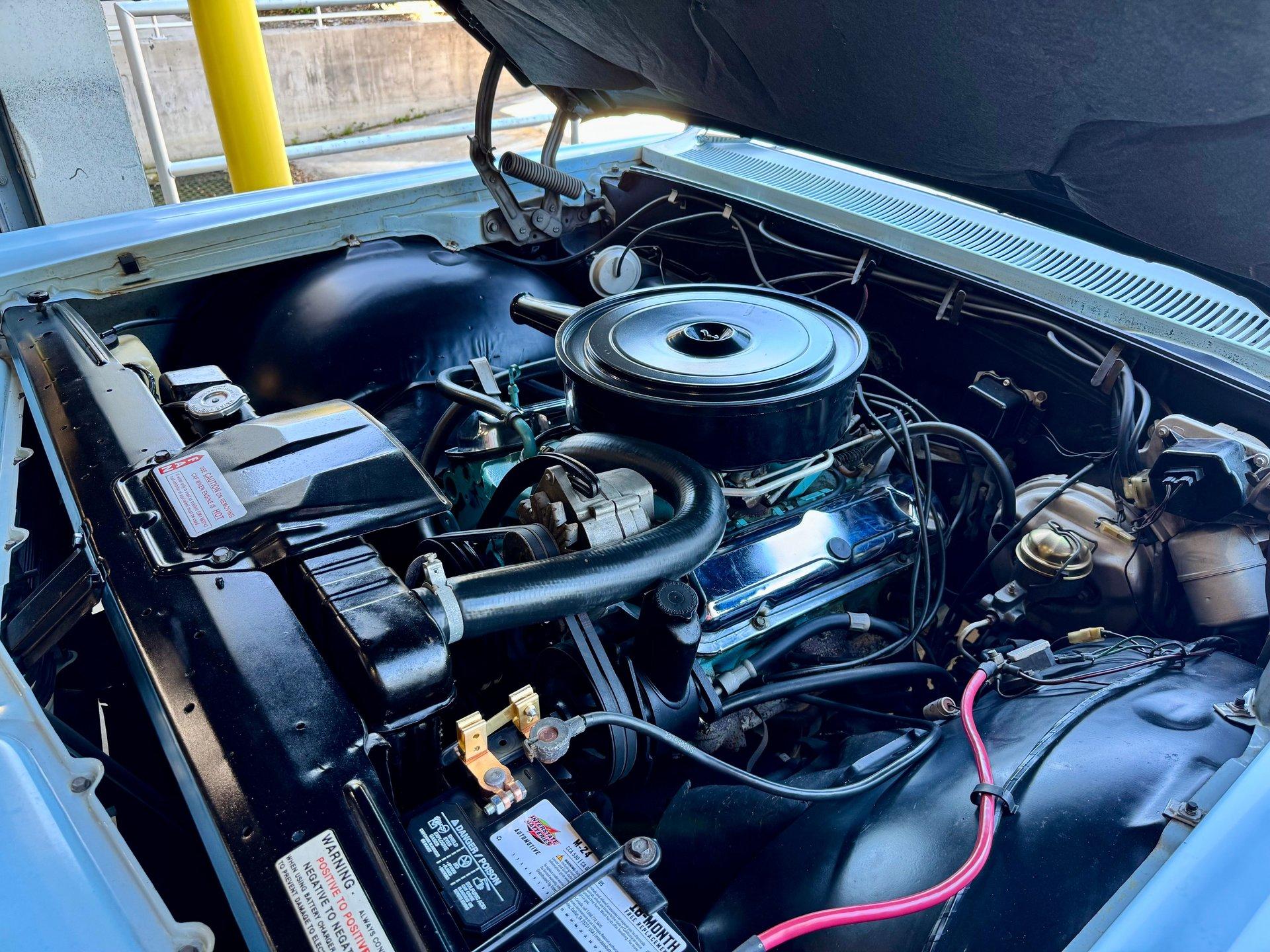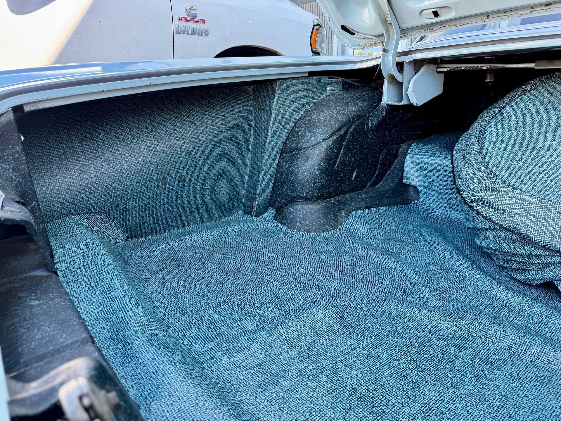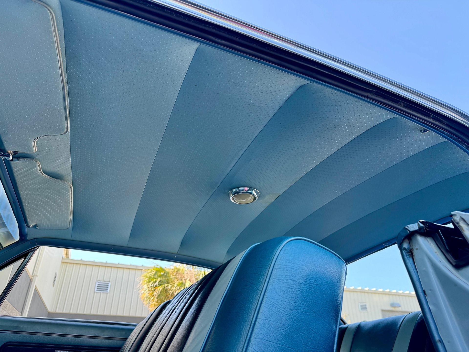 This particular example is still finished in the correct Skyline Blue accented nicely by a clean, original appearing, tri color blue vinyl interior featuring a factory AM FM stereo and courtesy lighting.