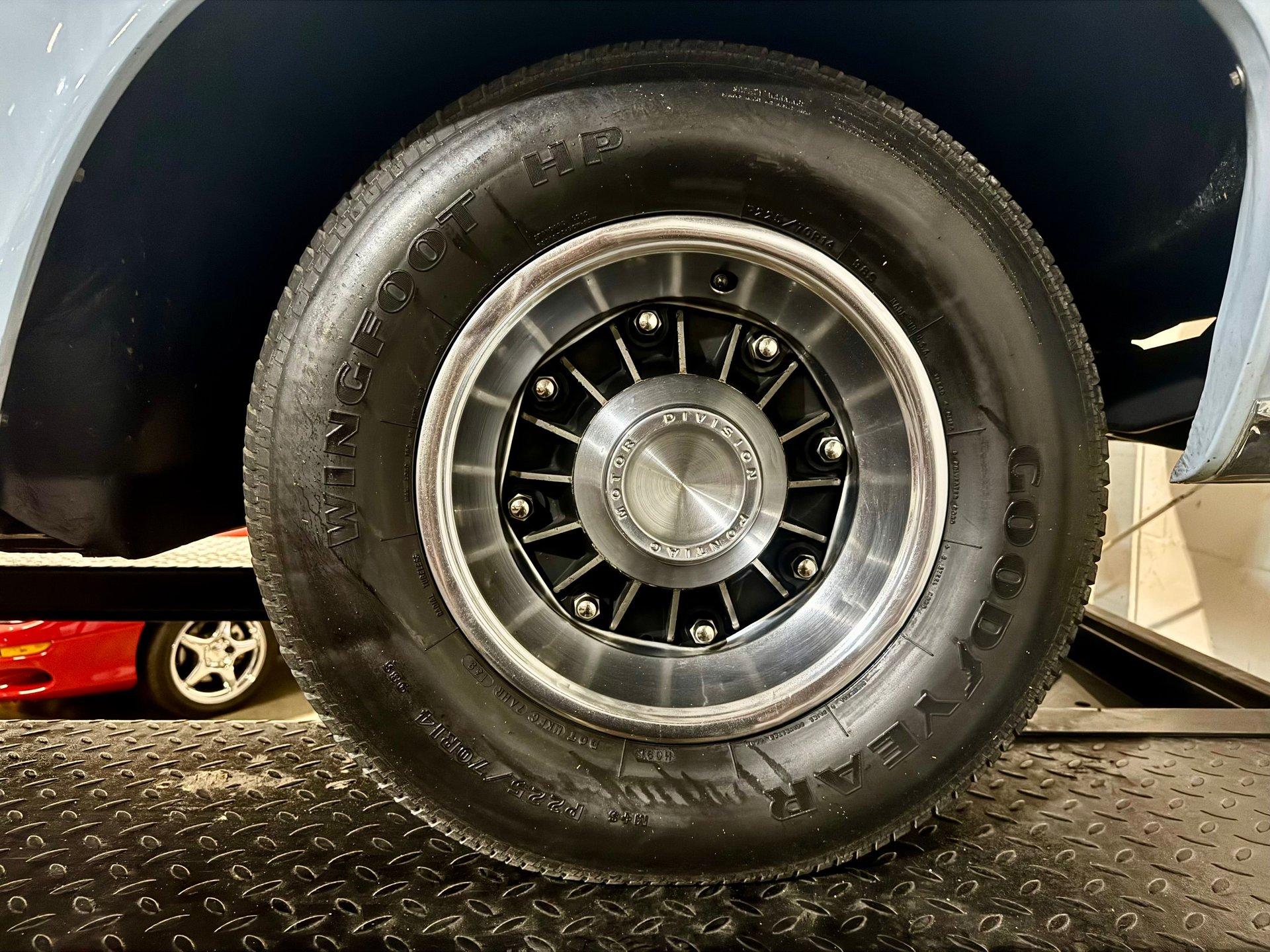 The mighty 389 CID V8 sits nicely in the engine compartment and is mated to a smooth shifting Roto Hydramatic automatic transmission. Power steering, power drum brakes, and radial tires make it a breeze for anyone to drive. Best of all it features the famous and rare 8 lug Pontiac wheels that attach directly to the brake drum!