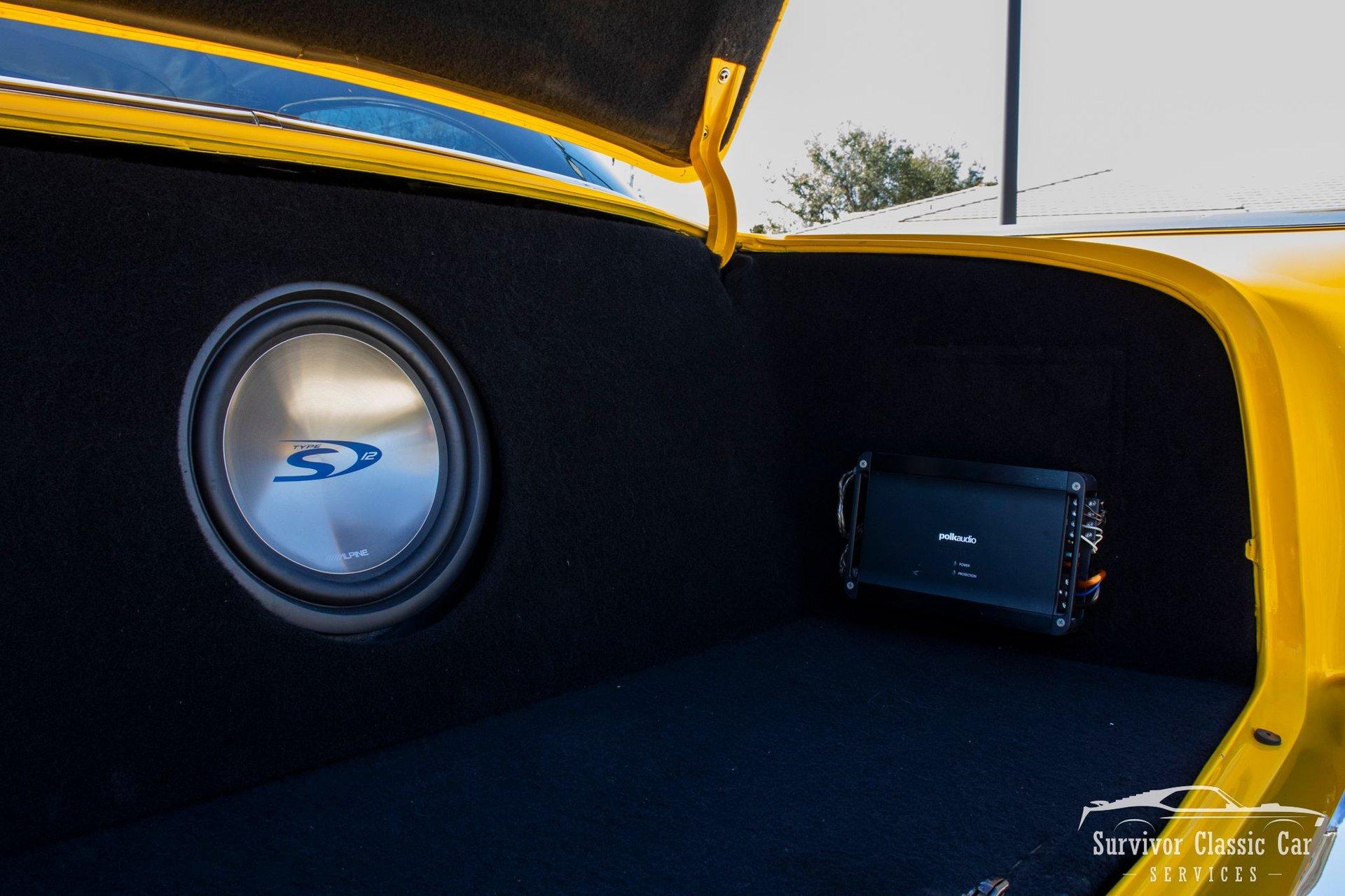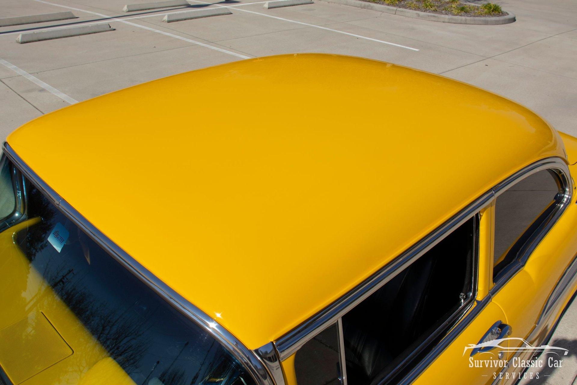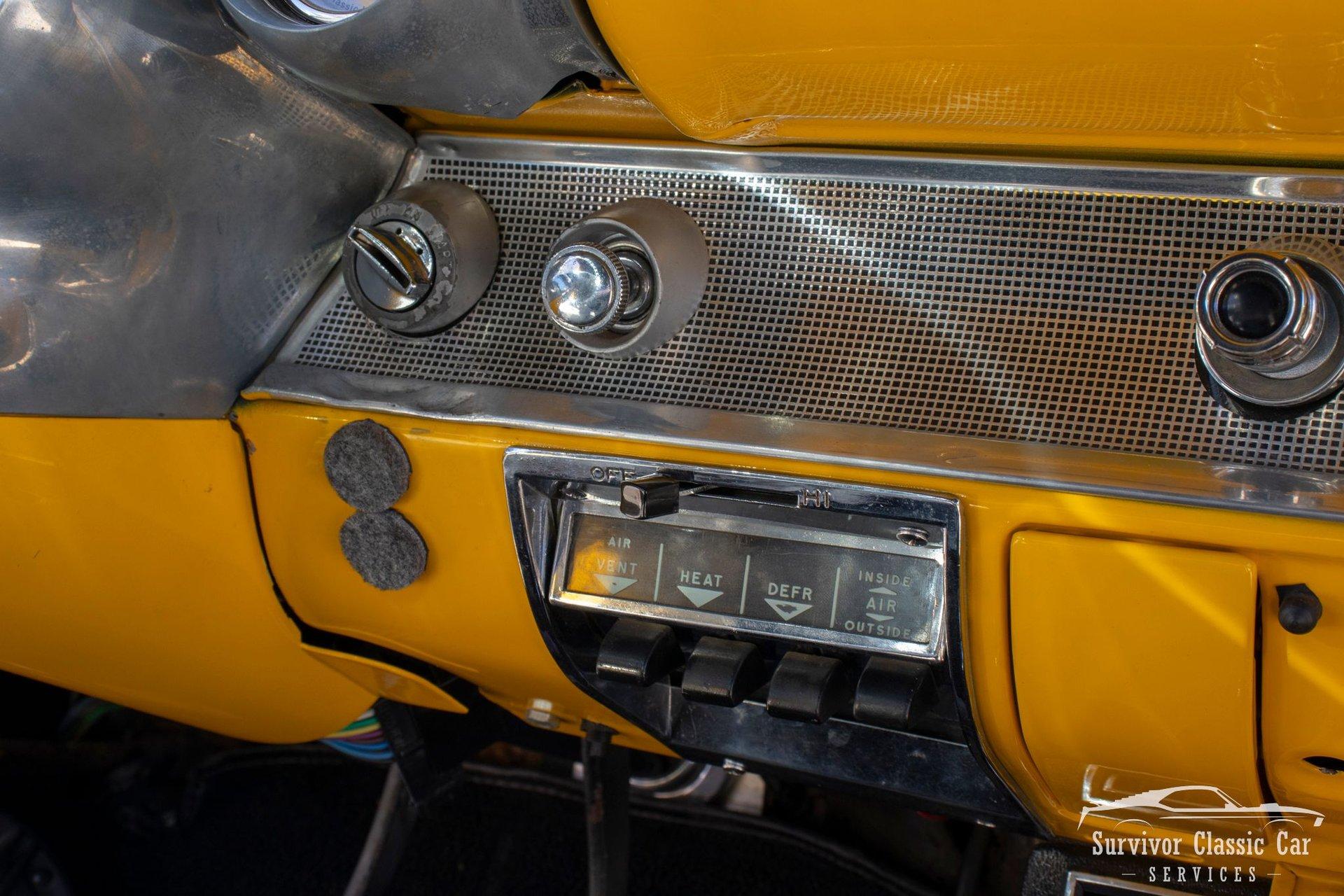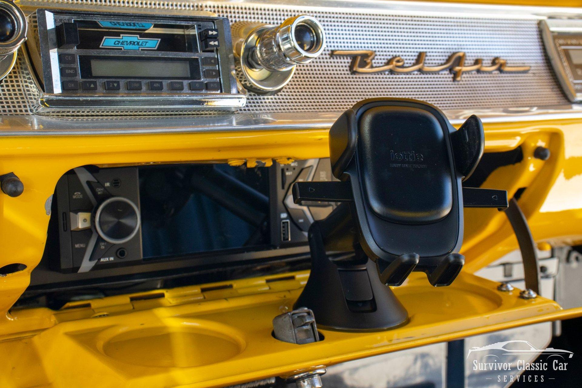 The interior is custom, but not to extreme. That Bright Yellow and Polished Chrome can be seen throughout. A Billet 1/2 Wrapped Steering Wheel attached to the Tilt Steering Column. This 1957 210 was completed 12-years ago, and has been used a just a “Weekend Show Car or Sunday driver” ... The. 4K Miles proves how clean & “new” the the interior still is. The Seating has been swapped out with a 1963 Impala Front Buckets & Rear Bench. And the Audio is sharp with a Clean Alpine Install.