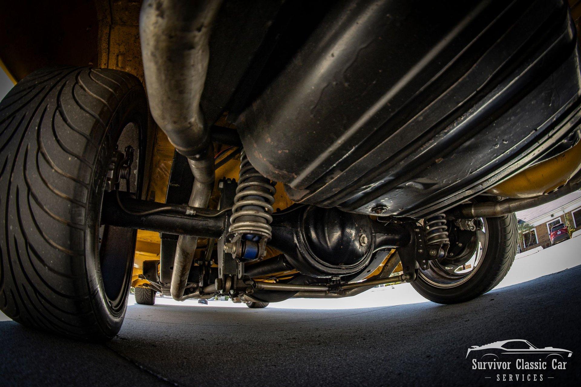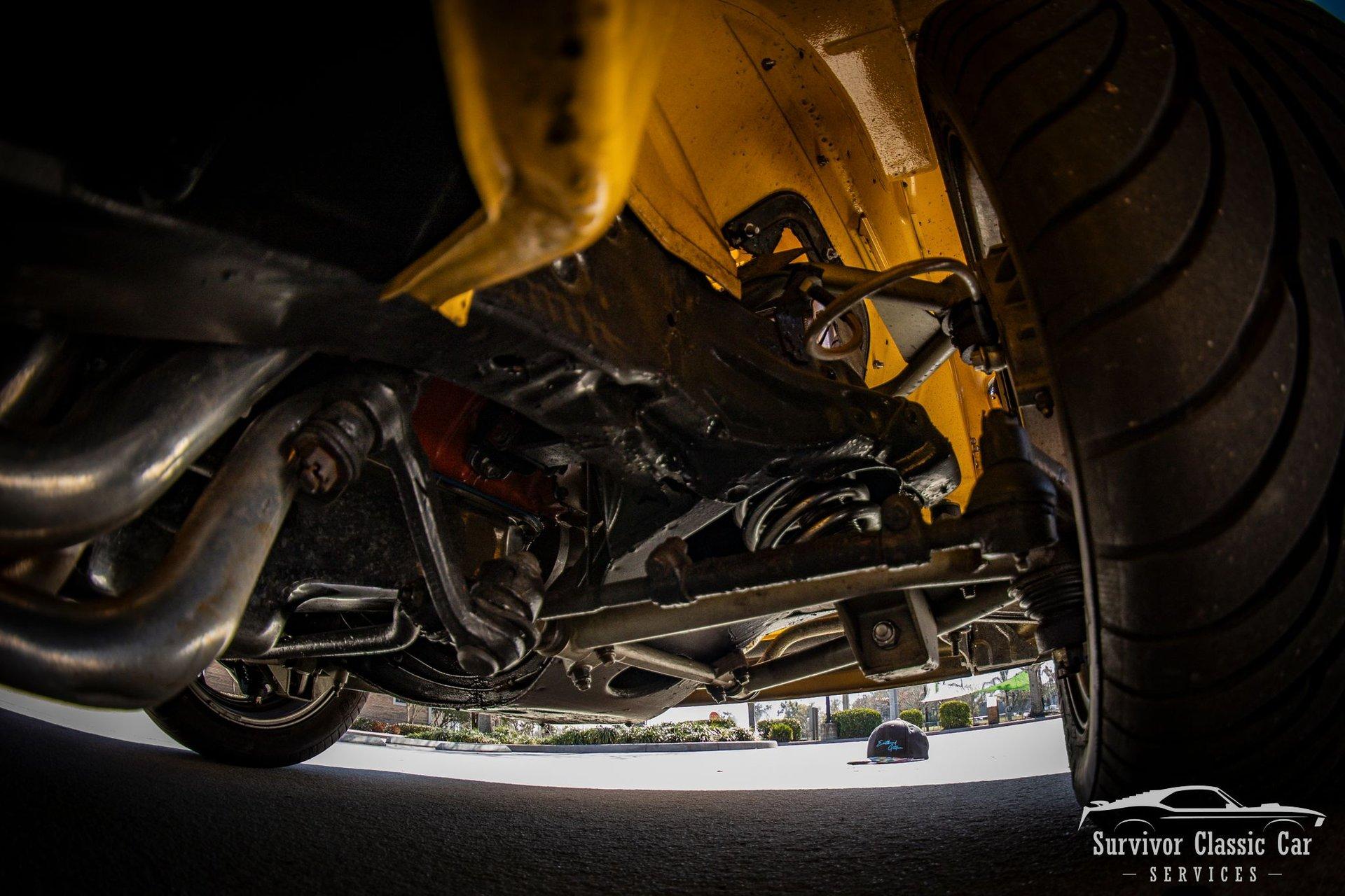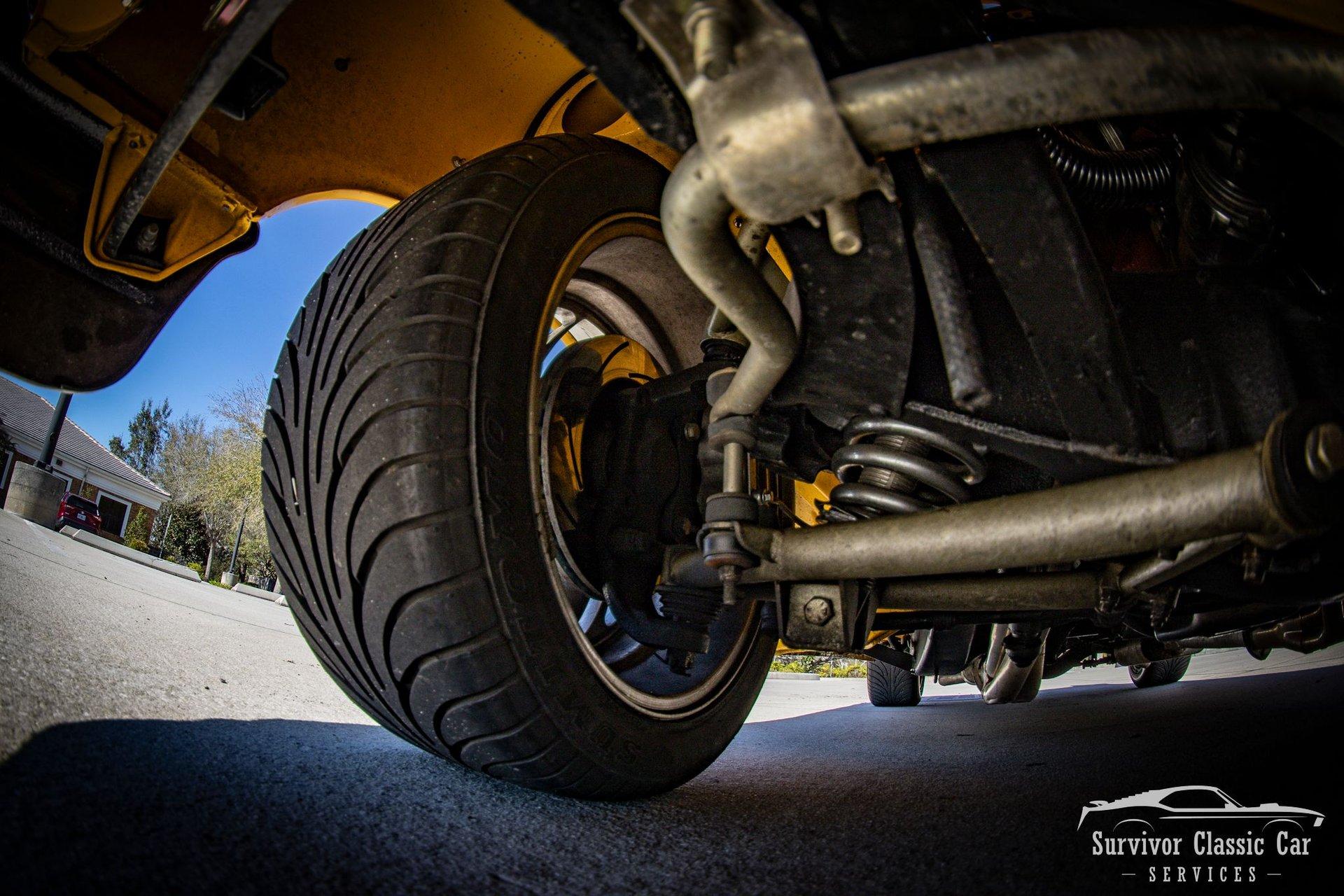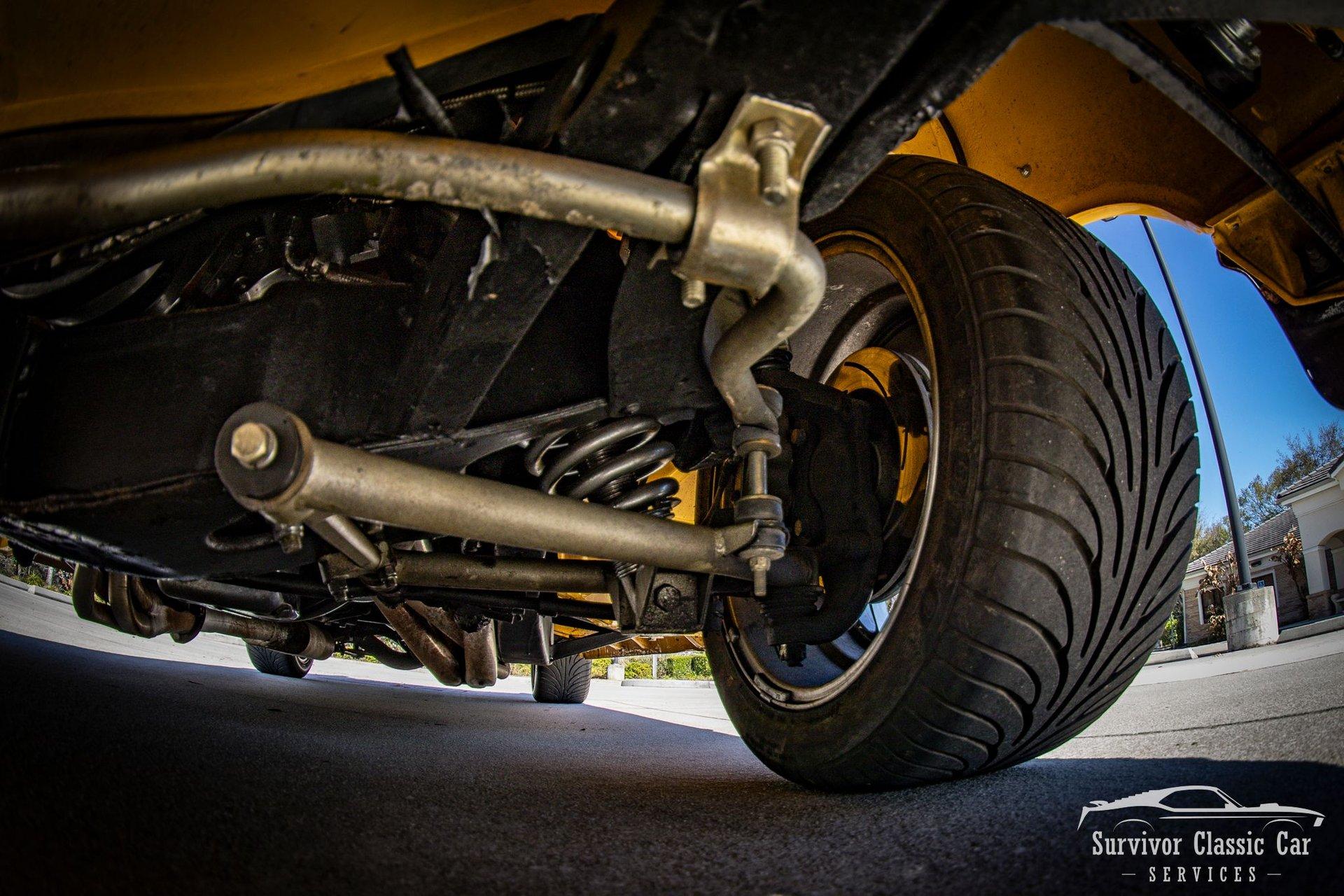 This 210 does sit on the Original Frame Rail, with has beed lowered with Adjustable Coil-Overs on all 4-Corners. The Front Subframe was been fitted with Tubular Control Arms & a Larger Sway Bar, while the rear has been fitted with 4-Link Ladder Bars. Unfortunately a Note to consider... the tires are in need for a more ”peace of mind ride” (They are 20yrs old - yet show ZERO SIGNS of age, distress marks or leaking).
