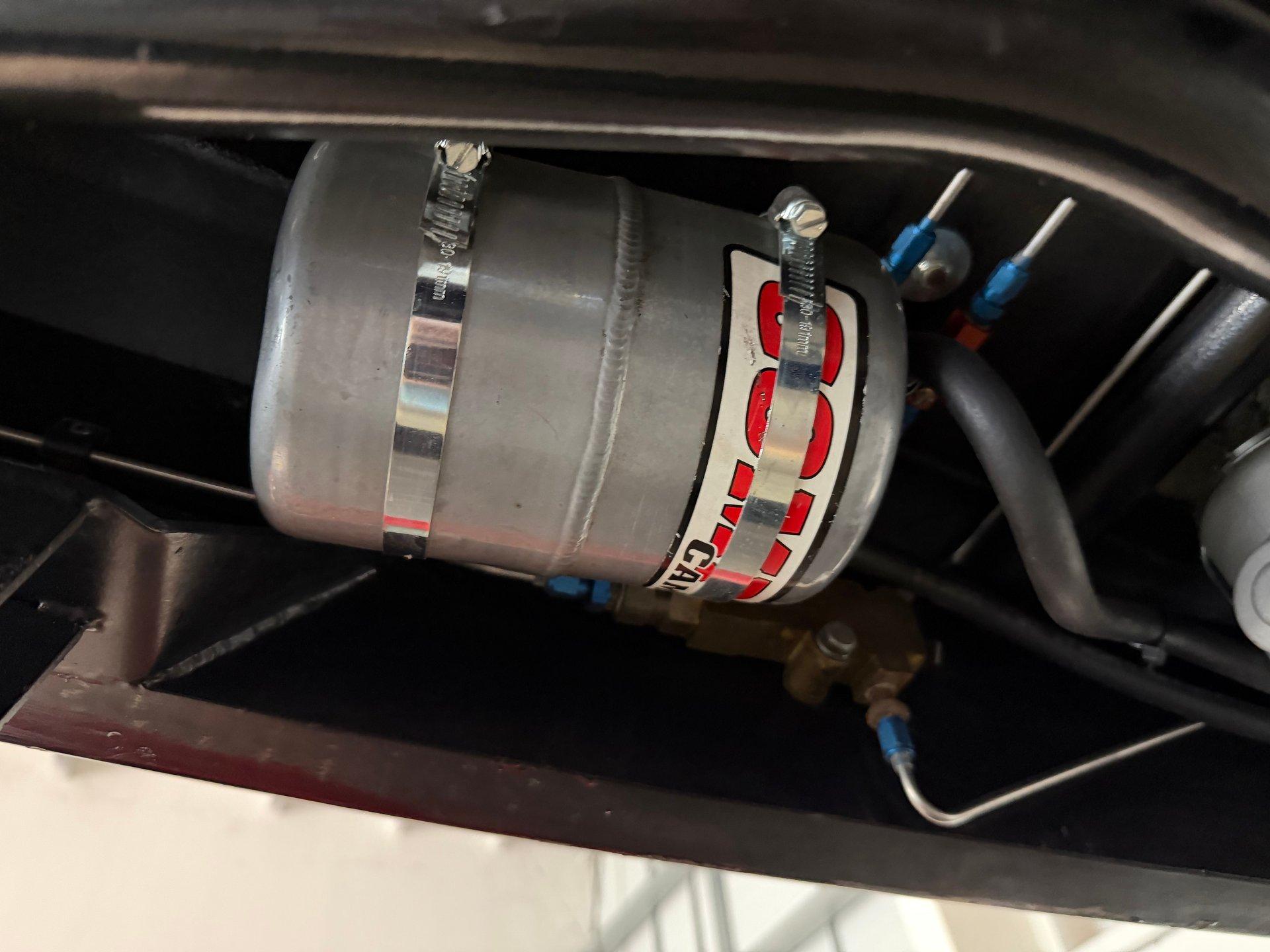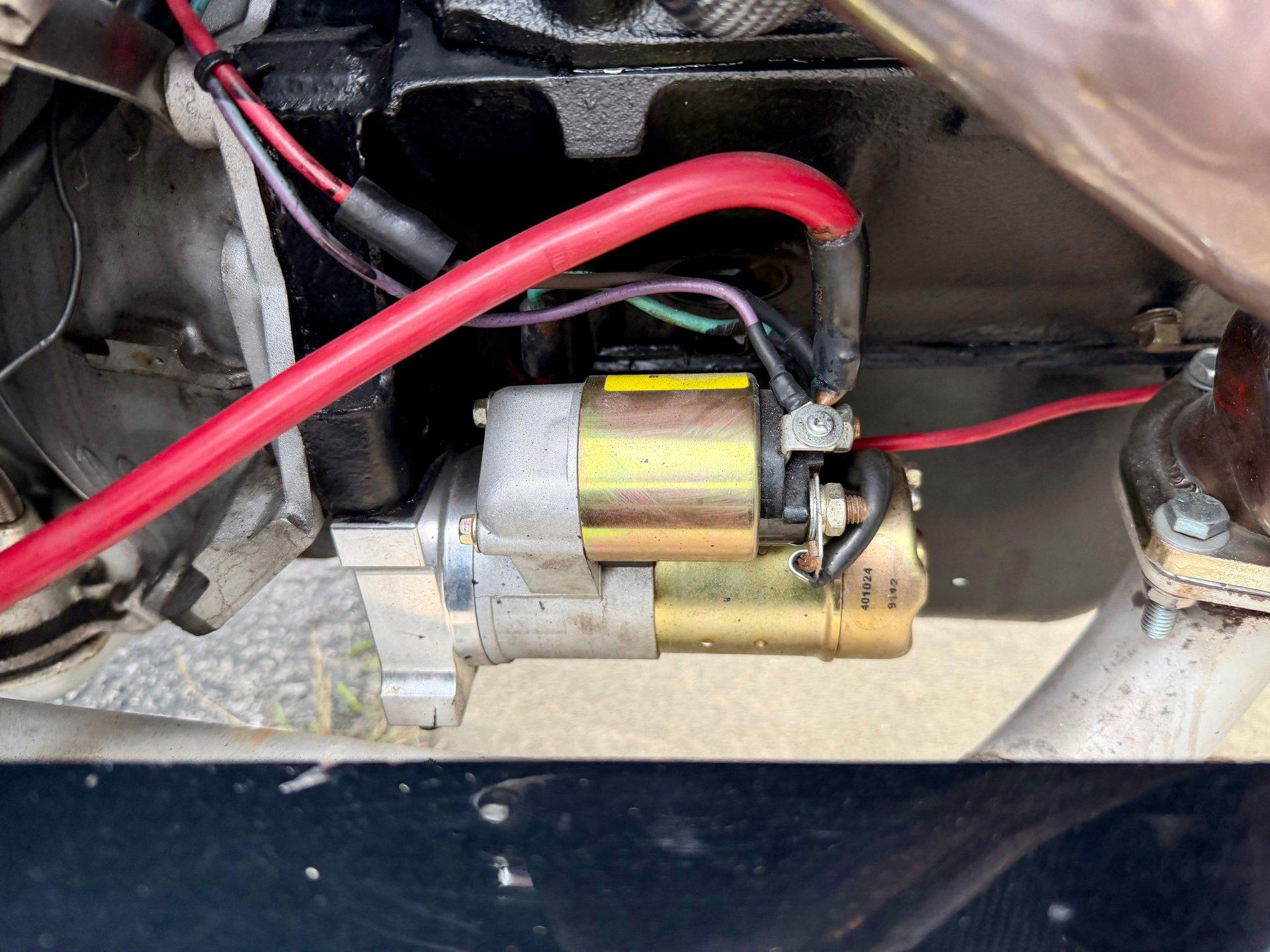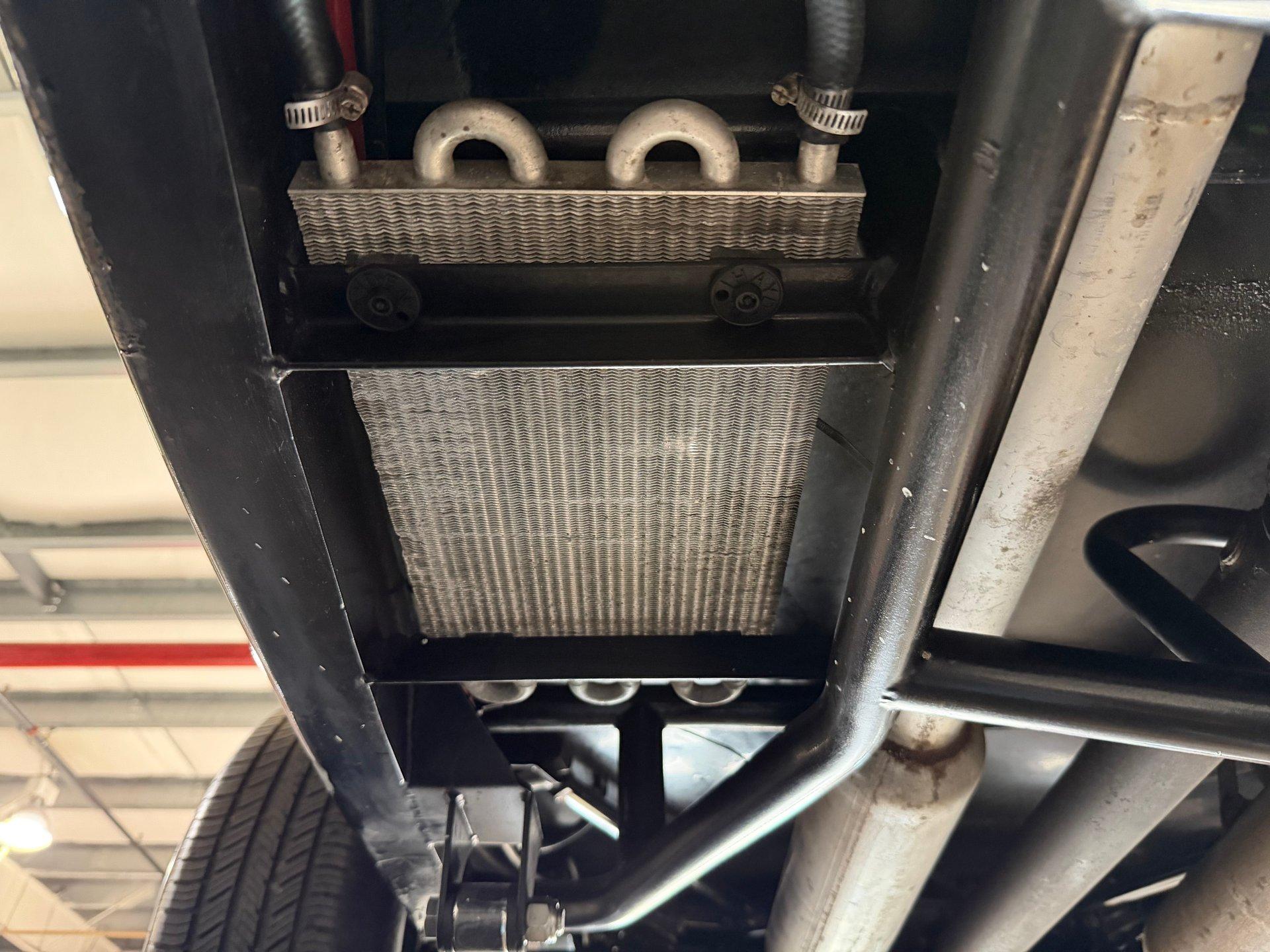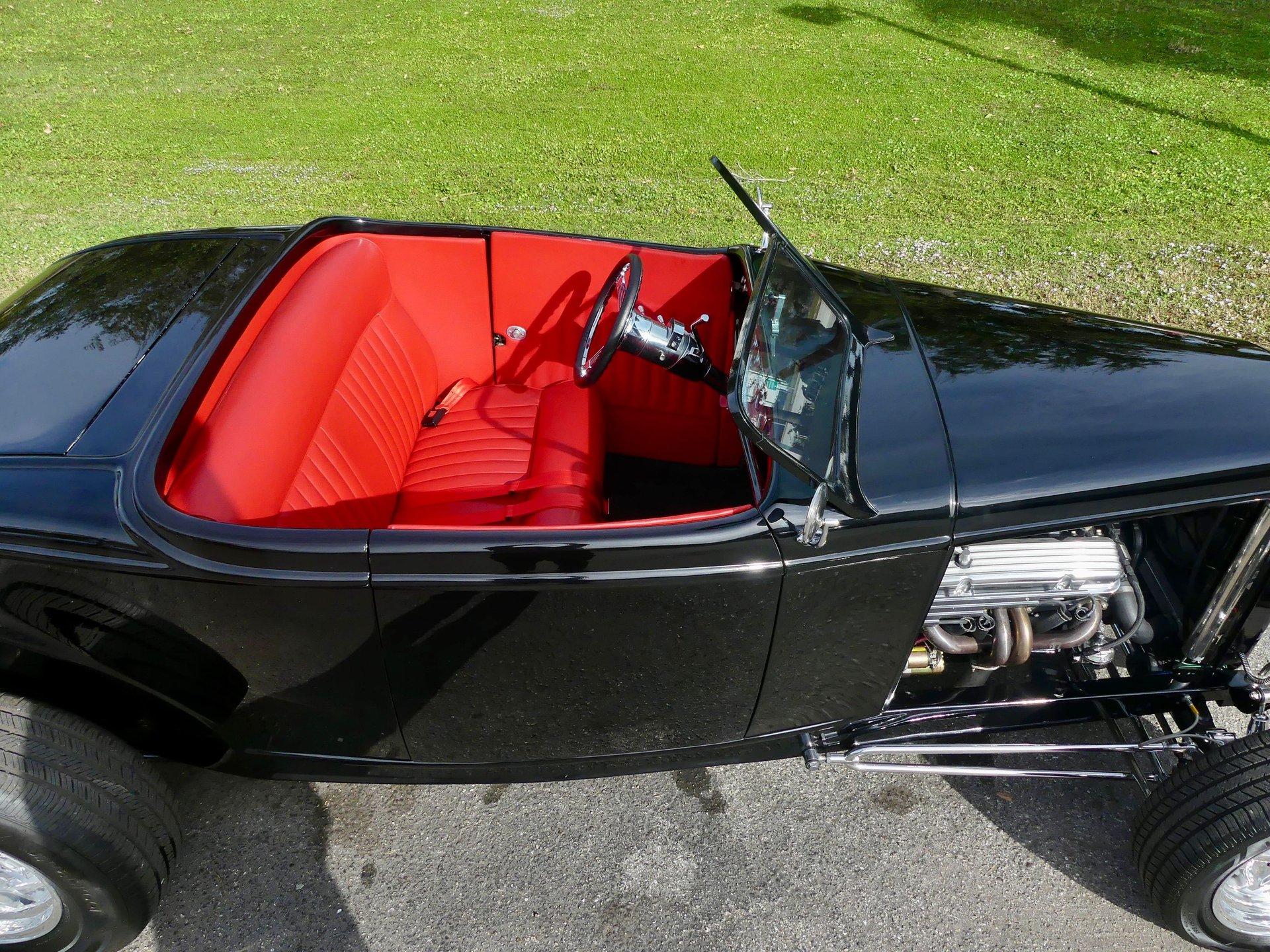 The interior is bright red which brings a nice pop of color against the all black exterior. Stewart Warner gauges sit in a polished bezel in the dash. Tilt steering column, billet pedals, and a classic banjo steering wheel finish off the show quality interior nicely. Under the hood sits a 350 CID V8, that is believed to be stroked to 383 cubic inches, but we do not have documentation on that. It is backed by a smooth shifting 700R4 making this Model A ready to hit the highway and cruise!