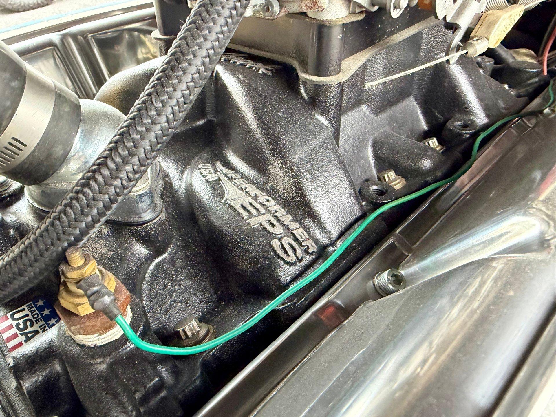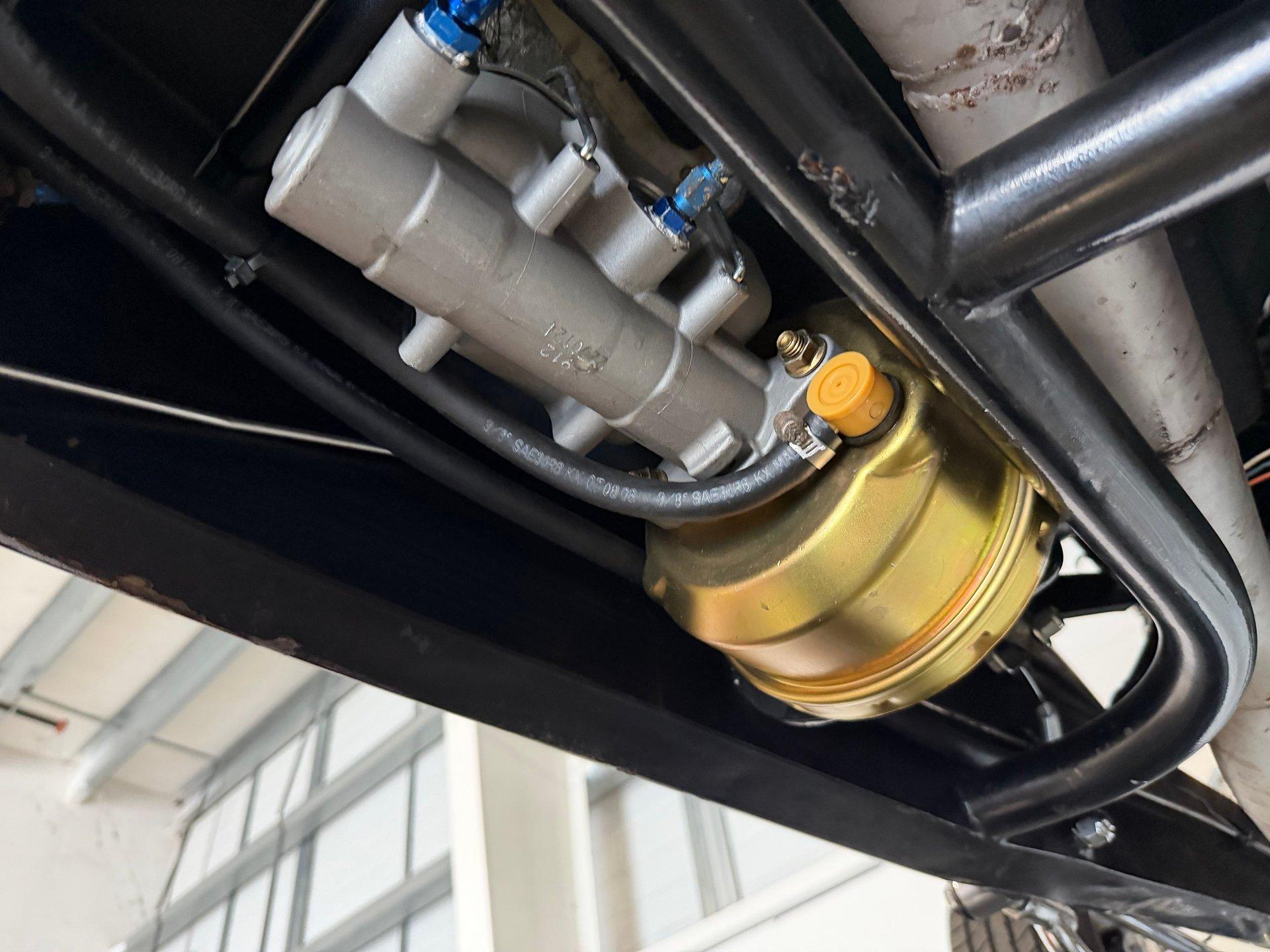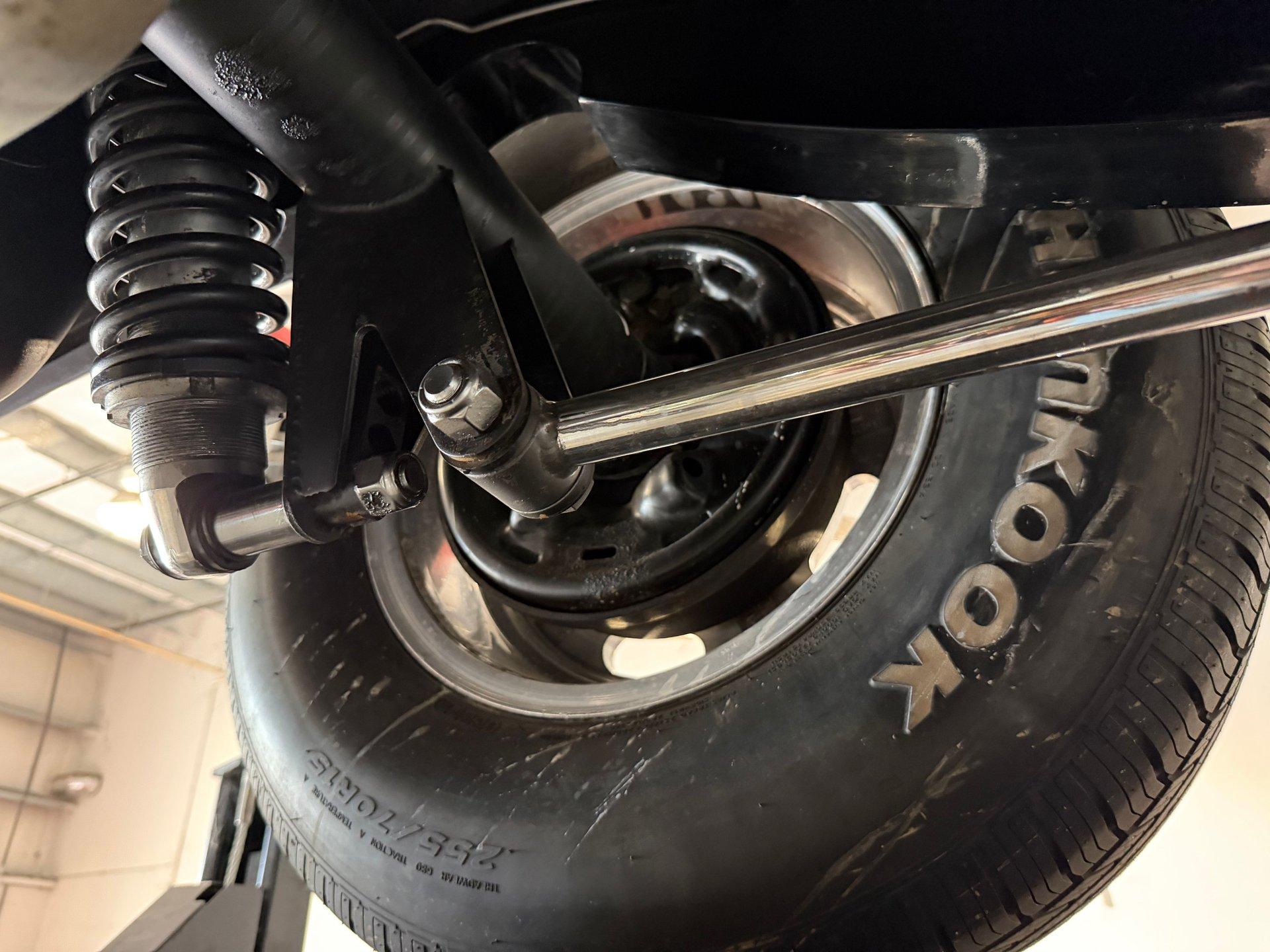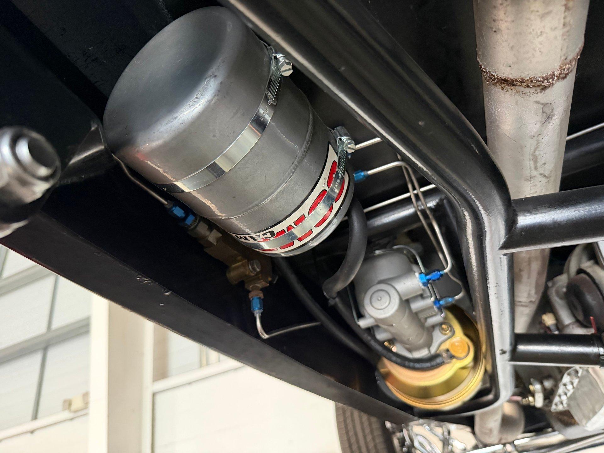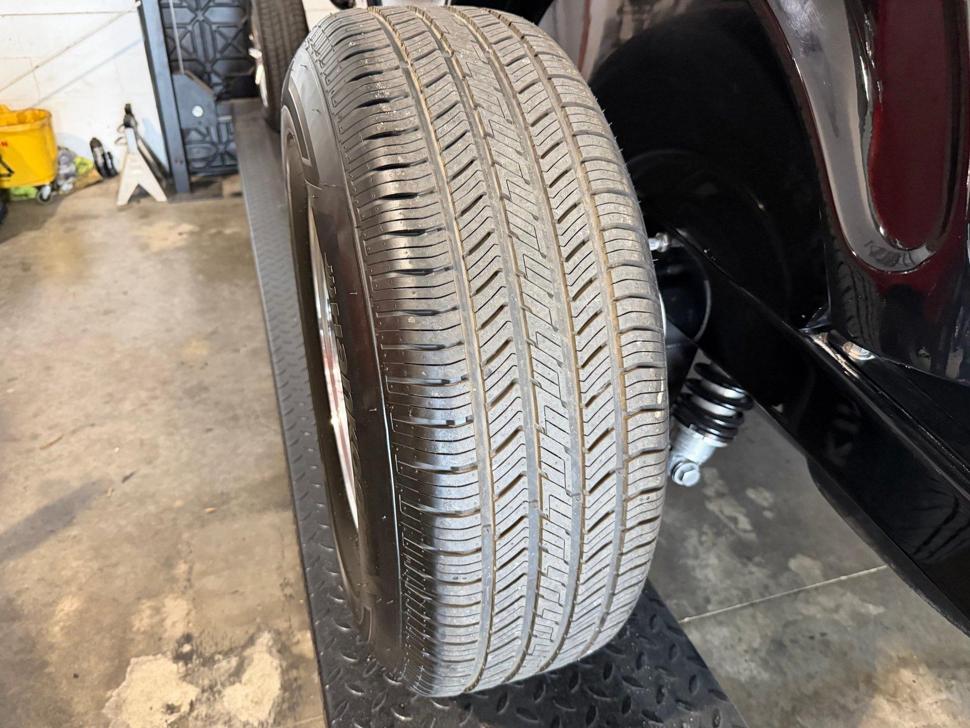 The engine is built with a Holley 4-barrel carburetor, Be Cool aluminum radiator with electric fan, MSD plug wires, Accel plugs, HEI distributor, mild cam, and headers. The front end is an inverted leaf with shocks and is all chrome for a show quality look and nice ride quality. Disc brakes on the front and adjustable coil over shocks on the rear also help give this street rod a nice ride. The brake lines are all stainless, which gives a nice finished look, and provide great performance versus soft lines that can swell and collapse.