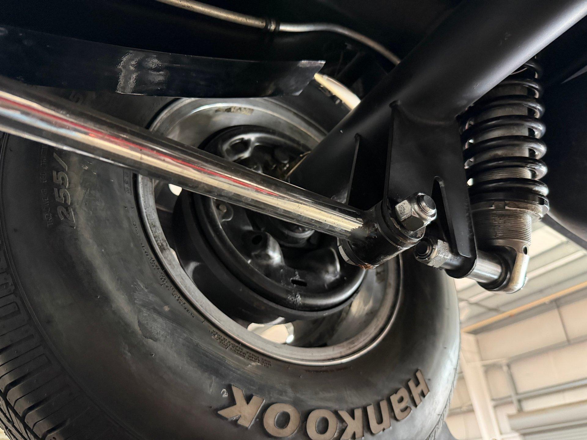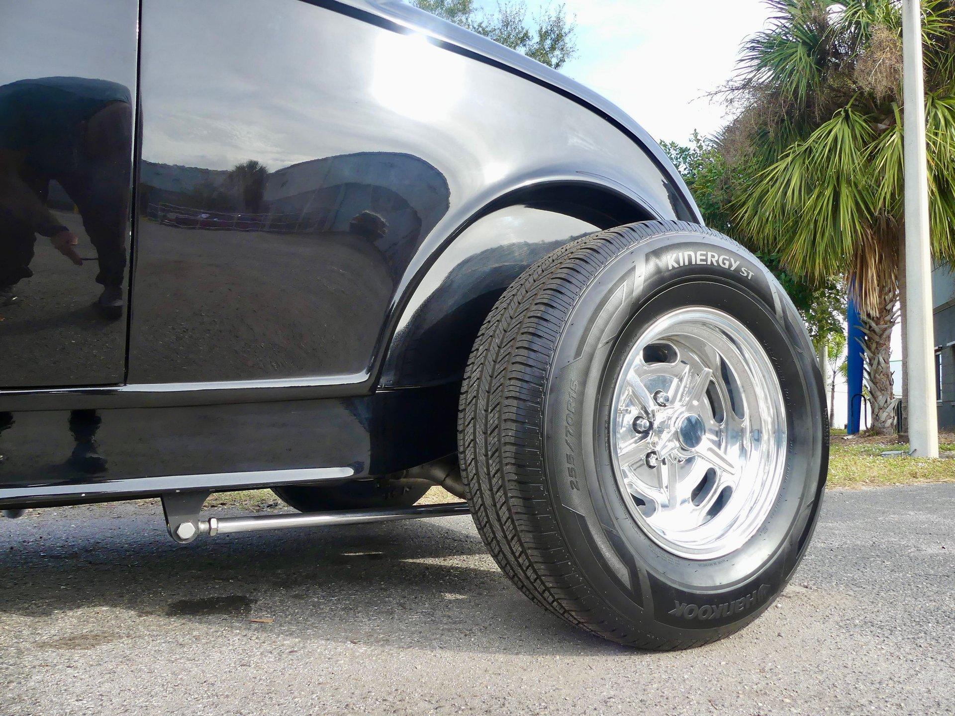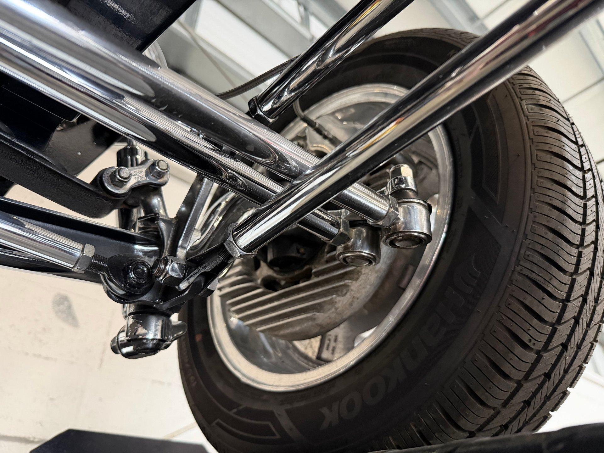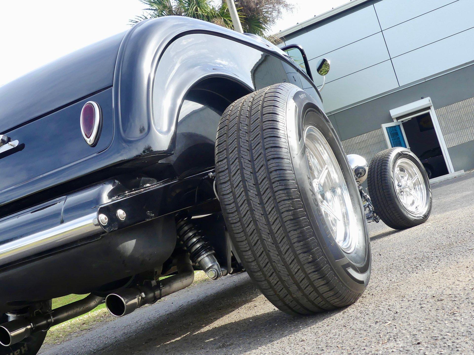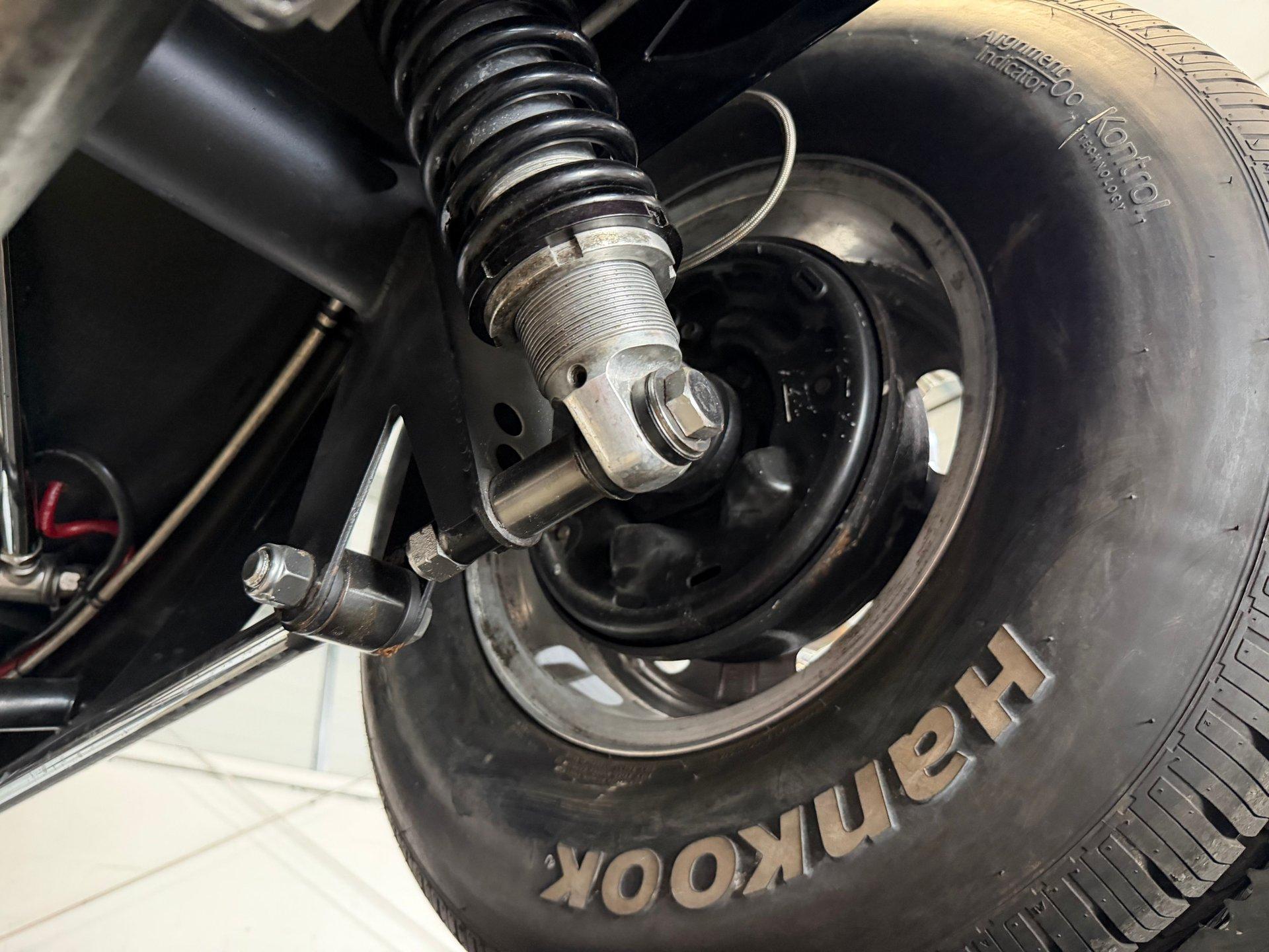 The fiberglass body is painted a super high gloss black, which when paired with just the right amount of chrome and polished pieces is an absolute show-stopper! Salt Flat wheels are wrapped in radial tires with the classic big & little look giving it just the right stance.