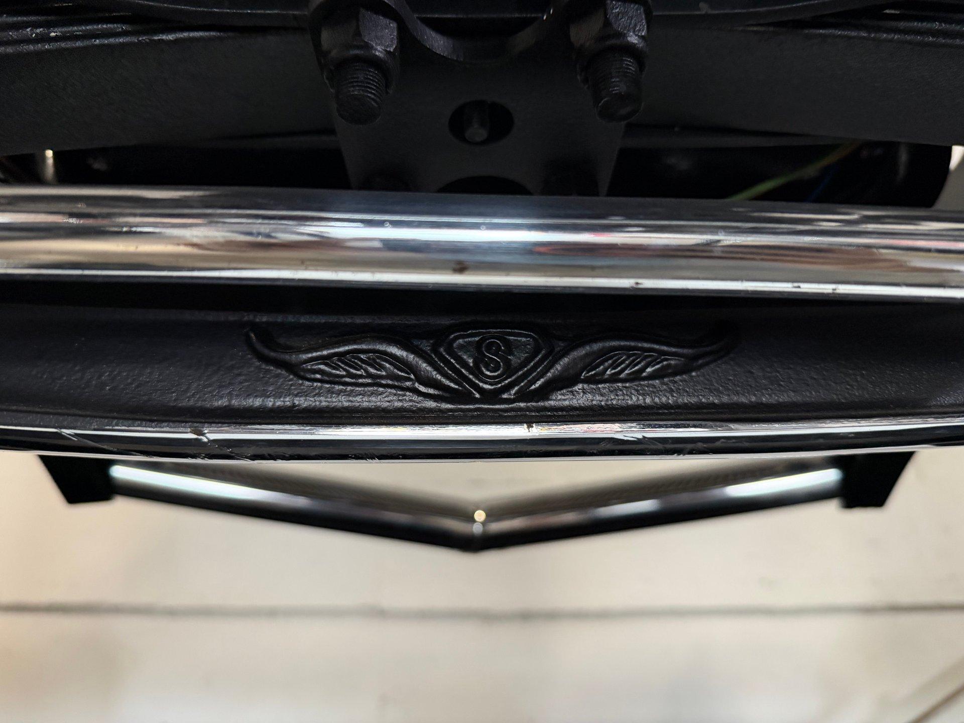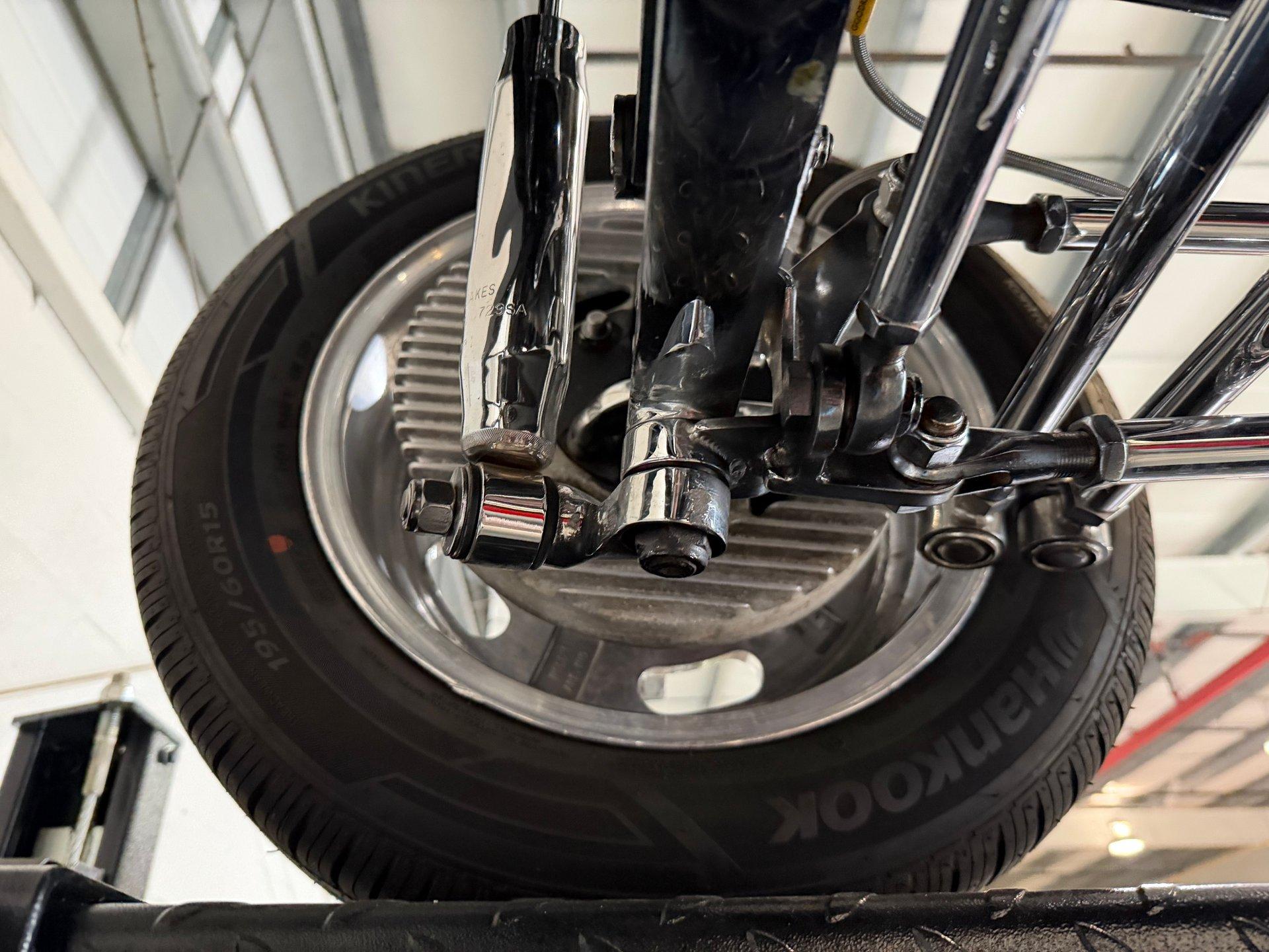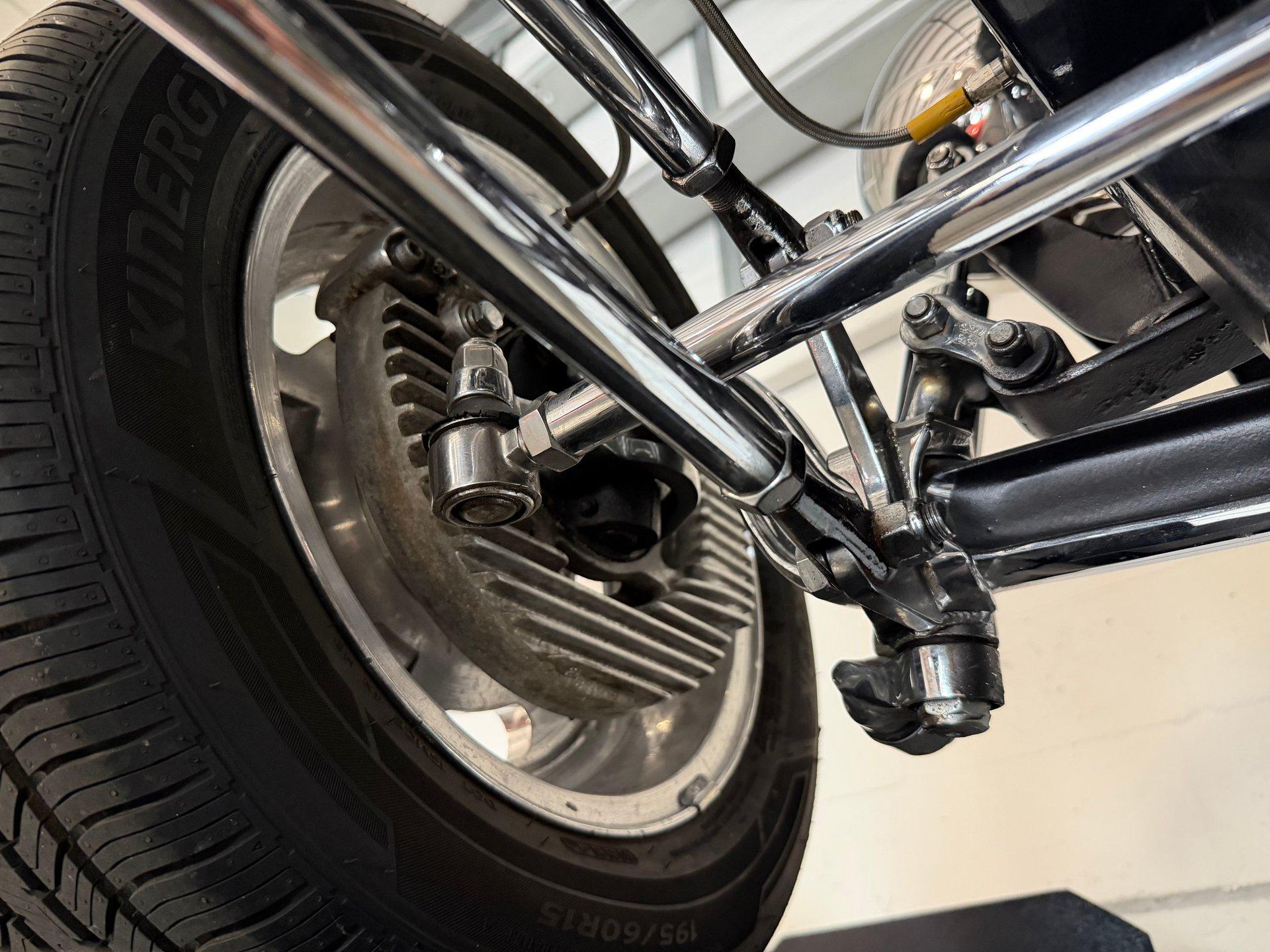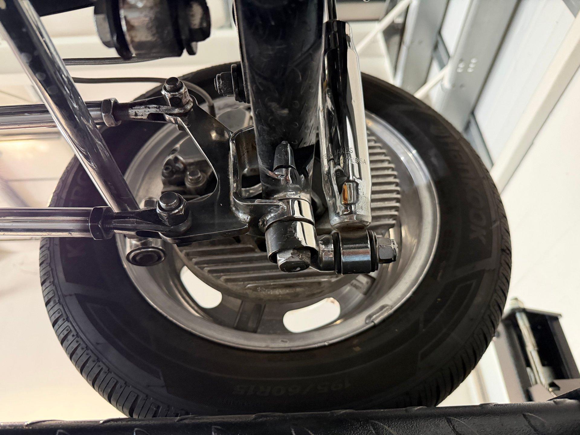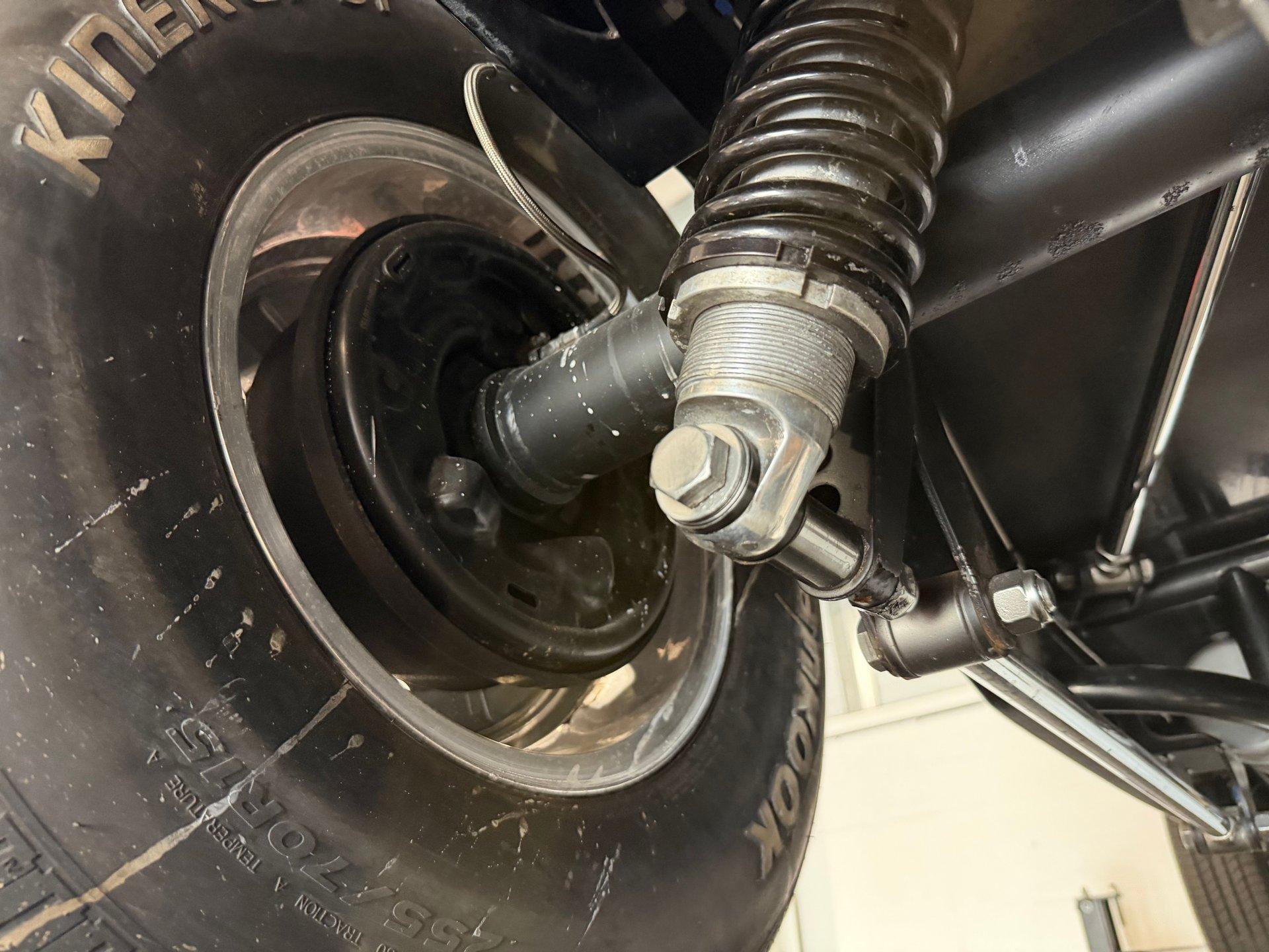 The fiberglass body is painted a super high gloss black, which when paired with just the right amount of chrome and polished pieces is an absolute show-stopper! Salt Flat wheels are wrapped in radial tires with the classic big & little look giving it just the right stance.