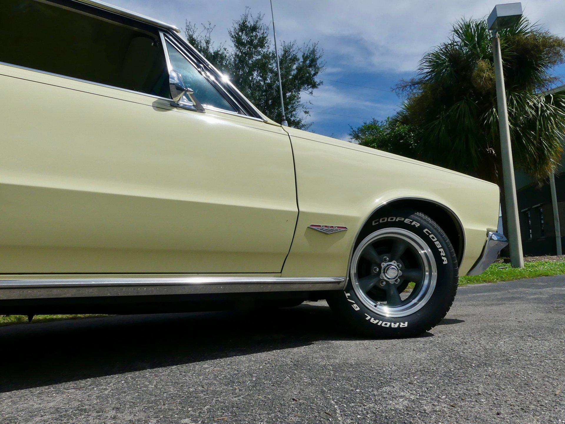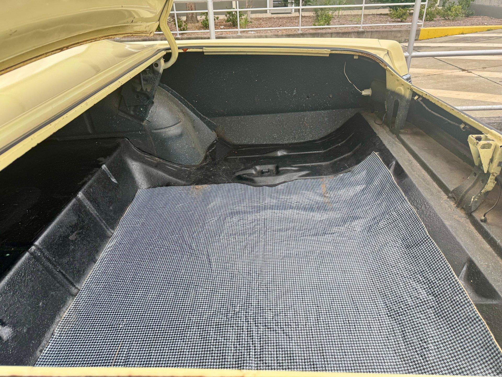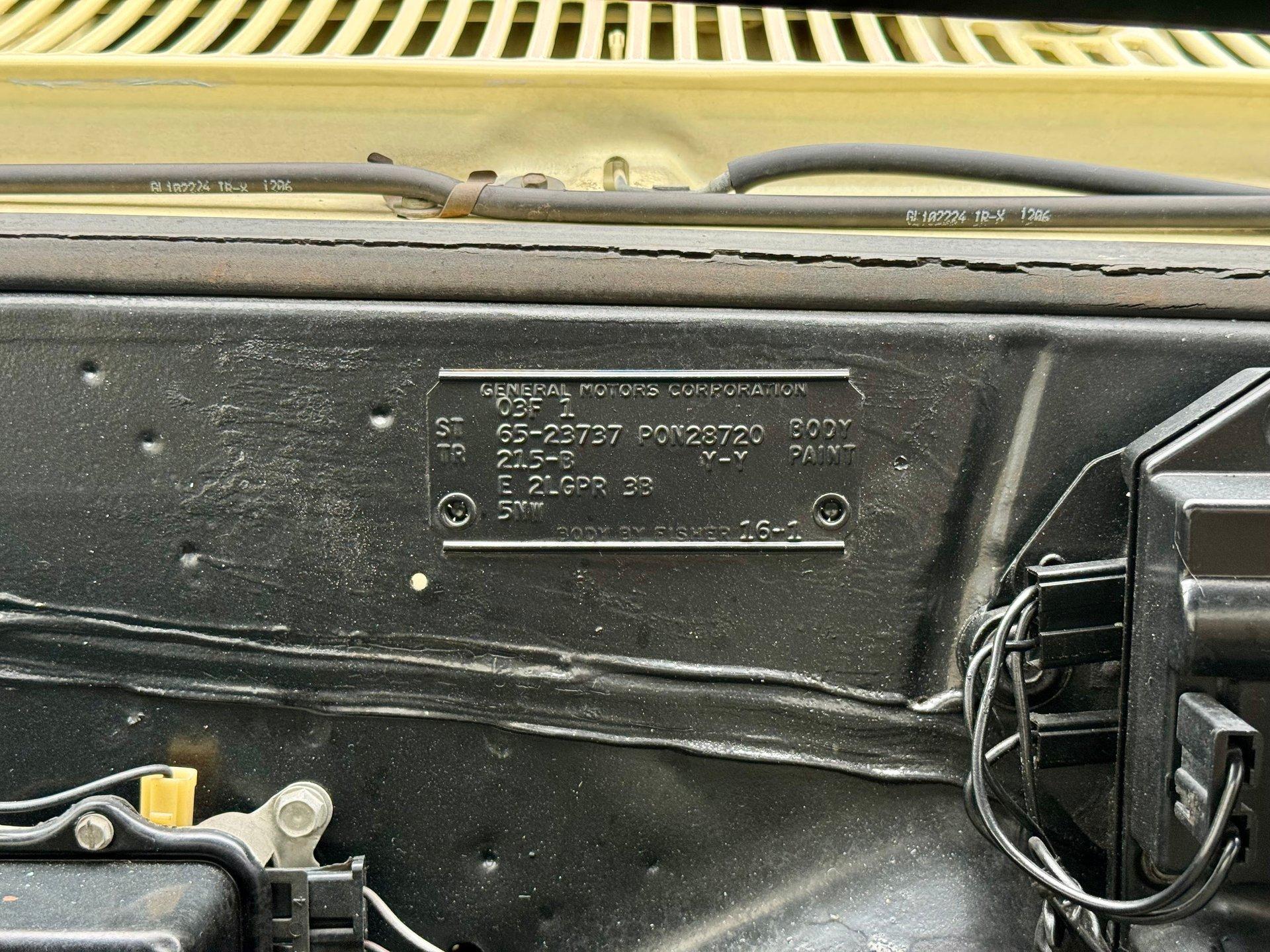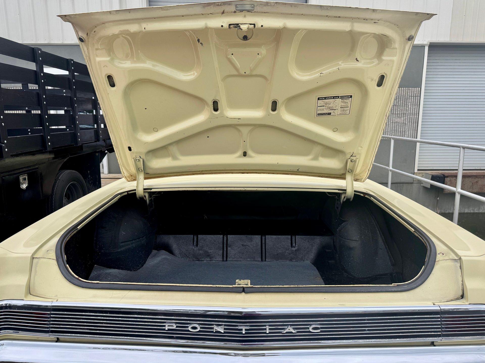 The first thing that catches your eye is that rare Mayfair Maize paint. It was repainted in the mid 70s in the original color as documented on the window sticker. The second is that killer muscle car stance with just enough rake sitting on top of American Racing Torq Thrust alloy wheels wrapped in Cooper Cobra Radial T/A tires. The original Pontiac Rally Wheels with Redline tires are included in the sale as well.