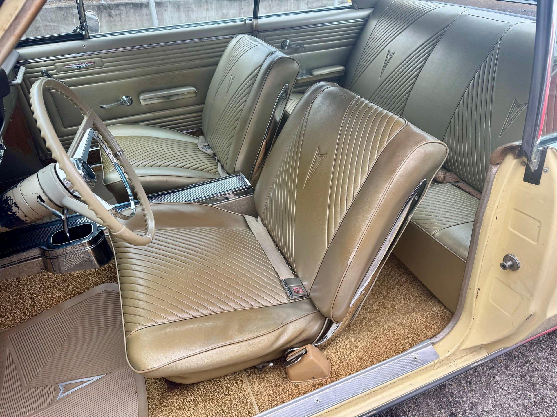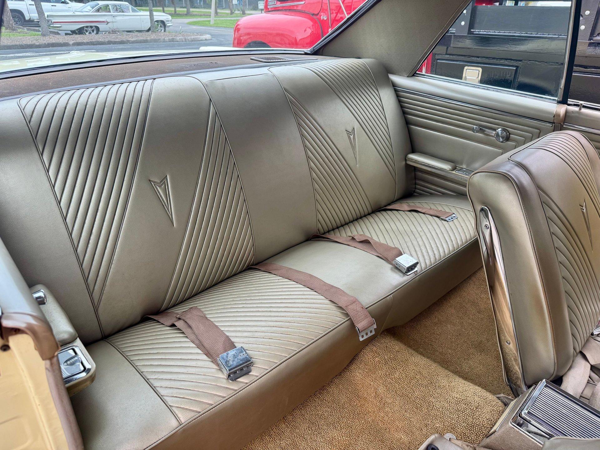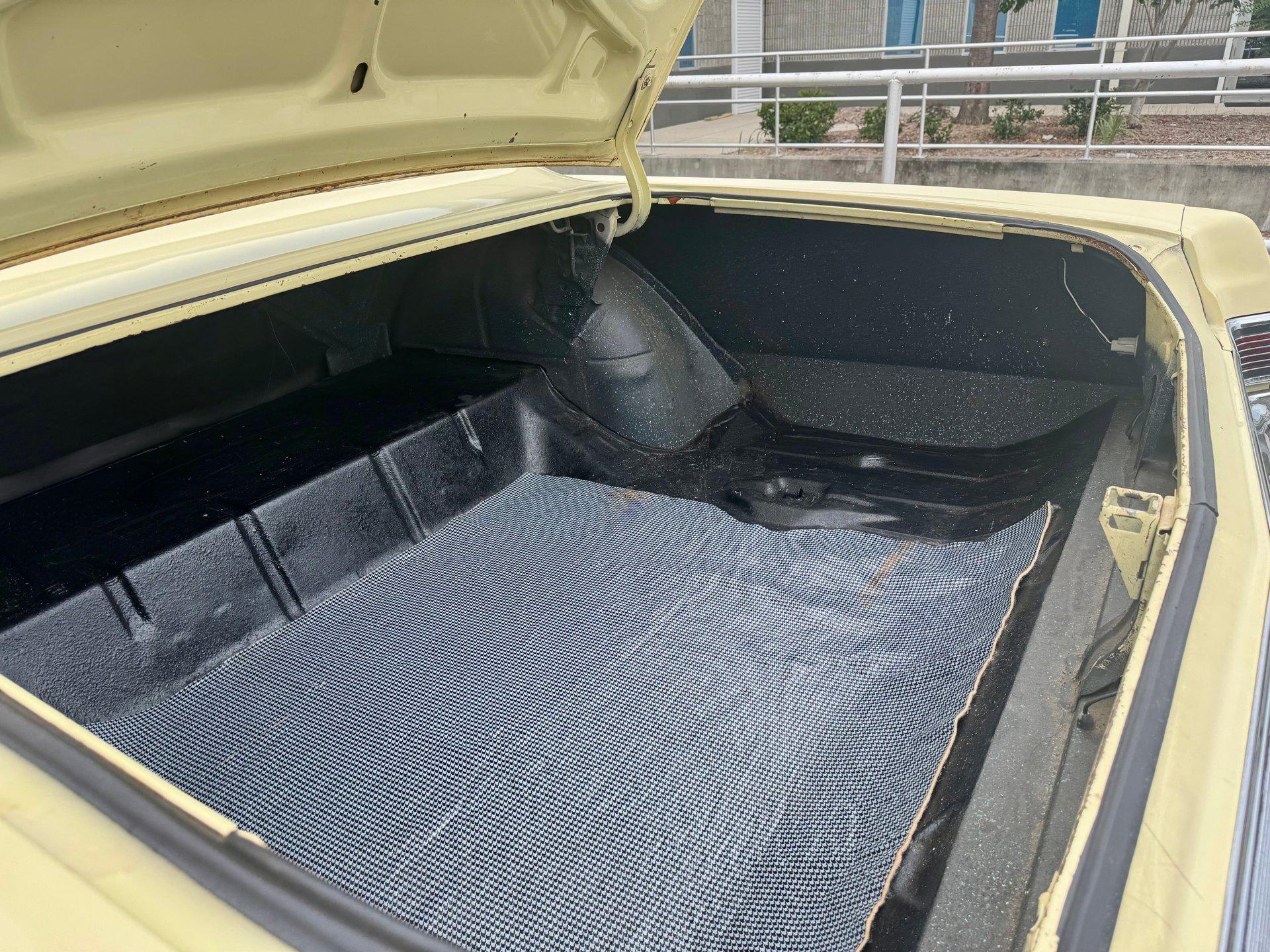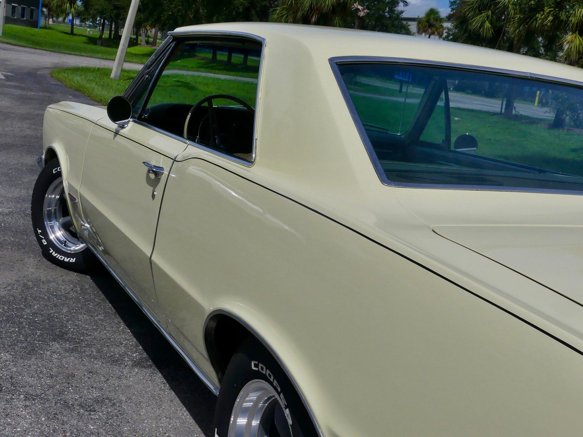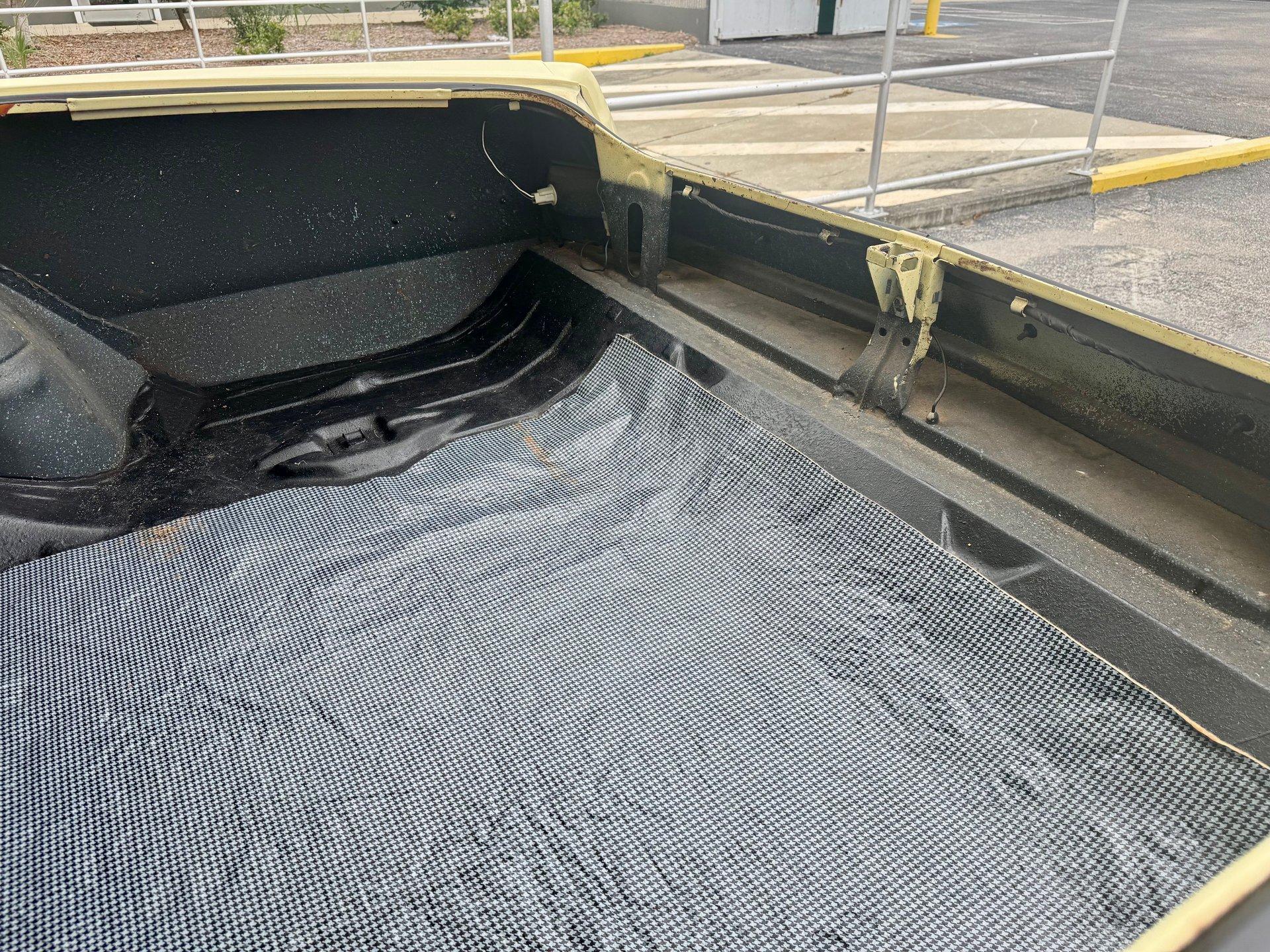 The first thing that catches your eye is that rare Mayfair Maize paint. It was repainted in the mid 70s in the original color as documented on the window sticker. The second is that killer muscle car stance with just enough rake sitting on top of American Racing Torq Thrust alloy wheels wrapped in Cooper Cobra Radial T/A tires. The original Pontiac Rally Wheels with Redline tires are included in the sale as well.