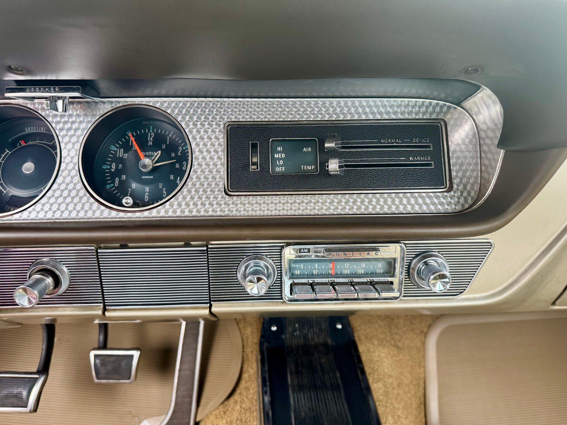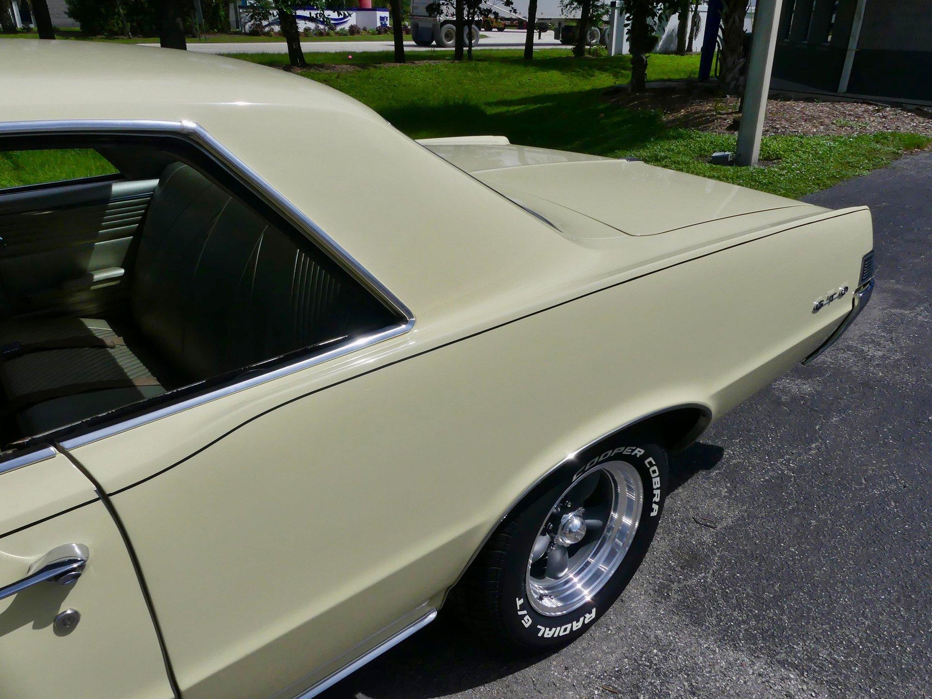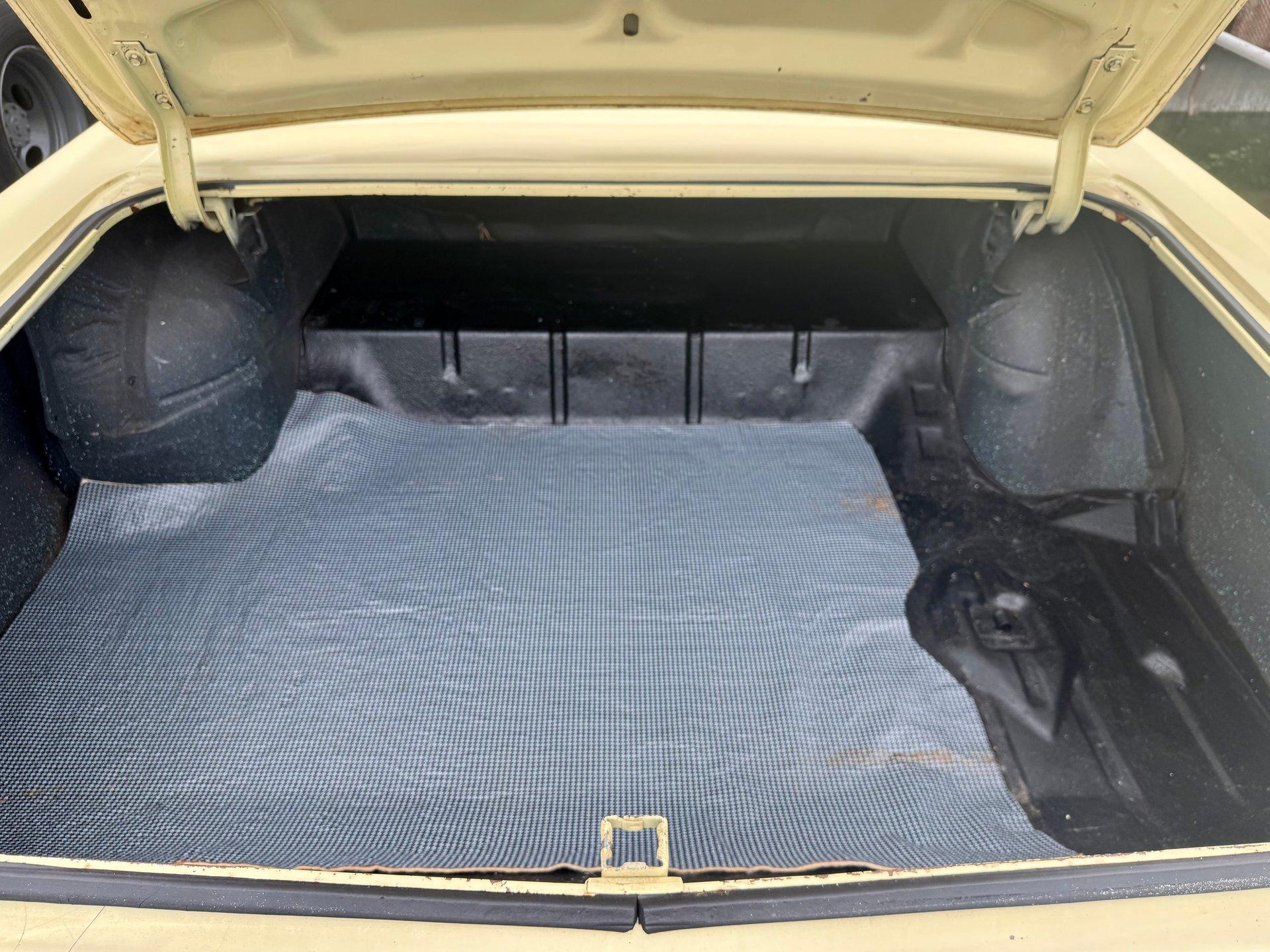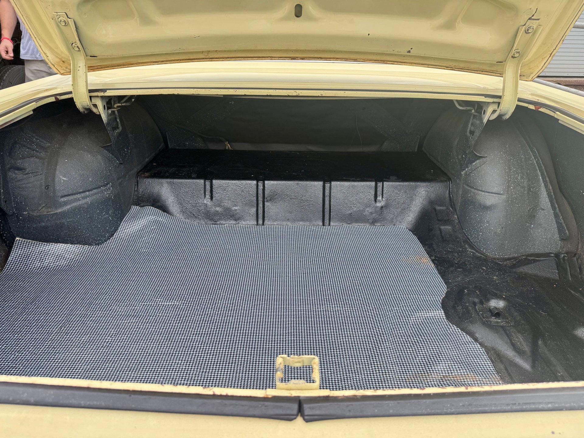 The first thing that catches your eye is that rare Mayfair Maize paint. It was repainted in the mid 70s in the original color as documented on the window sticker. The second is that killer muscle car stance with just enough rake sitting on top of American Racing Torq Thrust alloy wheels wrapped in Cooper Cobra Radial T/A tires. The original Pontiac Rally Wheels with Redline tires are included in the sale as well.