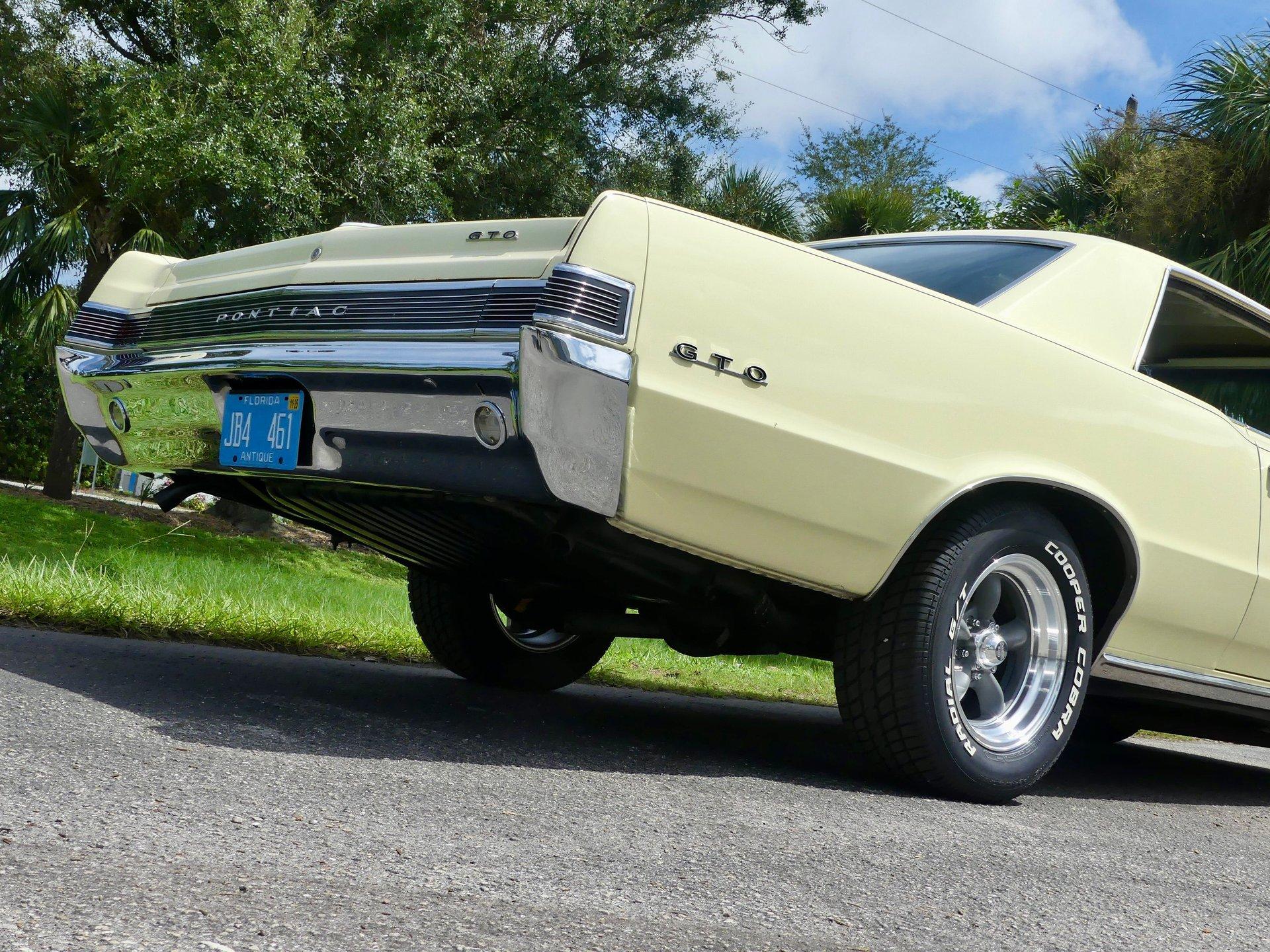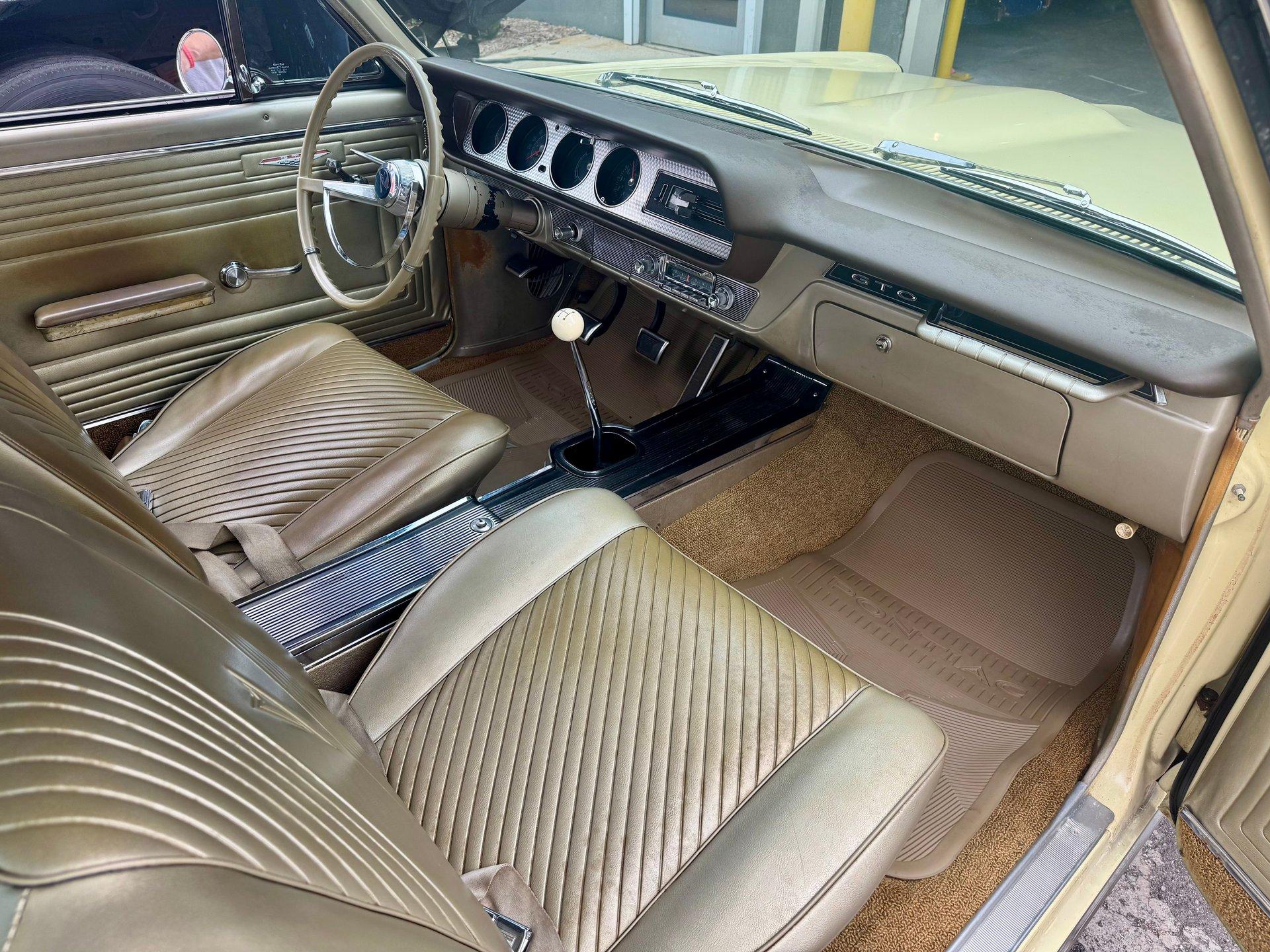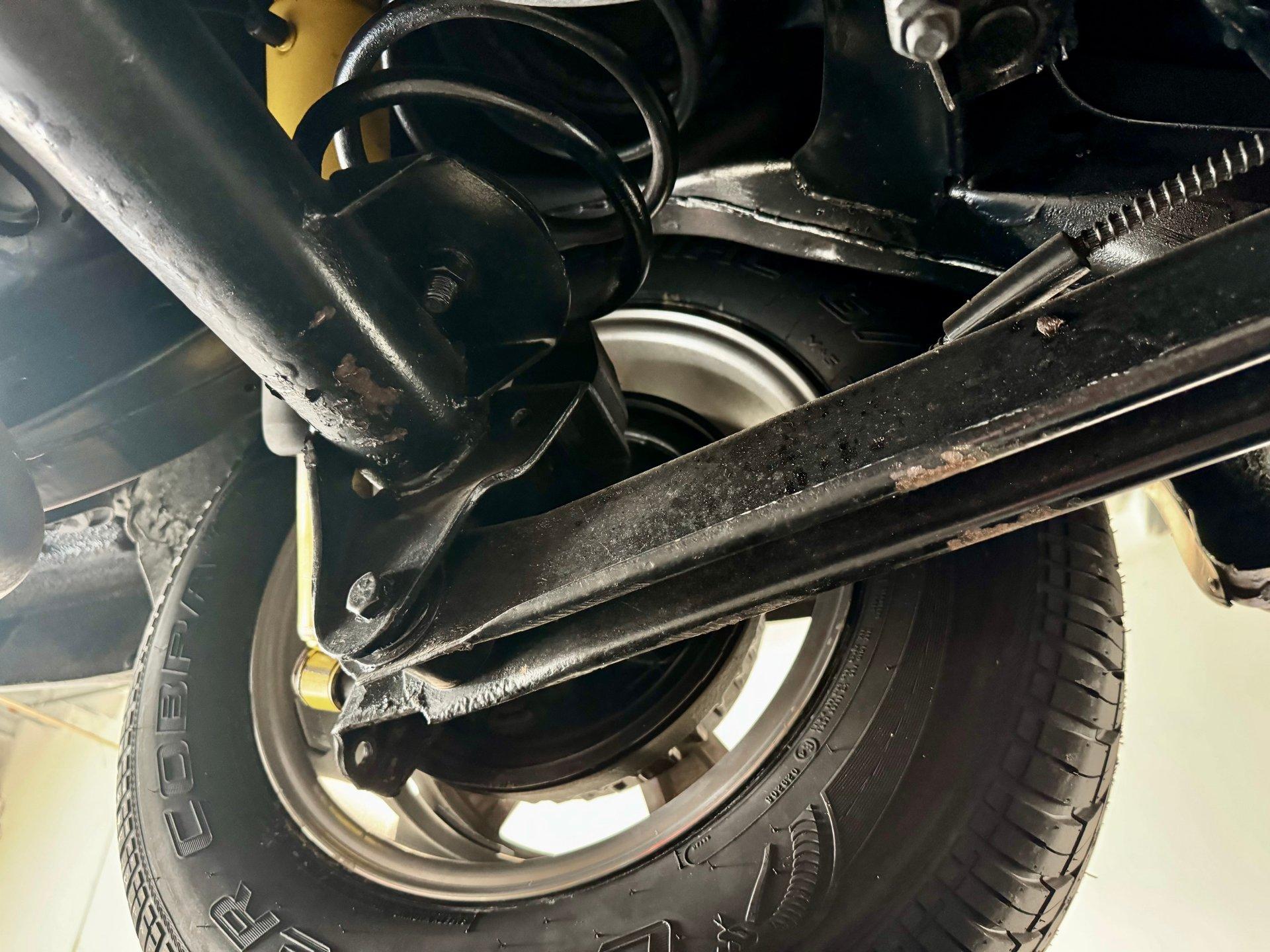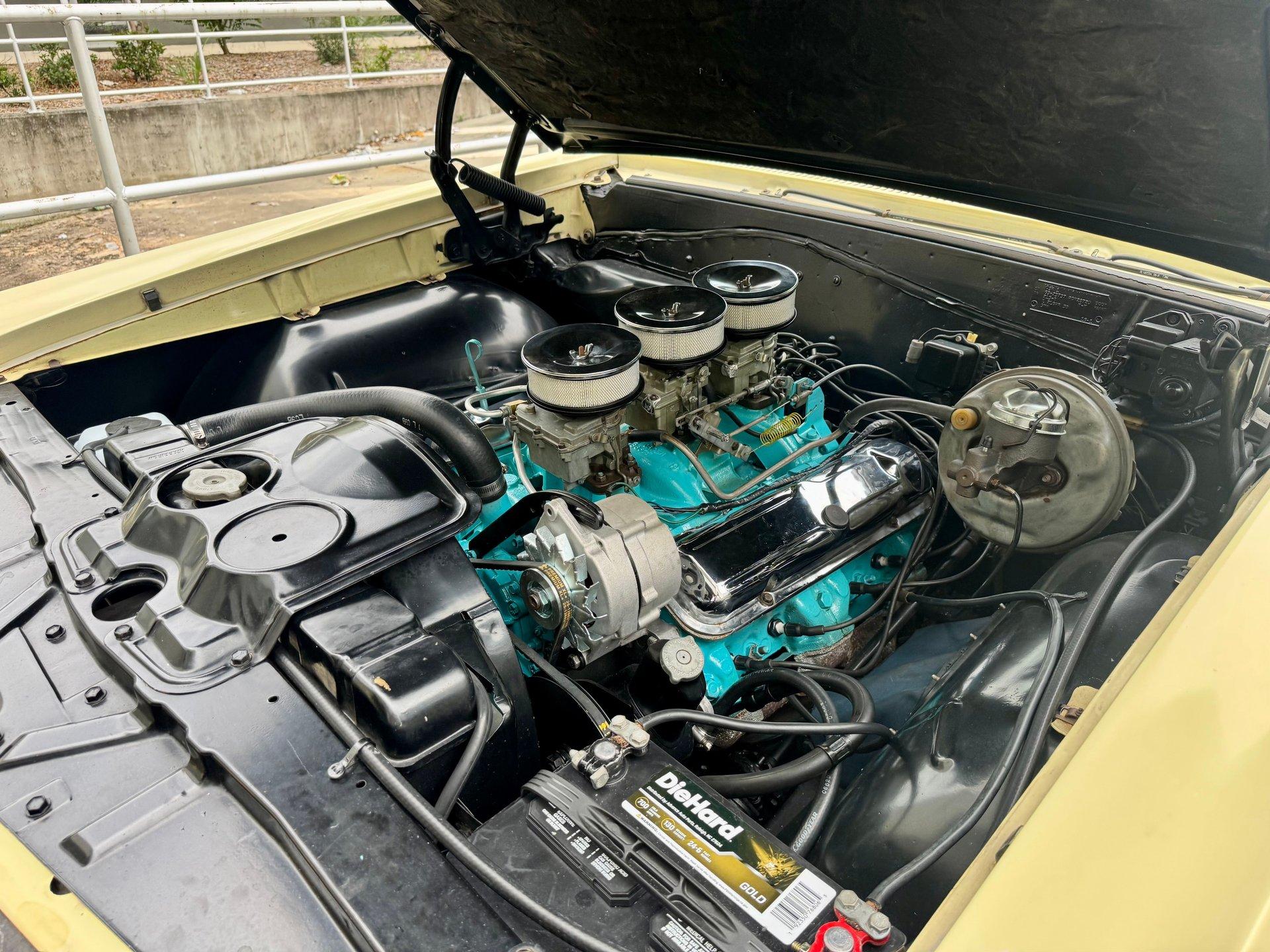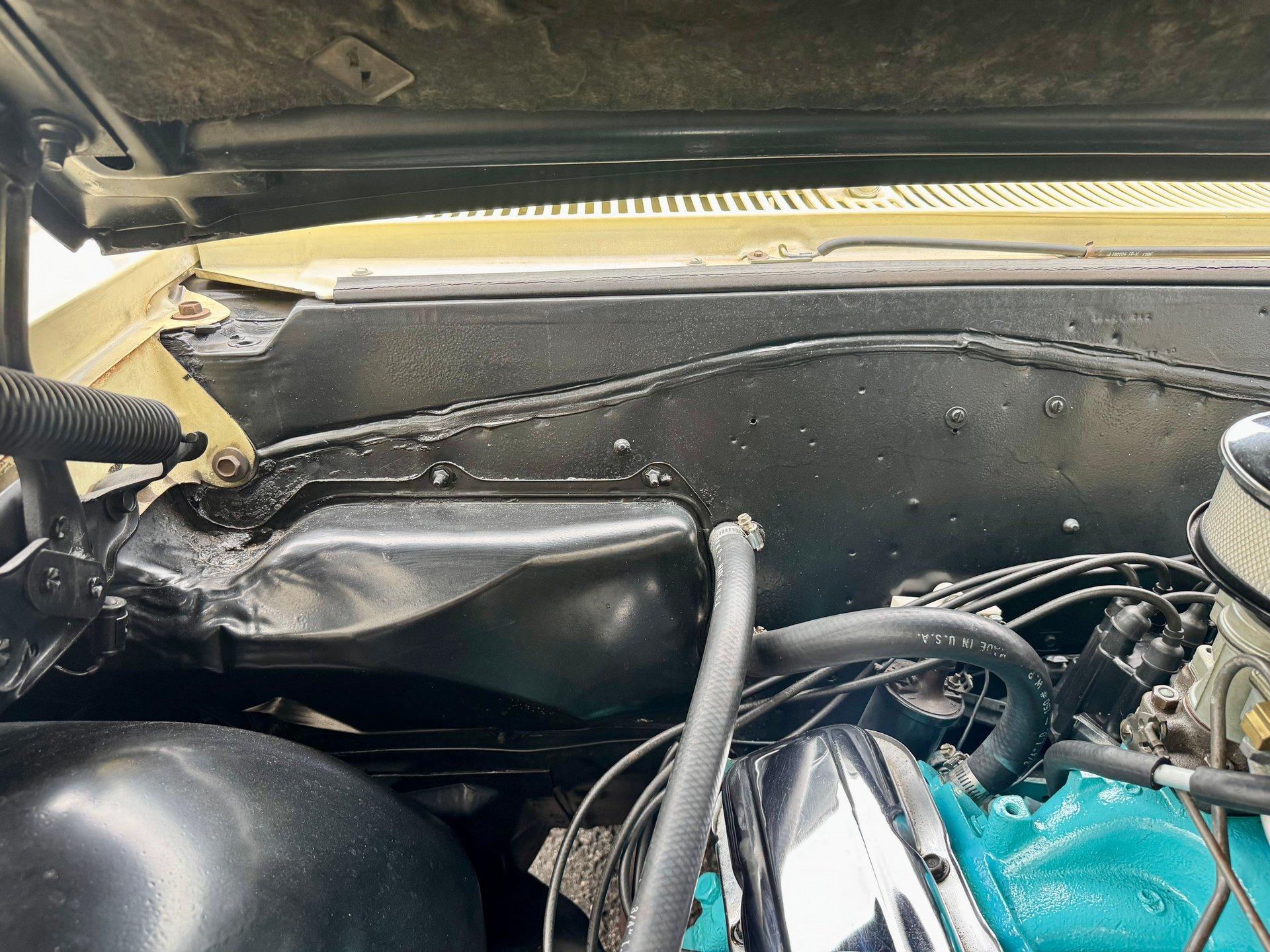 The first thing that catches your eye is that rare Mayfair Maize paint. It was repainted in the mid 70s in the original color as documented on the window sticker. The second is that killer muscle car stance with just enough rake sitting on top of American Racing Torq Thrust alloy wheels wrapped in Cooper Cobra Radial T/A tires. The original Pontiac Rally Wheels with Redline tires are included in the sale as well.