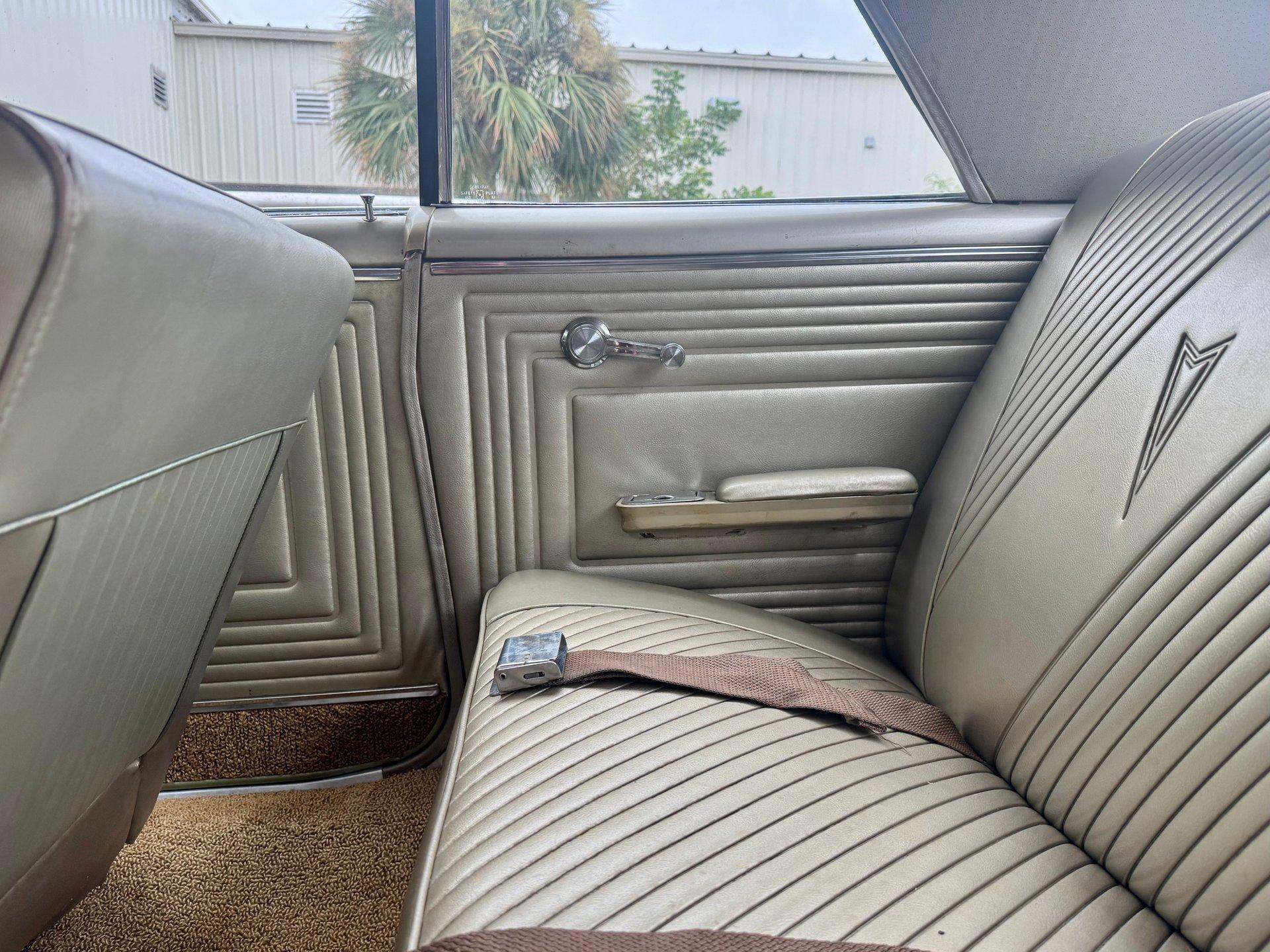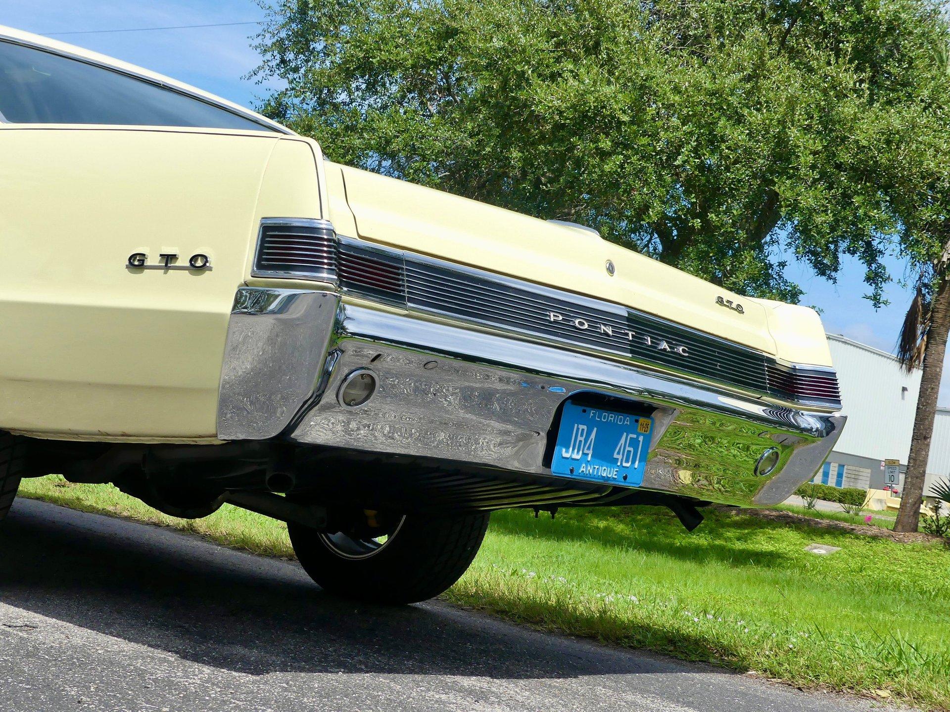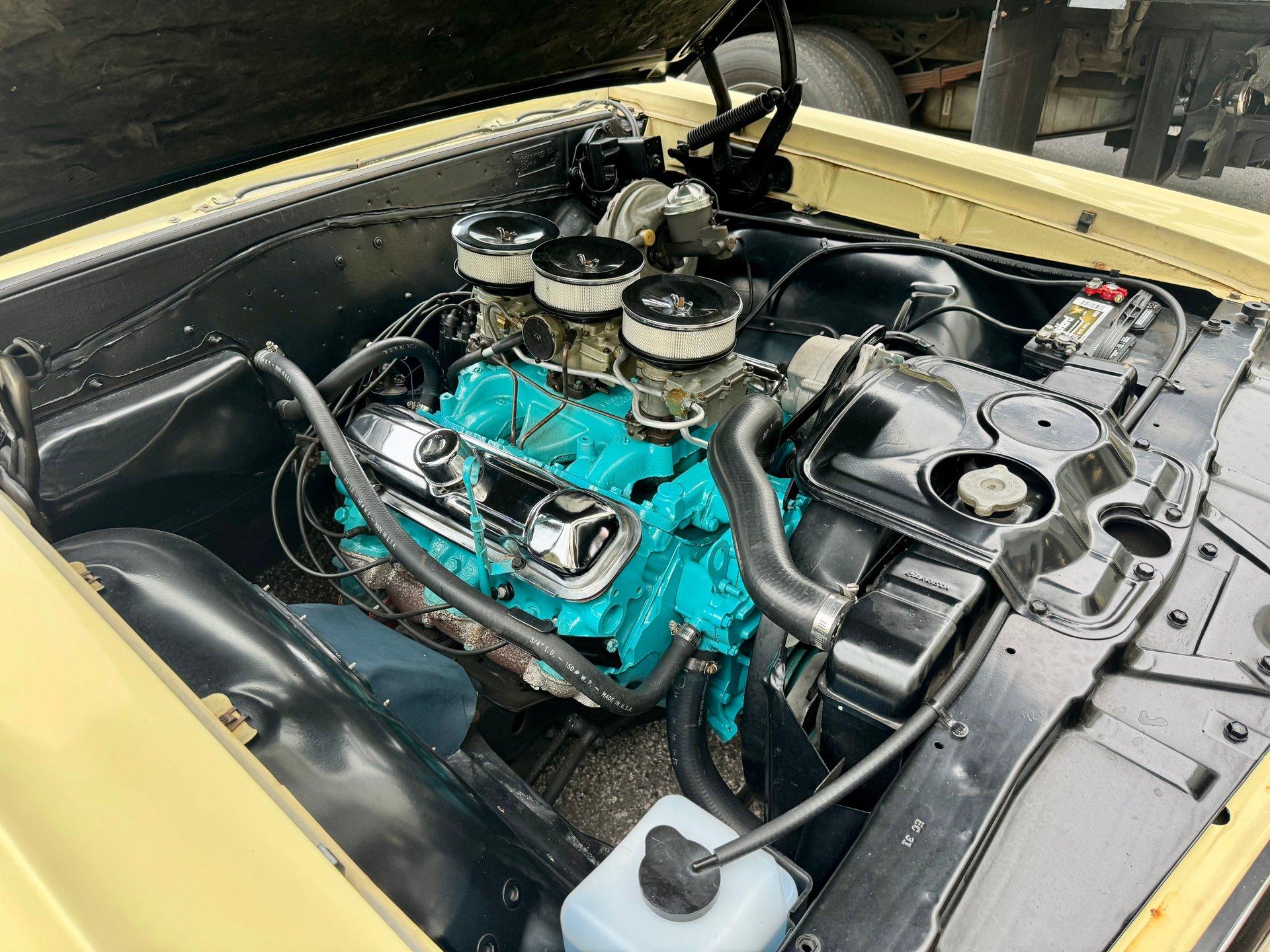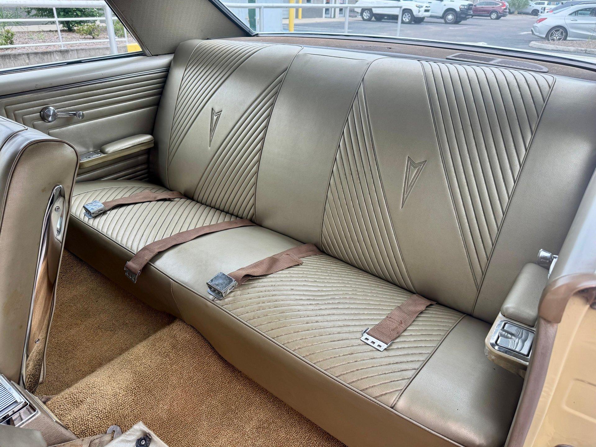 The first thing that catches your eye is that rare Mayfair Maize paint. It was repainted in the mid 70s in the original color as documented on the window sticker. The second is that killer muscle car stance with just enough rake sitting on top of American Racing Torq Thrust alloy wheels wrapped in Cooper Cobra Radial T/A tires. The original Pontiac Rally Wheels with Redline tires are included in the sale as well.