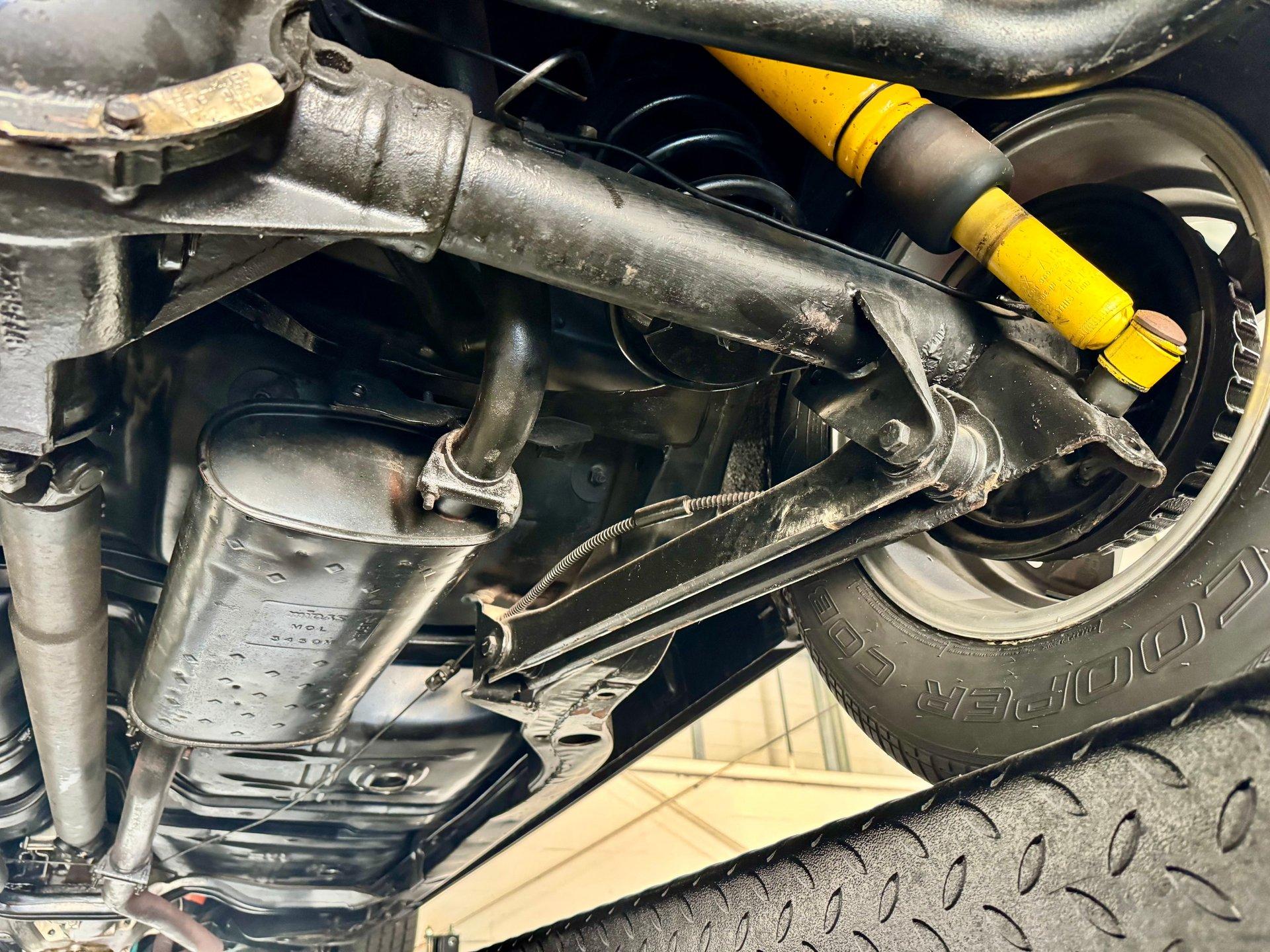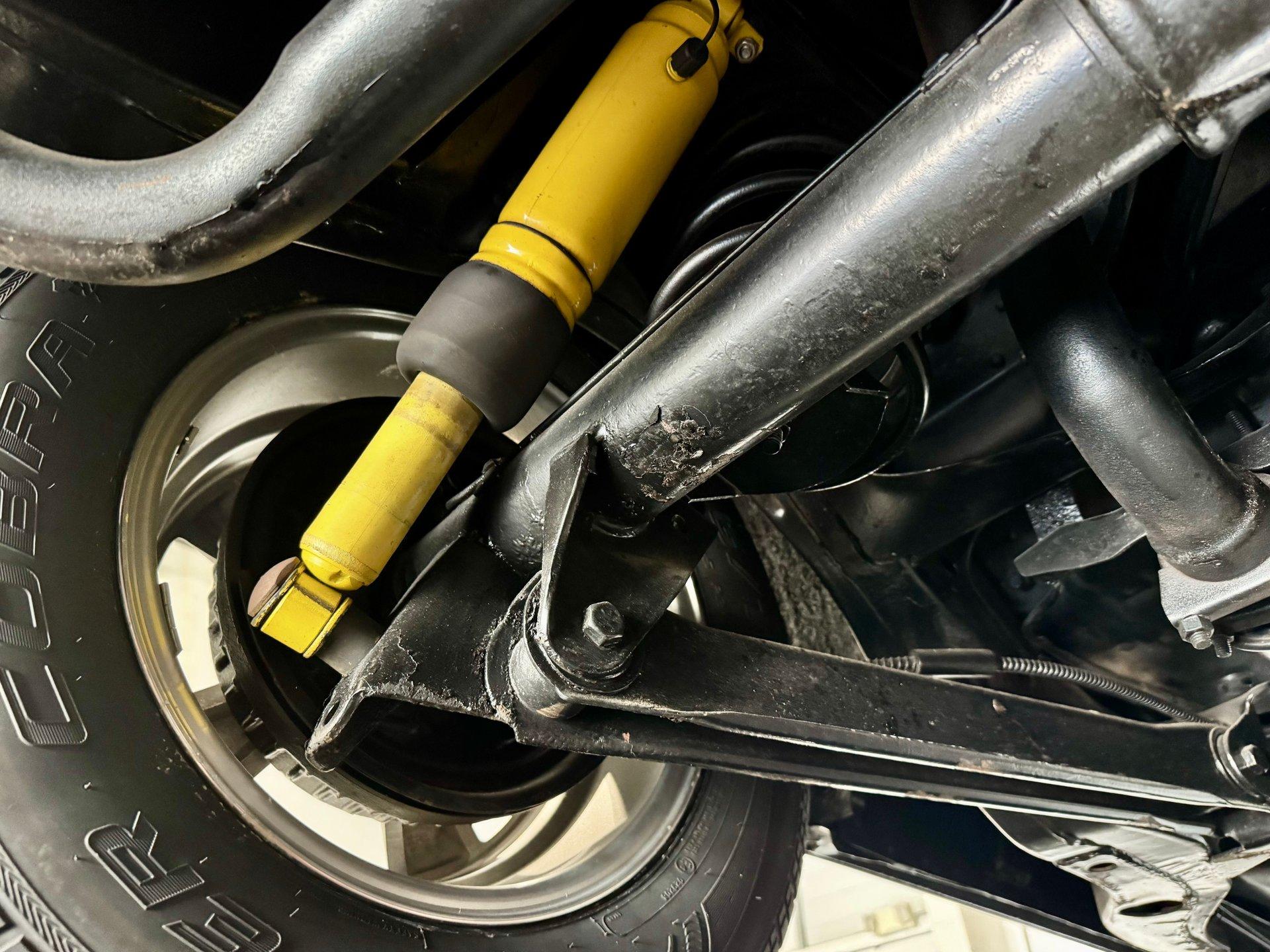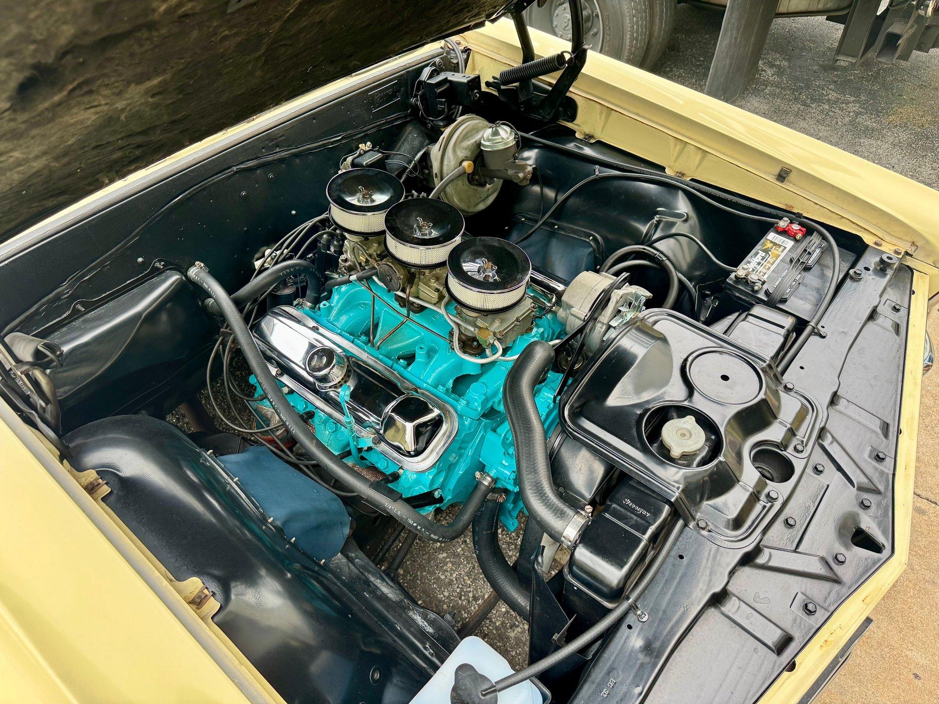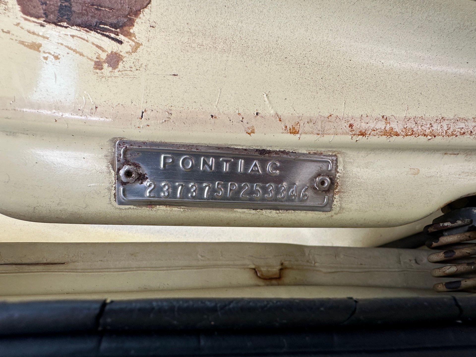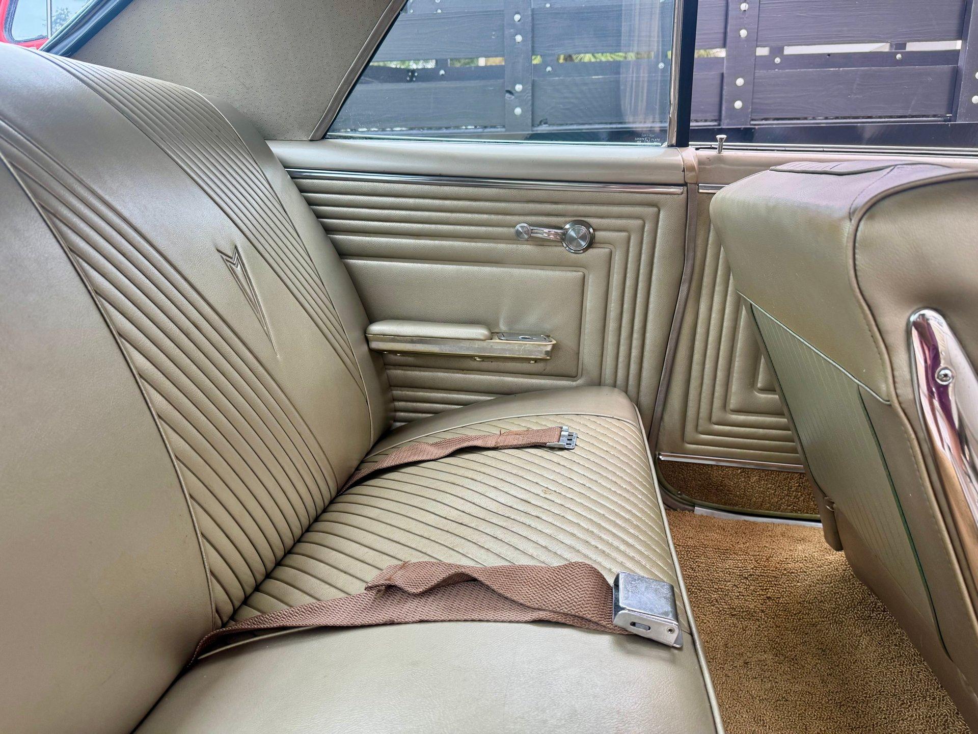 The first thing that catches your eye is that rare Mayfair Maize paint. It was repainted in the mid 70s in the original color as documented on the window sticker. The second is that killer muscle car stance with just enough rake sitting on top of American Racing Torq Thrust alloy wheels wrapped in Cooper Cobra Radial T/A tires. The original Pontiac Rally Wheels with Redline tires are included in the sale as well.