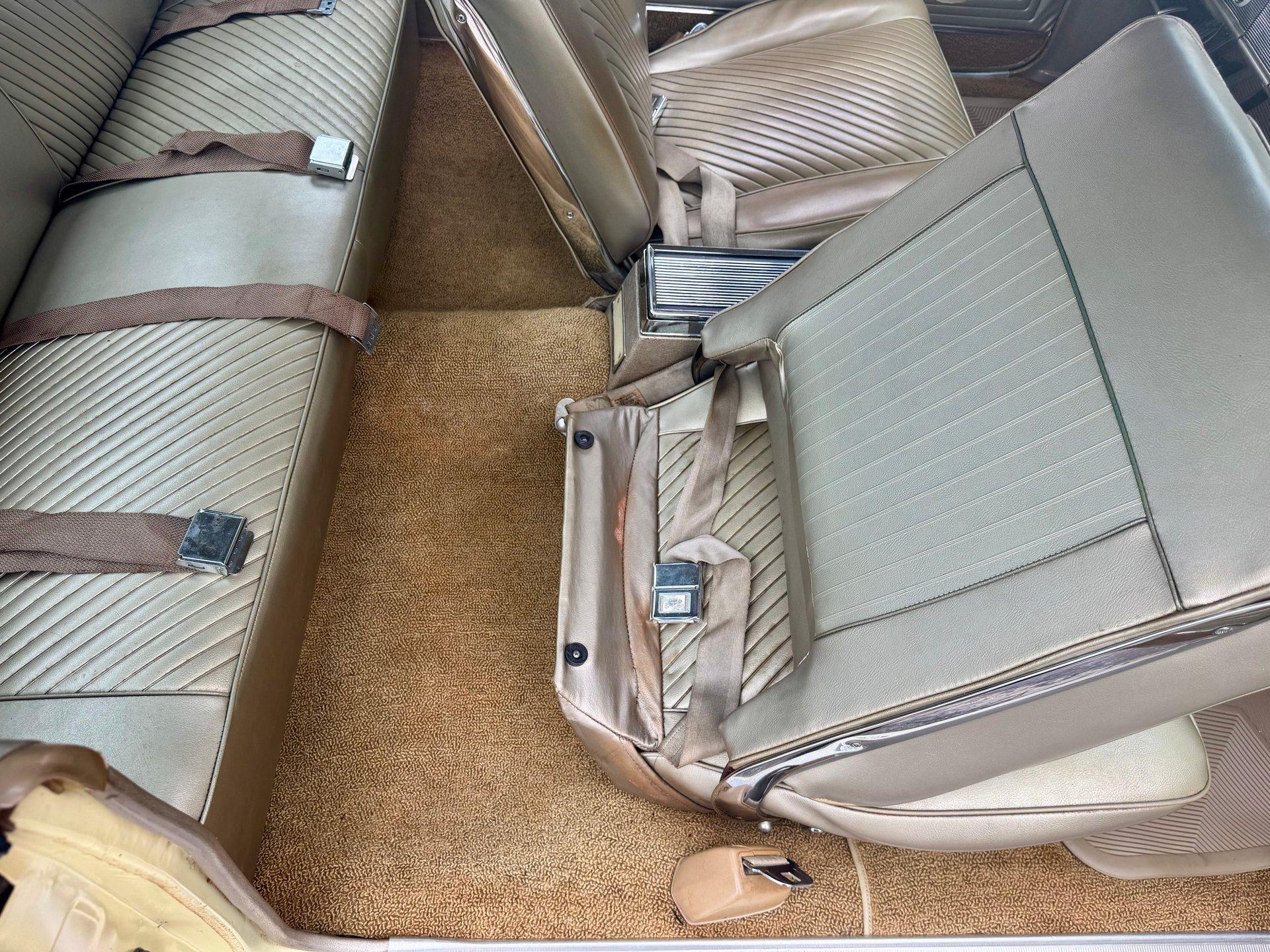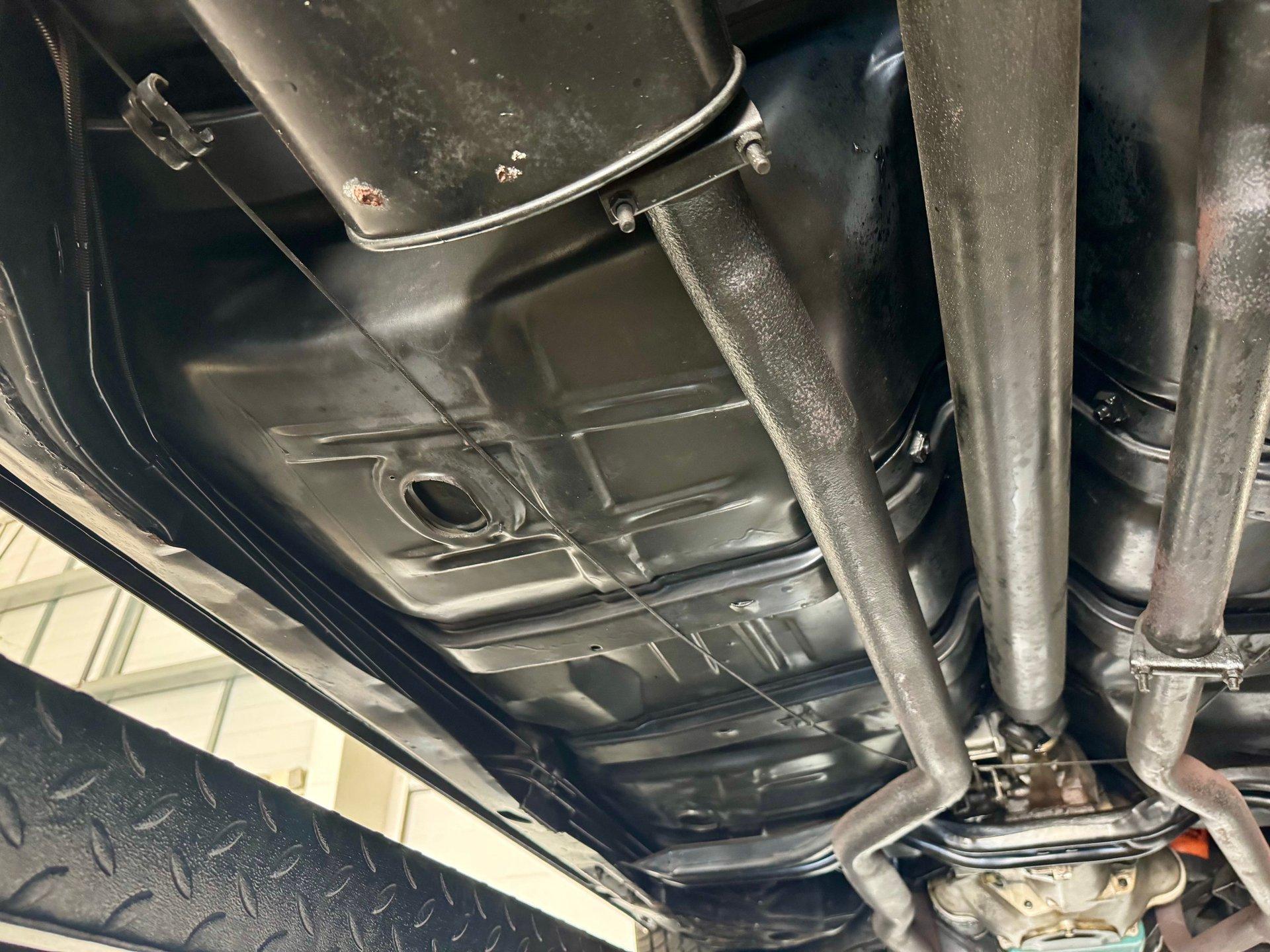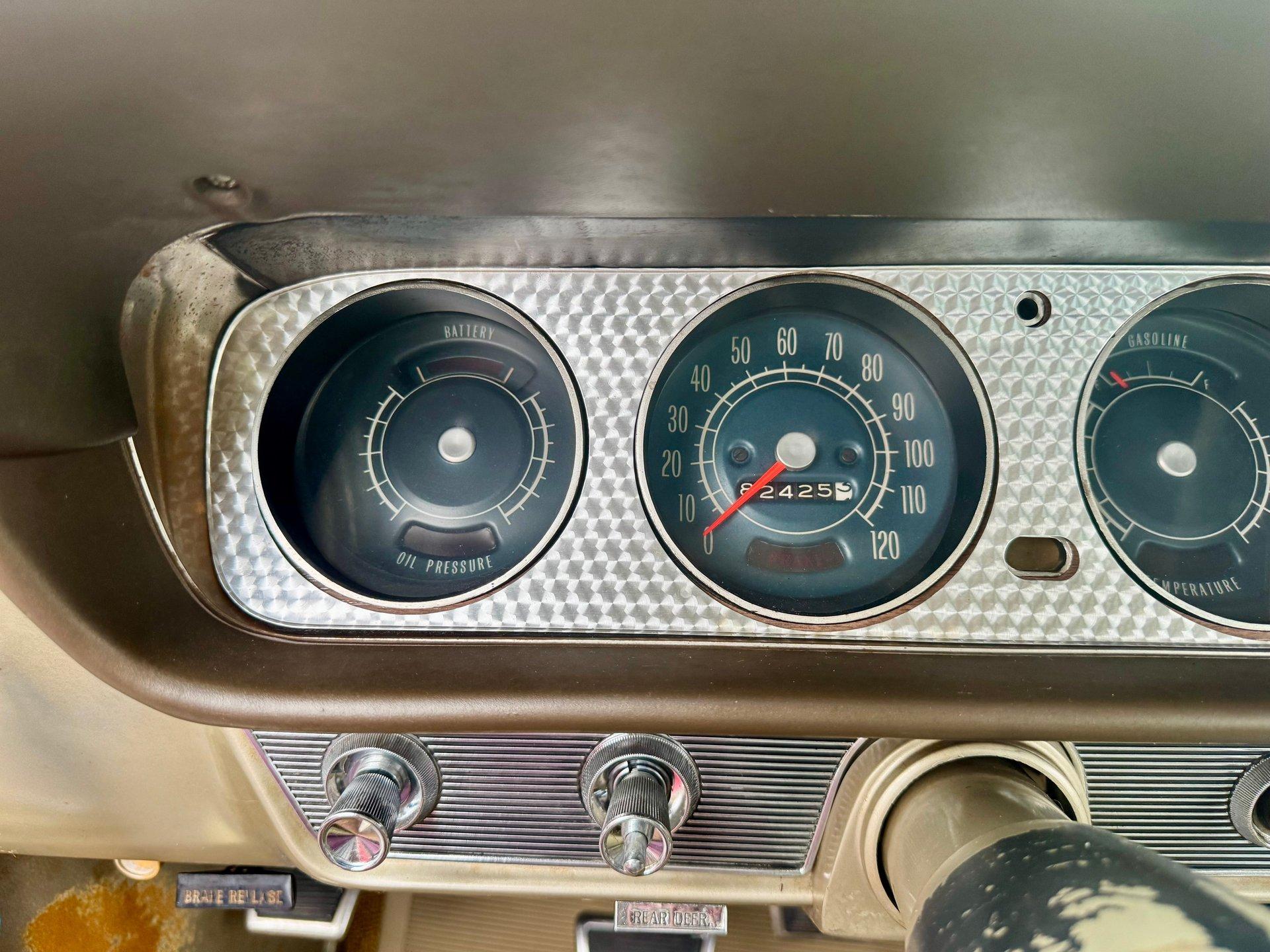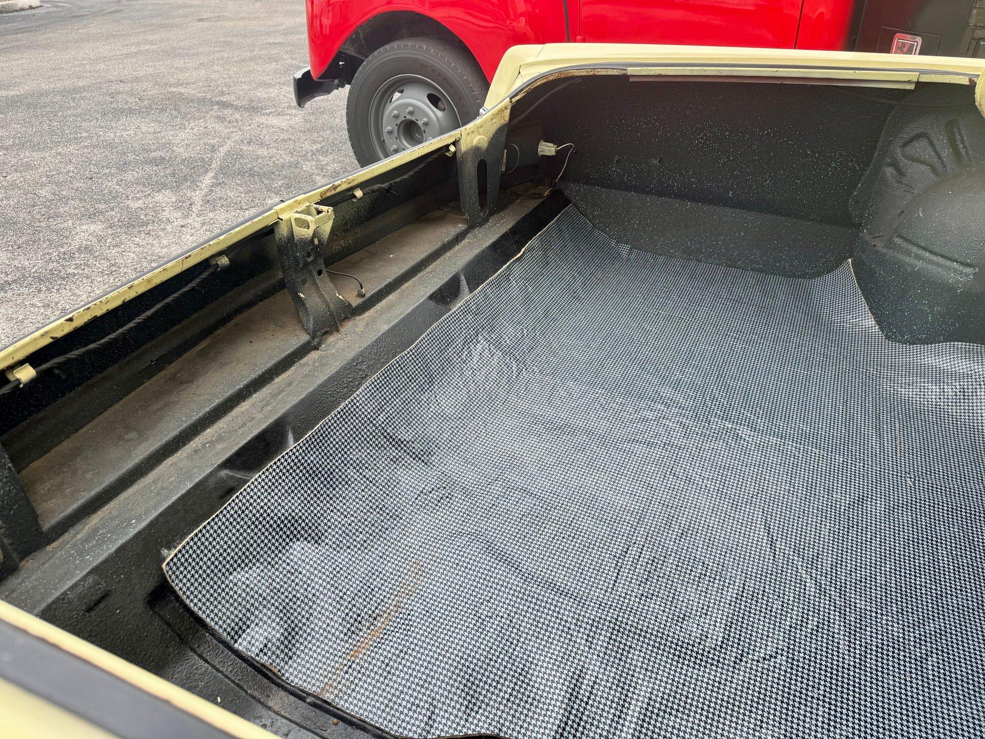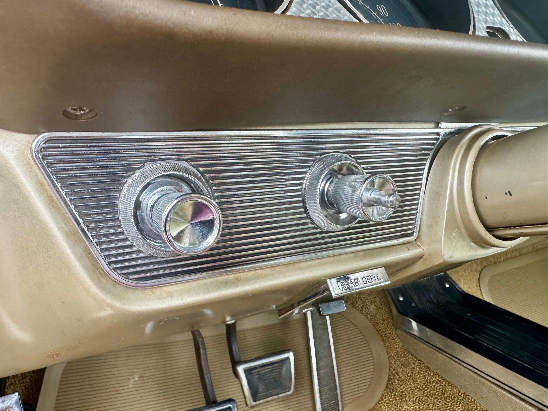 The original Gold interior shows some wear, but is in amazing condition overall, especially for the age. The Classic four-pod dash shows well as do the vinyl bucket seats and center console. An original style AM FM stereo functions as it should and the Hurst shifter is graced with a classic white round shift knob.