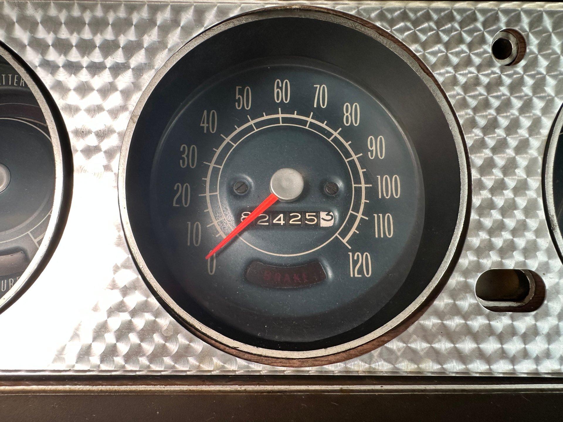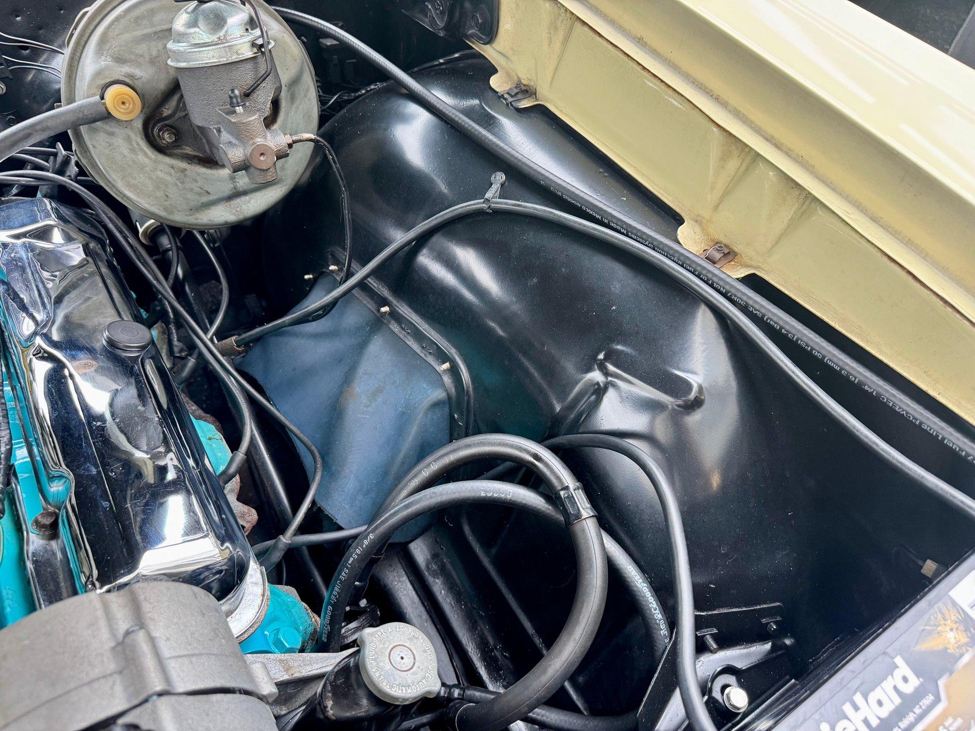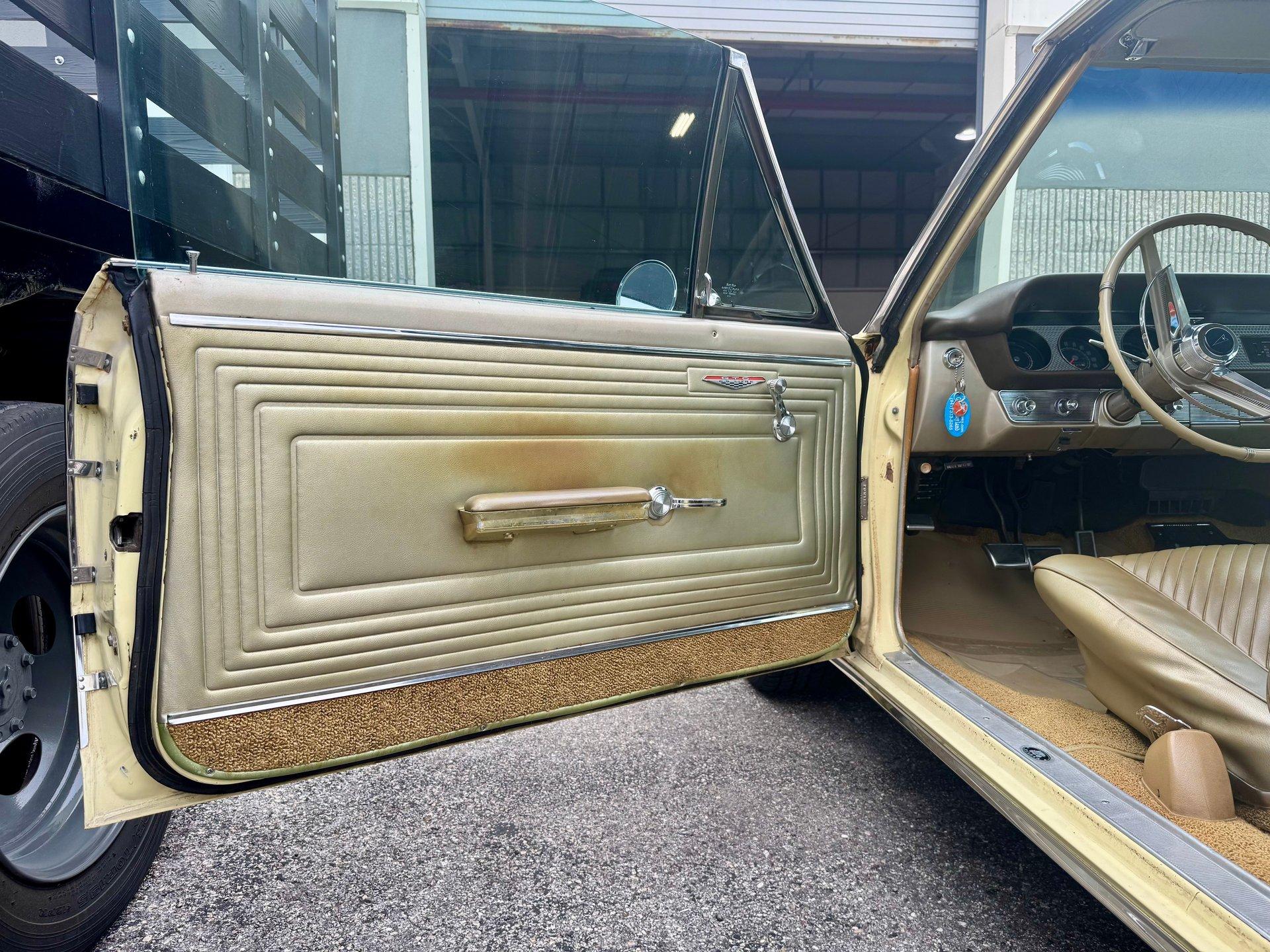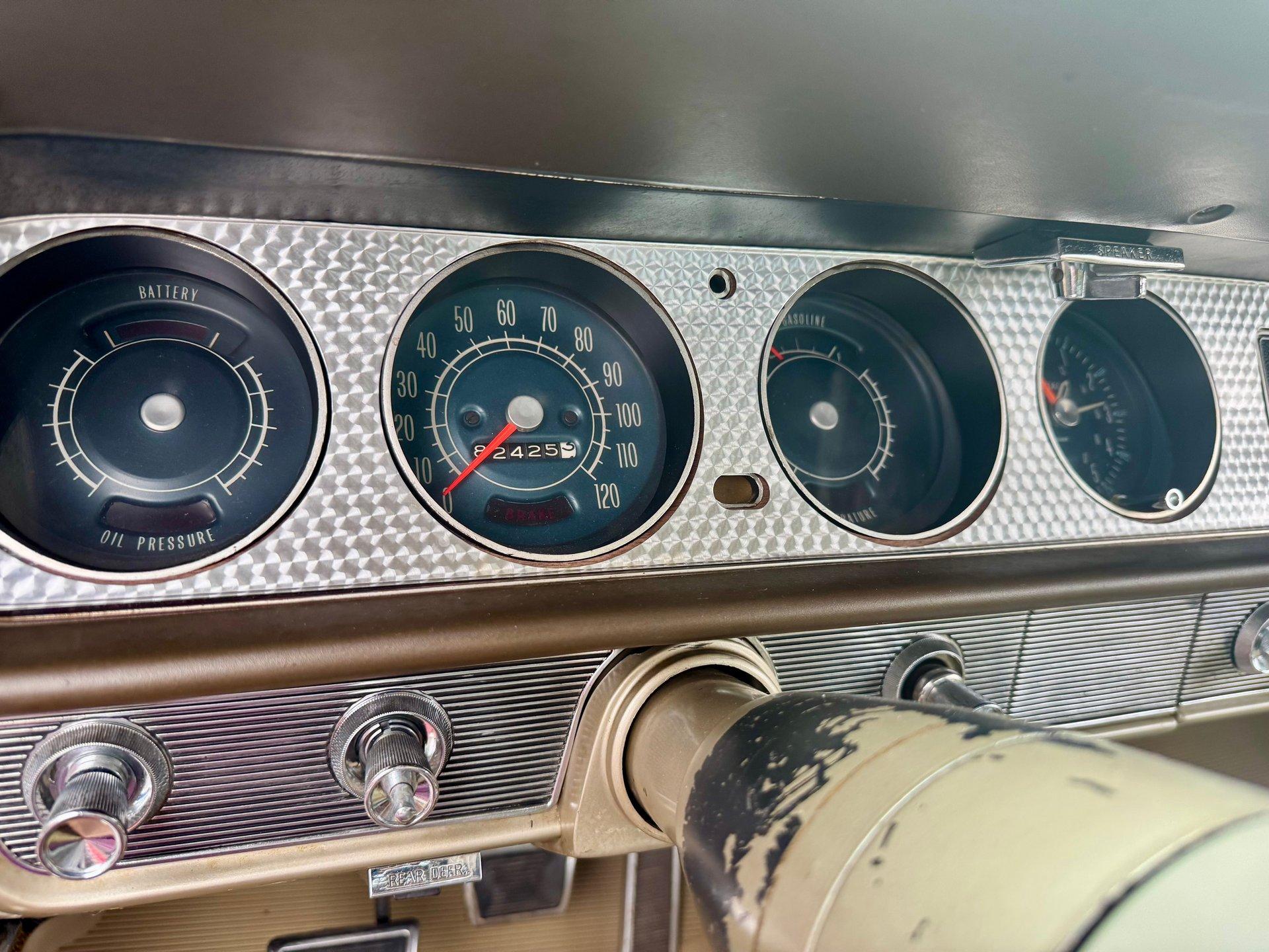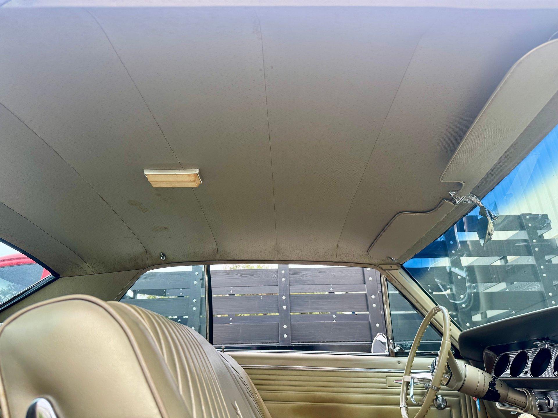 The original Gold interior shows some wear, but is in amazing condition overall, especially for the age. The Classic four-pod dash shows well as do the vinyl bucket seats and center console. An original style AM FM stereo functions as it should and the Hurst shifter is graced with a classic white round shift knob.