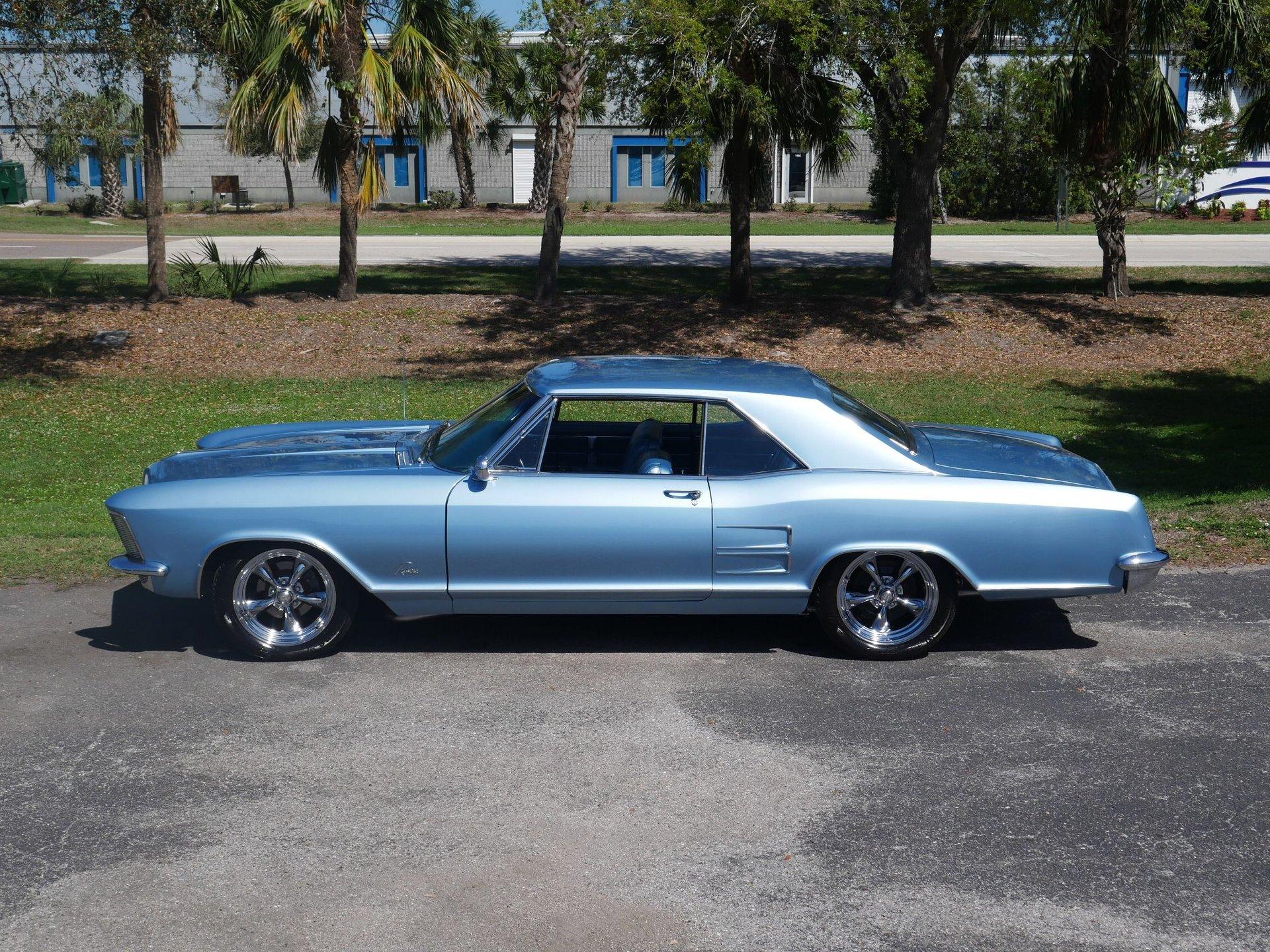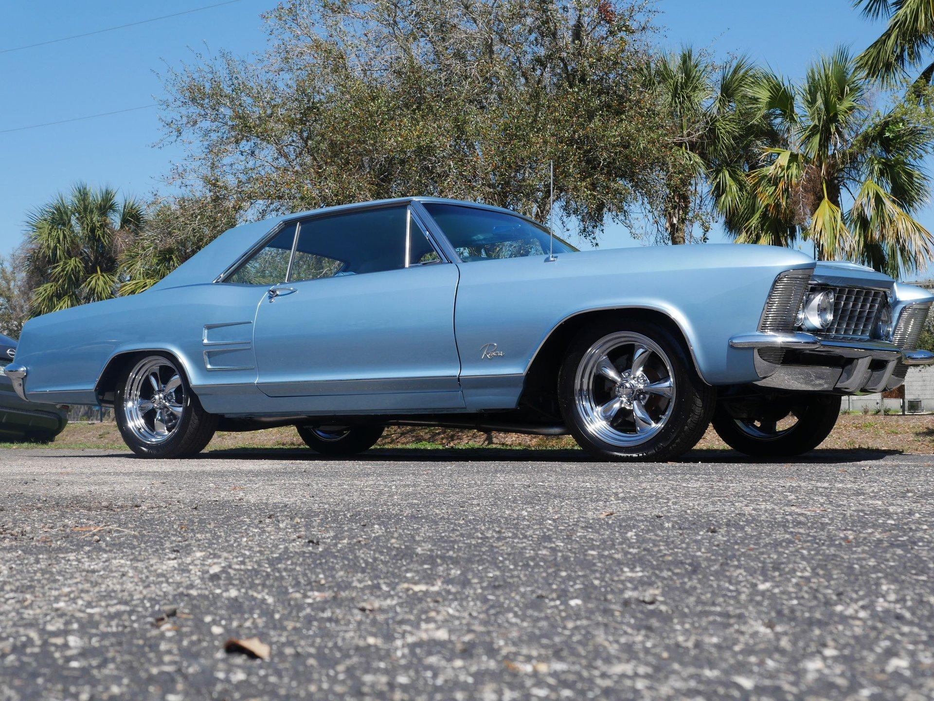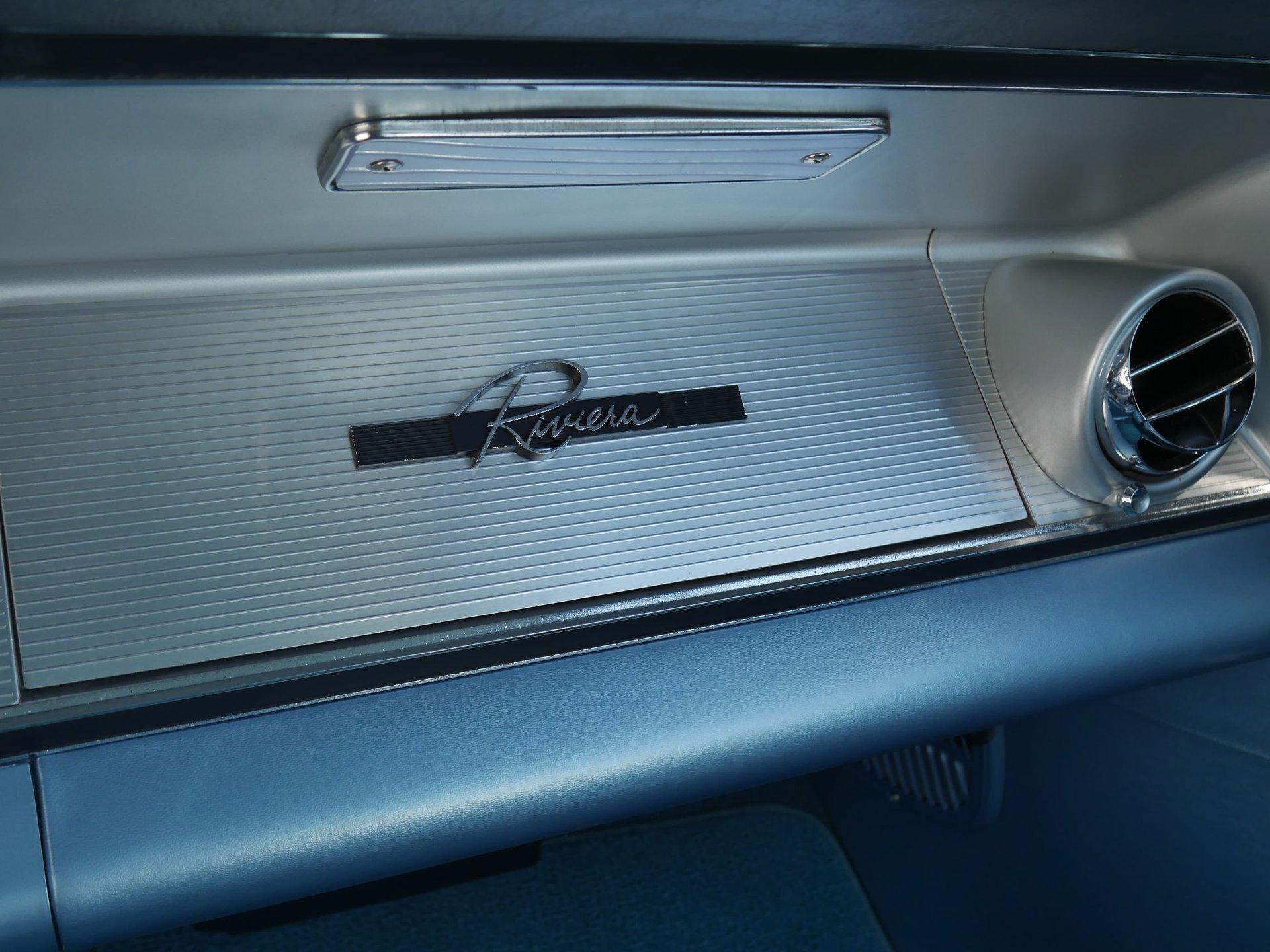 New parts on this Riviera include: Alternator, Body mounts, Carburetor, Chrome, Complete interior, Disc brake conversion, Exhaust system, Fuel tank, fuel pump, Hoses, Lifters, push rods, redone heads (valves, springs, rockers, and rocker shafts), Master cylinder and booster, Motor mounts/Transmission mounts, Paint, Plugs, points, wires, rotor, Power steering hoses, Radiator and clutch fan, Radio and speakers, Rear shoes, Shocks, Tie rod ends, Trunk carpet, Upper and lower ball joints, Upper and lower control arm bushings, Vintage A/C and heat unit, Water pump, and Wheels and tires.