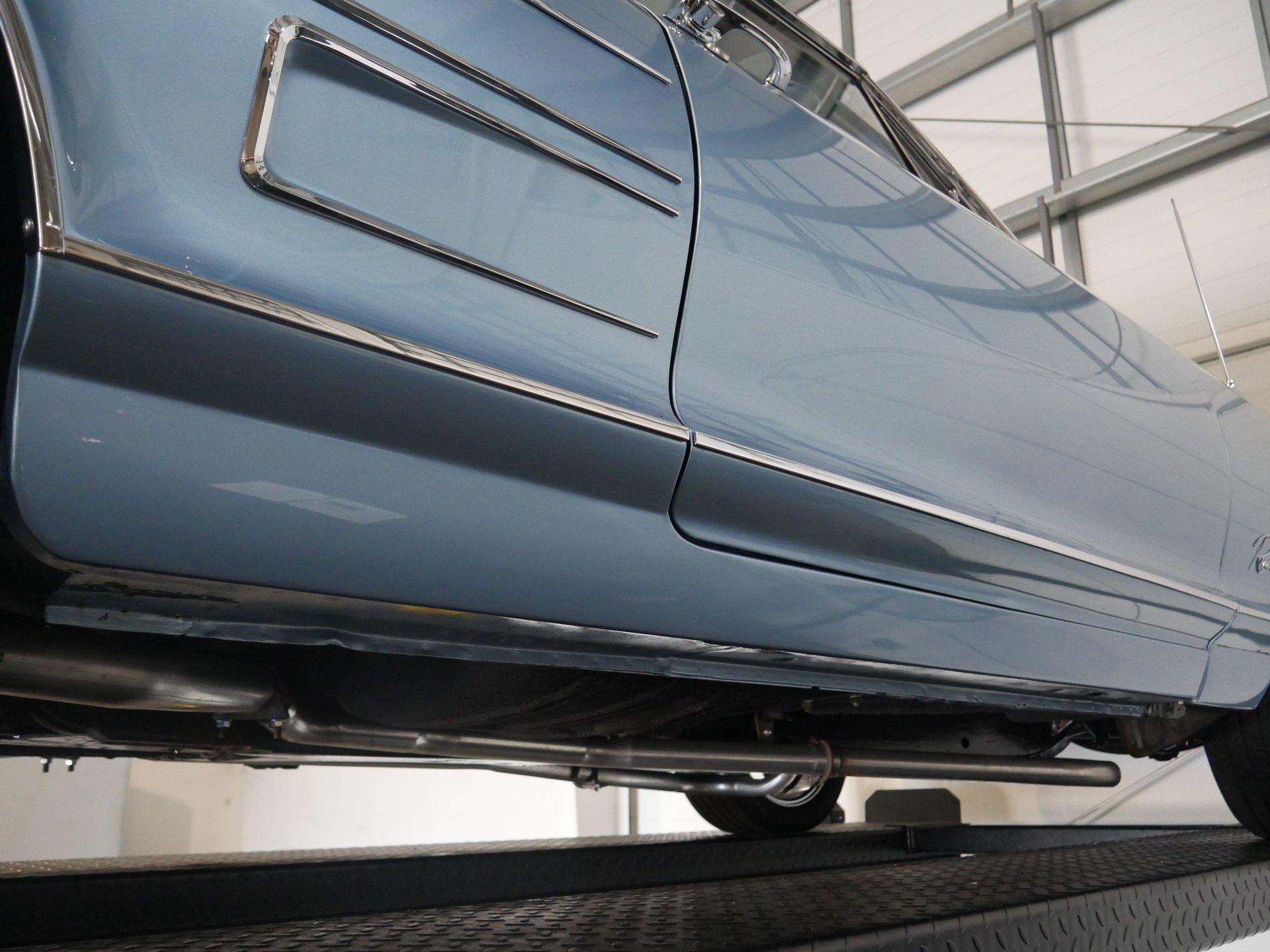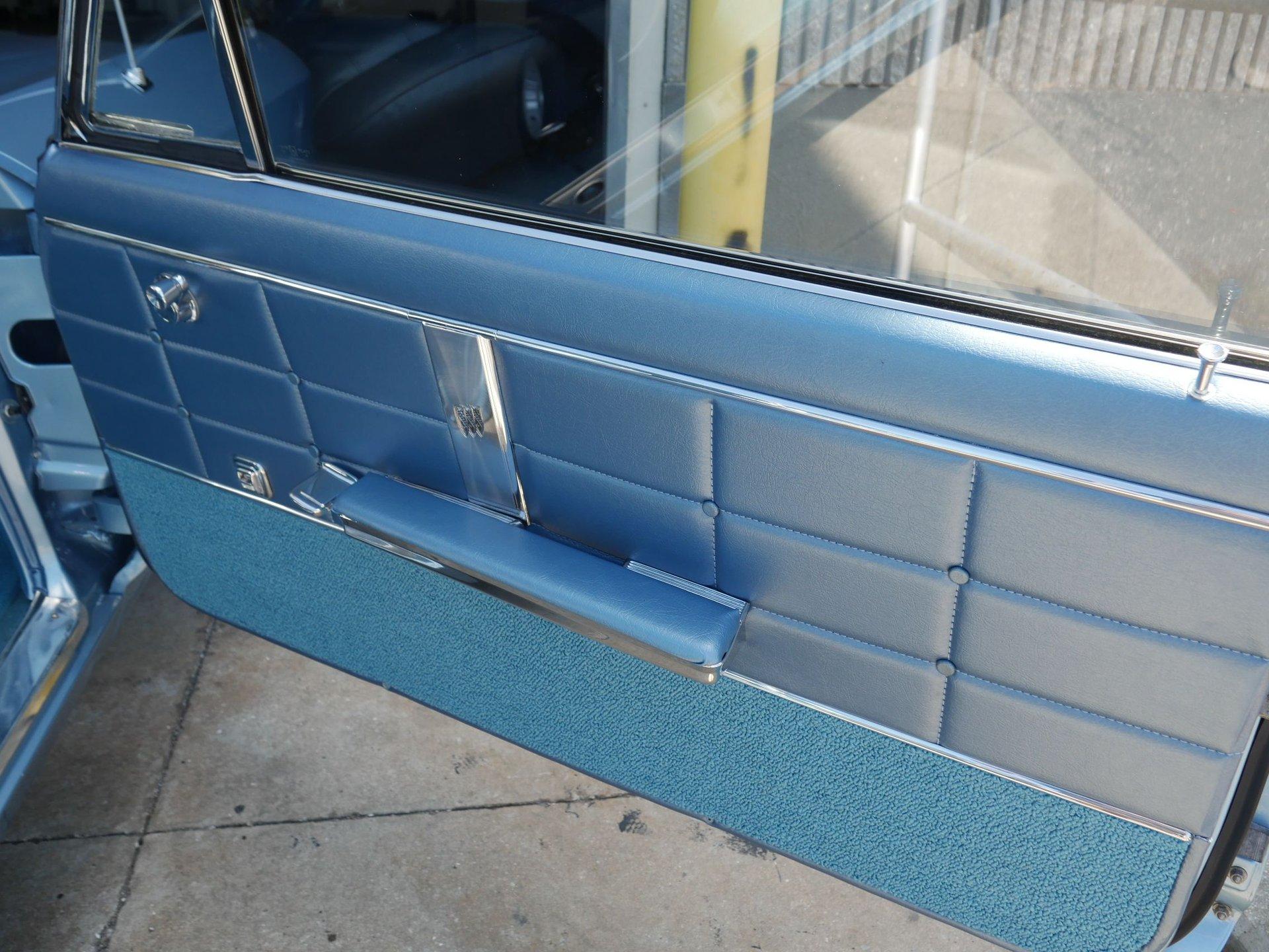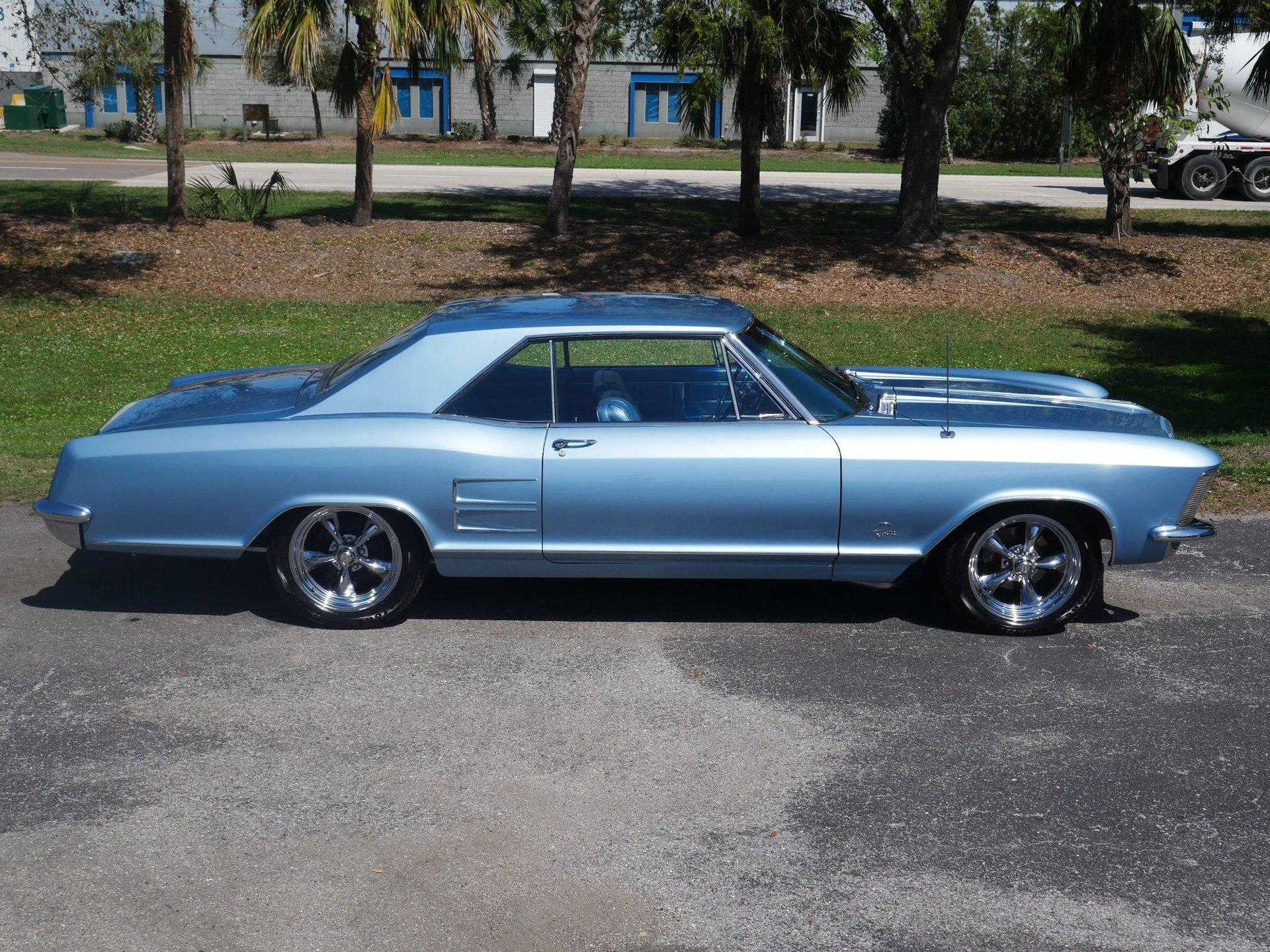 New parts on this Riviera include: Alternator, Body mounts, Carburetor, Chrome, Complete interior, Disc brake conversion, Exhaust system, Fuel tank, fuel pump, Hoses, Lifters, push rods, redone heads (valves, springs, rockers, and rocker shafts), Master cylinder and booster, Motor mounts/Transmission mounts, Paint, Plugs, points, wires, rotor, Power steering hoses, Radiator and clutch fan, Radio and speakers, Rear shoes, Shocks, Tie rod ends, Trunk carpet, Upper and lower ball joints, Upper and lower control arm bushings, Vintage A/C and heat unit, Water pump, and Wheels and tires.