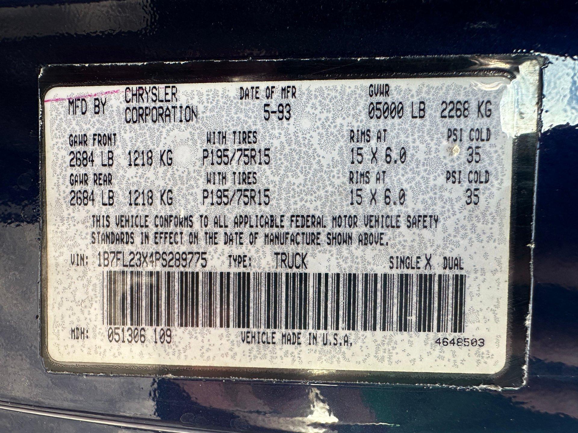 - VIN Code1B7FL23X4PS289775