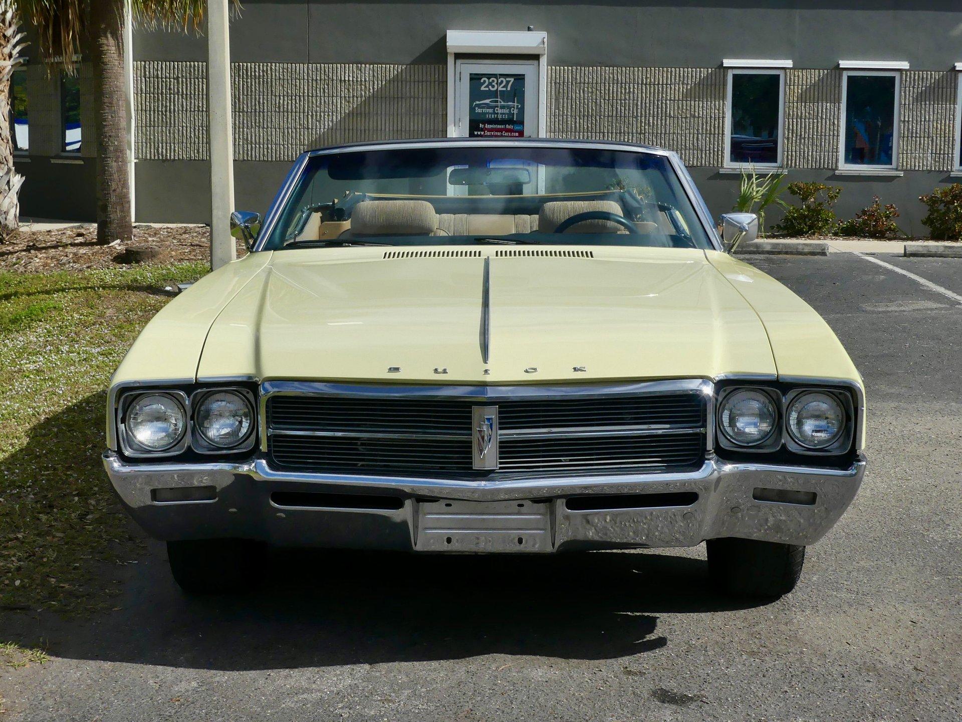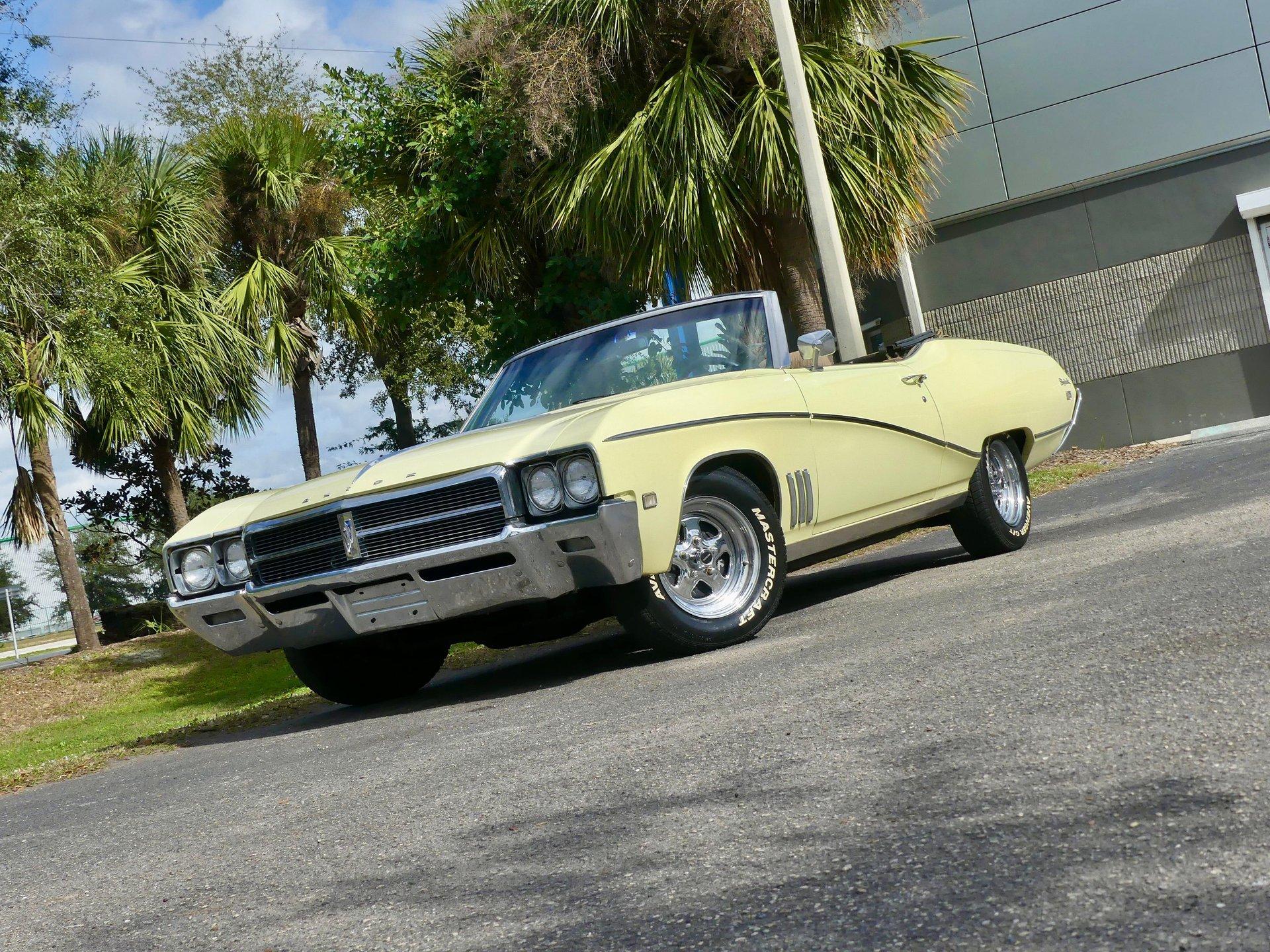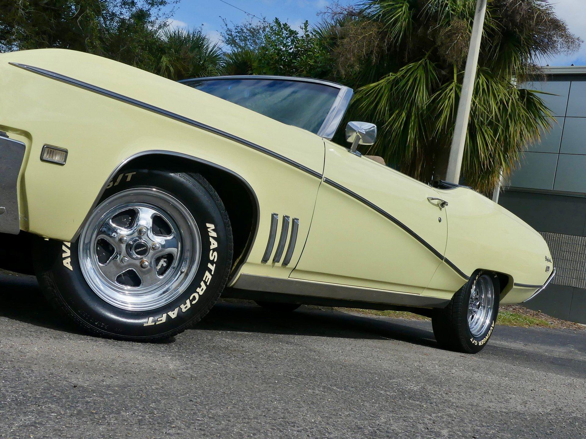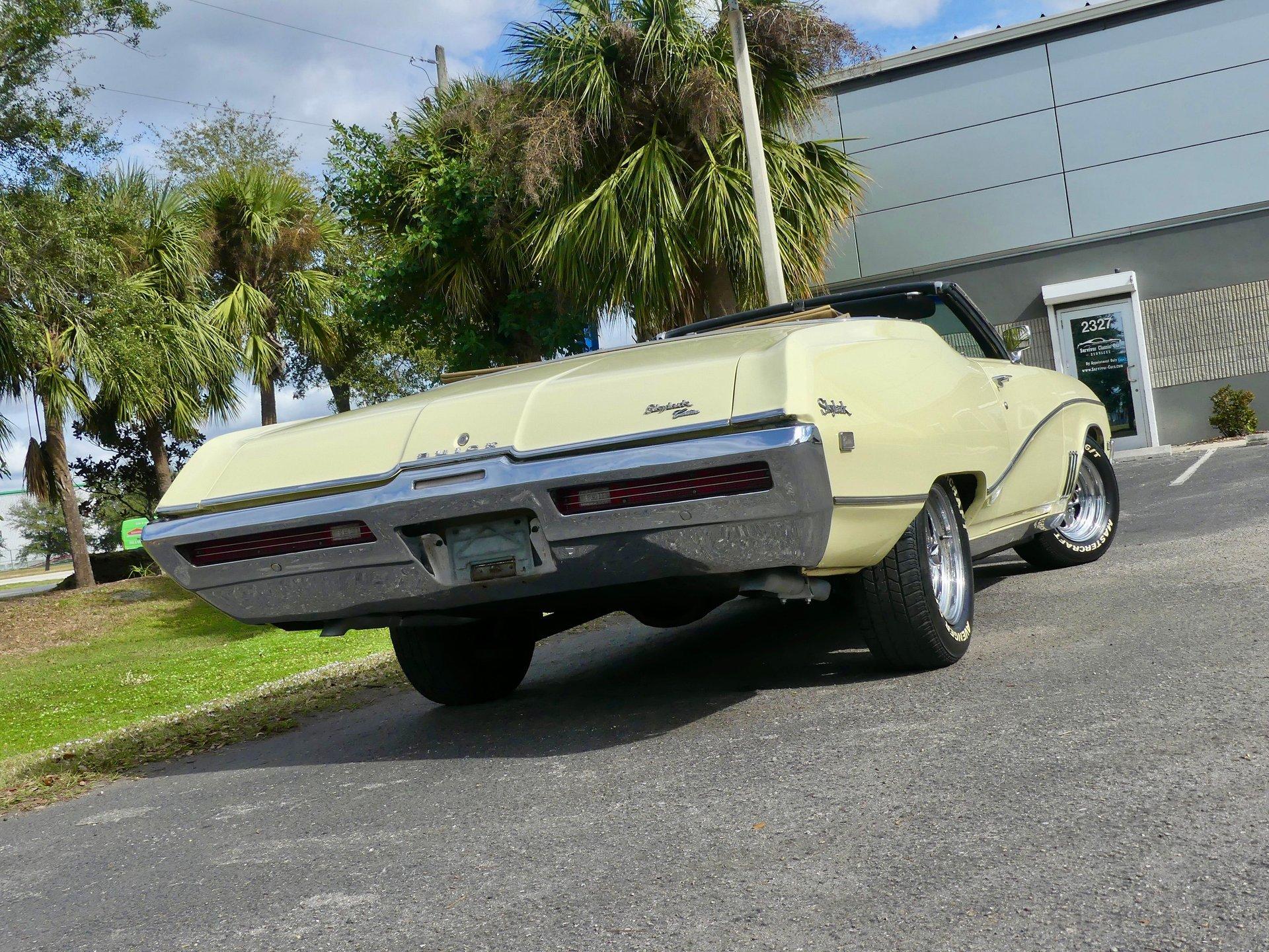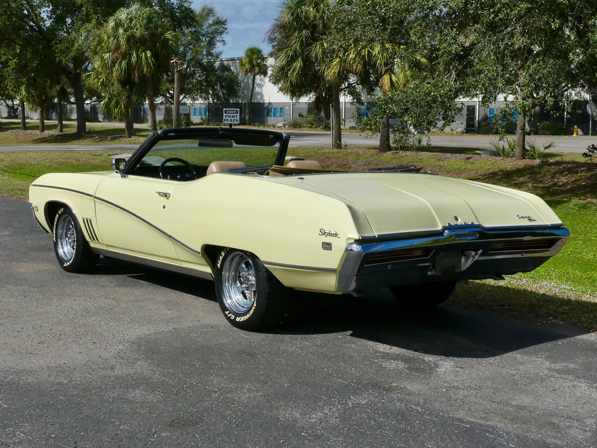 This 1969 Buick Skylark custom convertible is a muscle car, with a big block 455 CID V8 under the hood and a Turbo 400 automatic transmission. But it is also a luxury ride with power steering, power brakes, A/C, tilt steering, comfortable bucket seats, a power convertible top, and an AM/FM/CD player in the dash.
