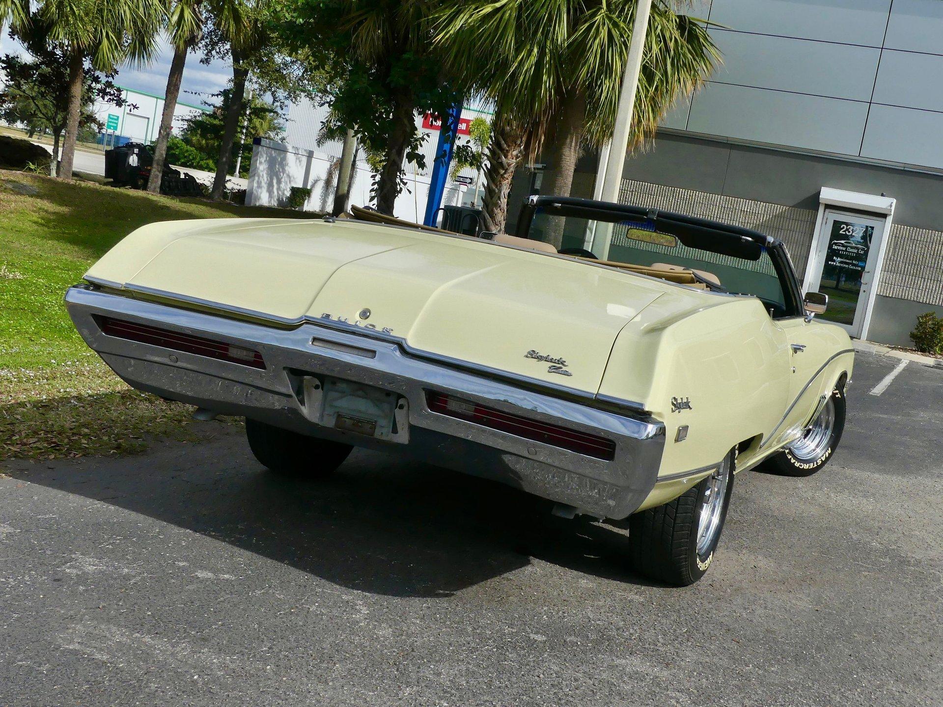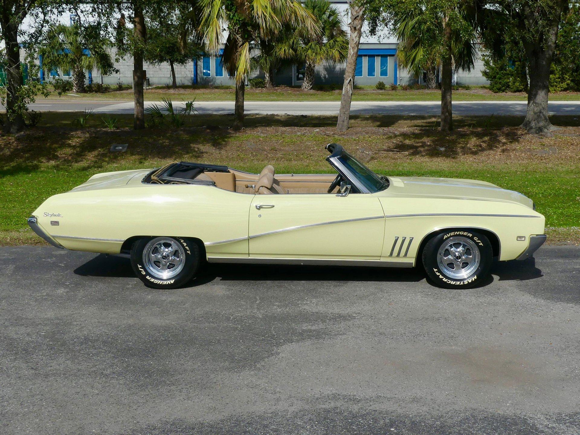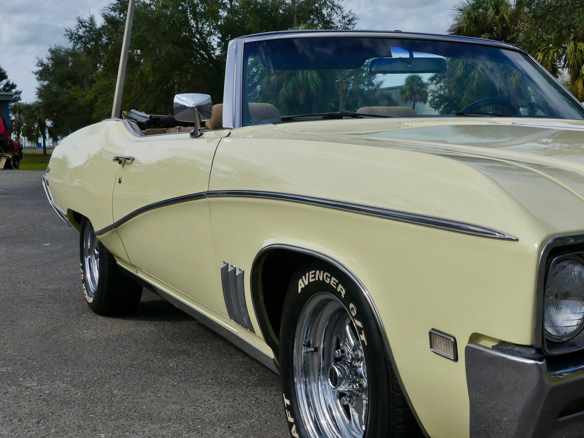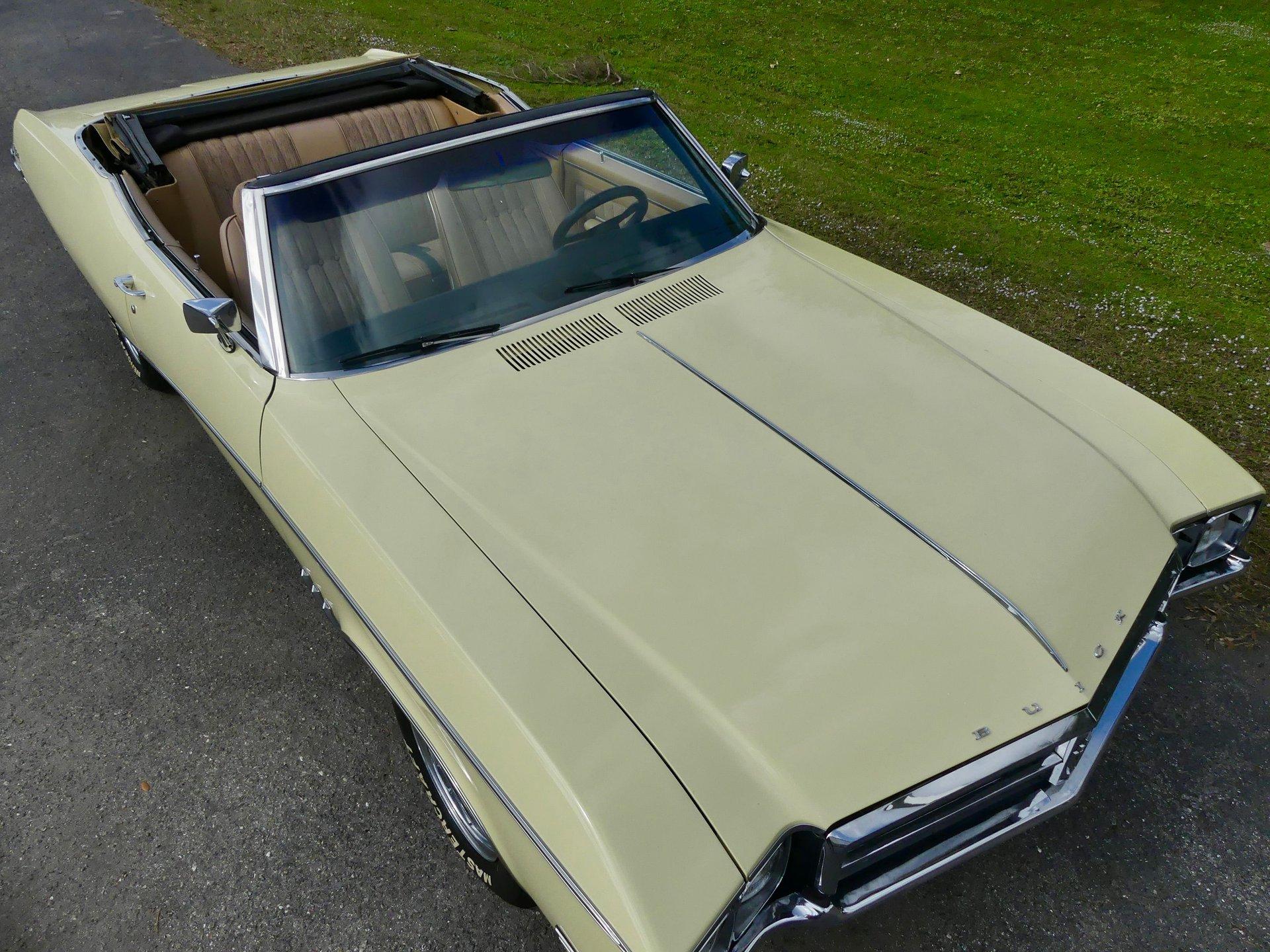 This 1969 Buick Skylark custom convertible is a muscle car, with a big block 455 CID V8 under the hood and a Turbo 400 automatic transmission. But it is also a luxury ride with power steering, power brakes, A/C, tilt steering, comfortable bucket seats, a power convertible top, and an AM/FM/CD player in the dash.