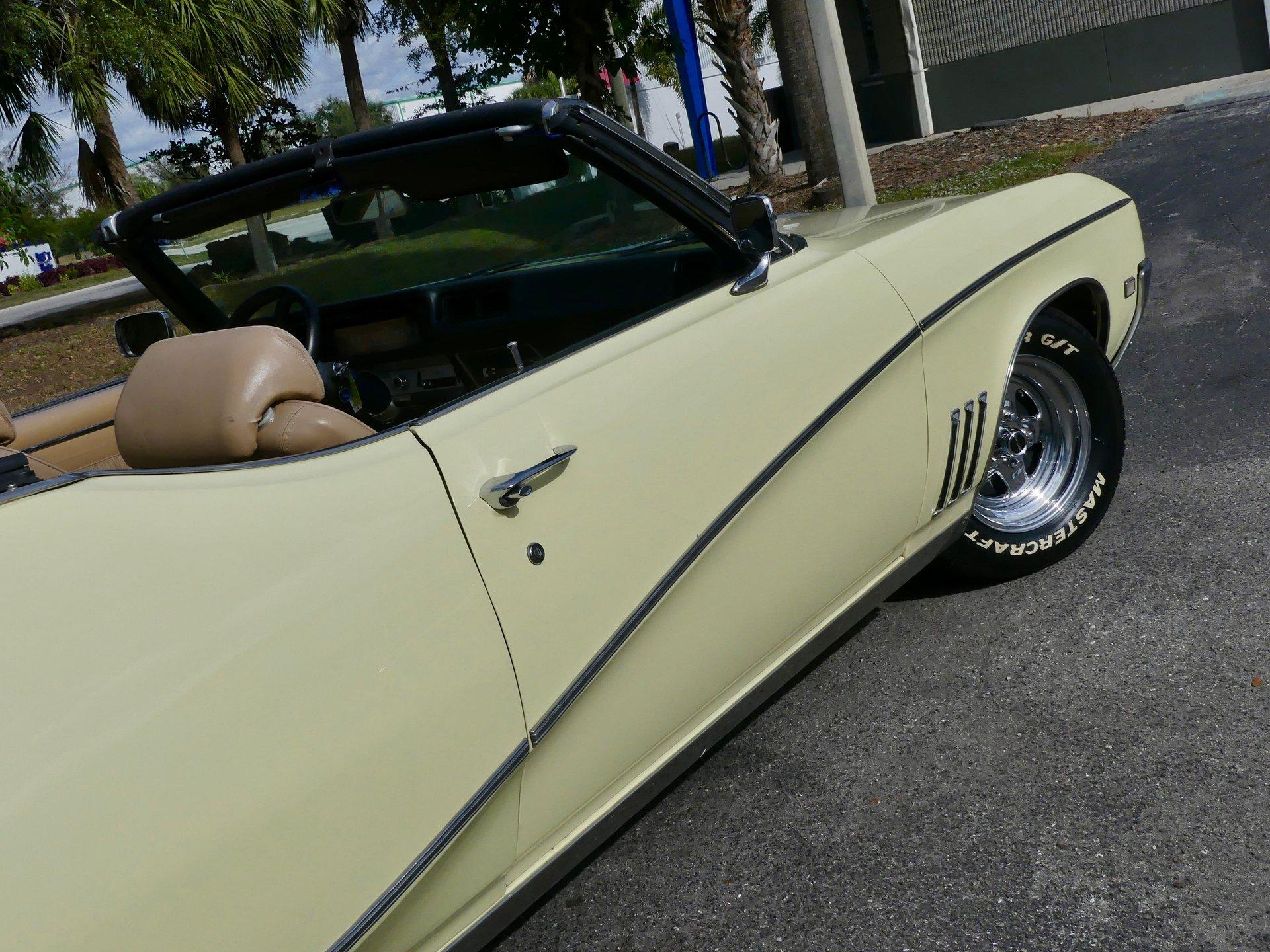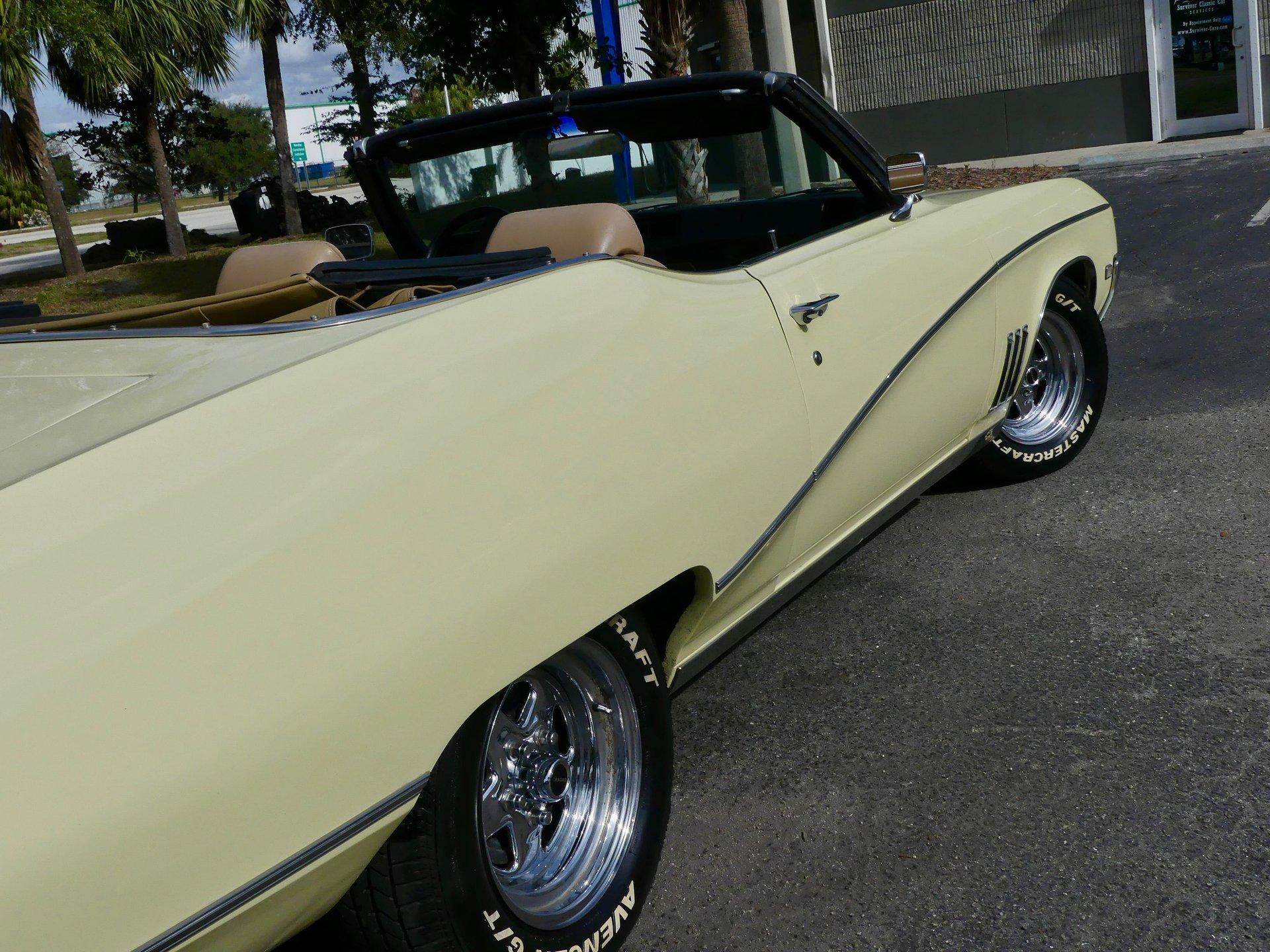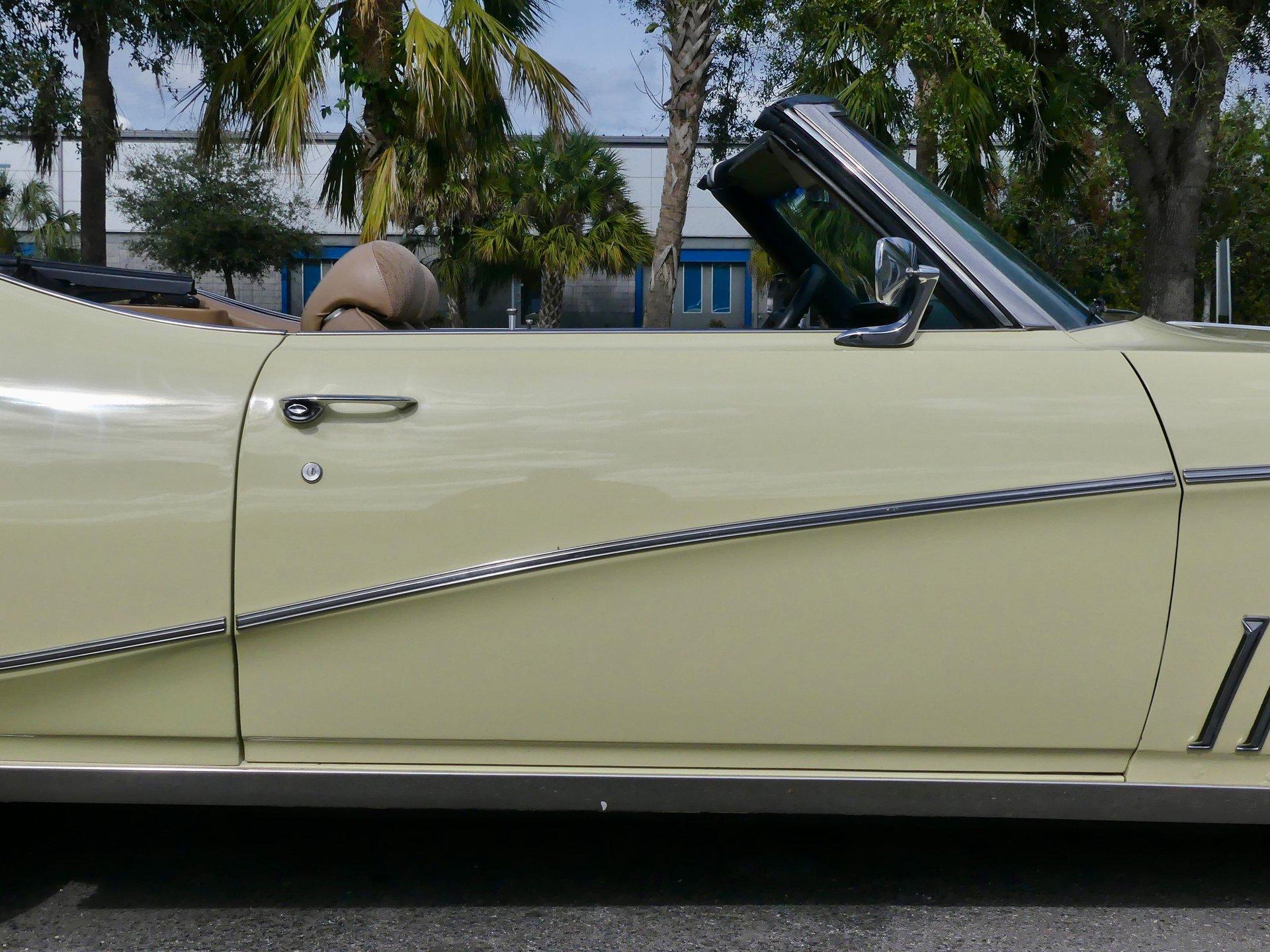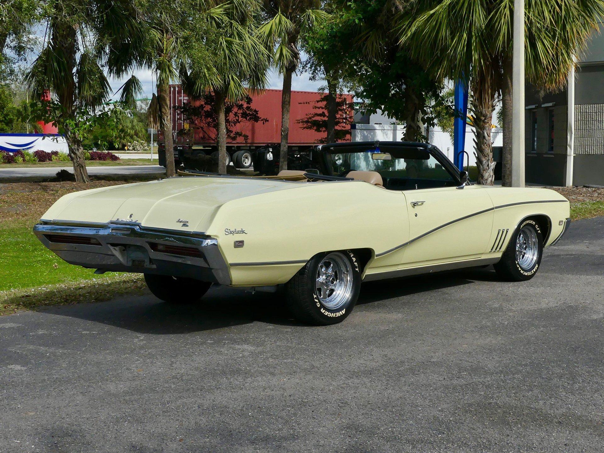 This 1969 Buick Skylark custom convertible is a muscle car, with a big block 455 CID V8 under the hood and a Turbo 400 automatic transmission. But it is also a luxury ride with power steering, power brakes, A/C, tilt steering, comfortable bucket seats, a power convertible top, and an AM/FM/CD player in the dash.