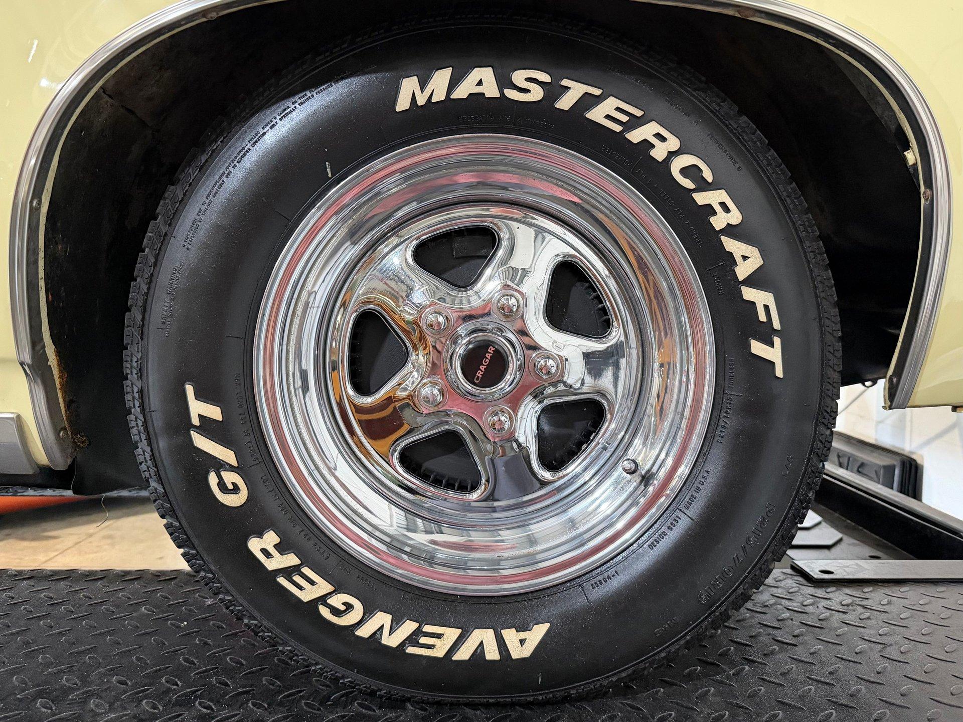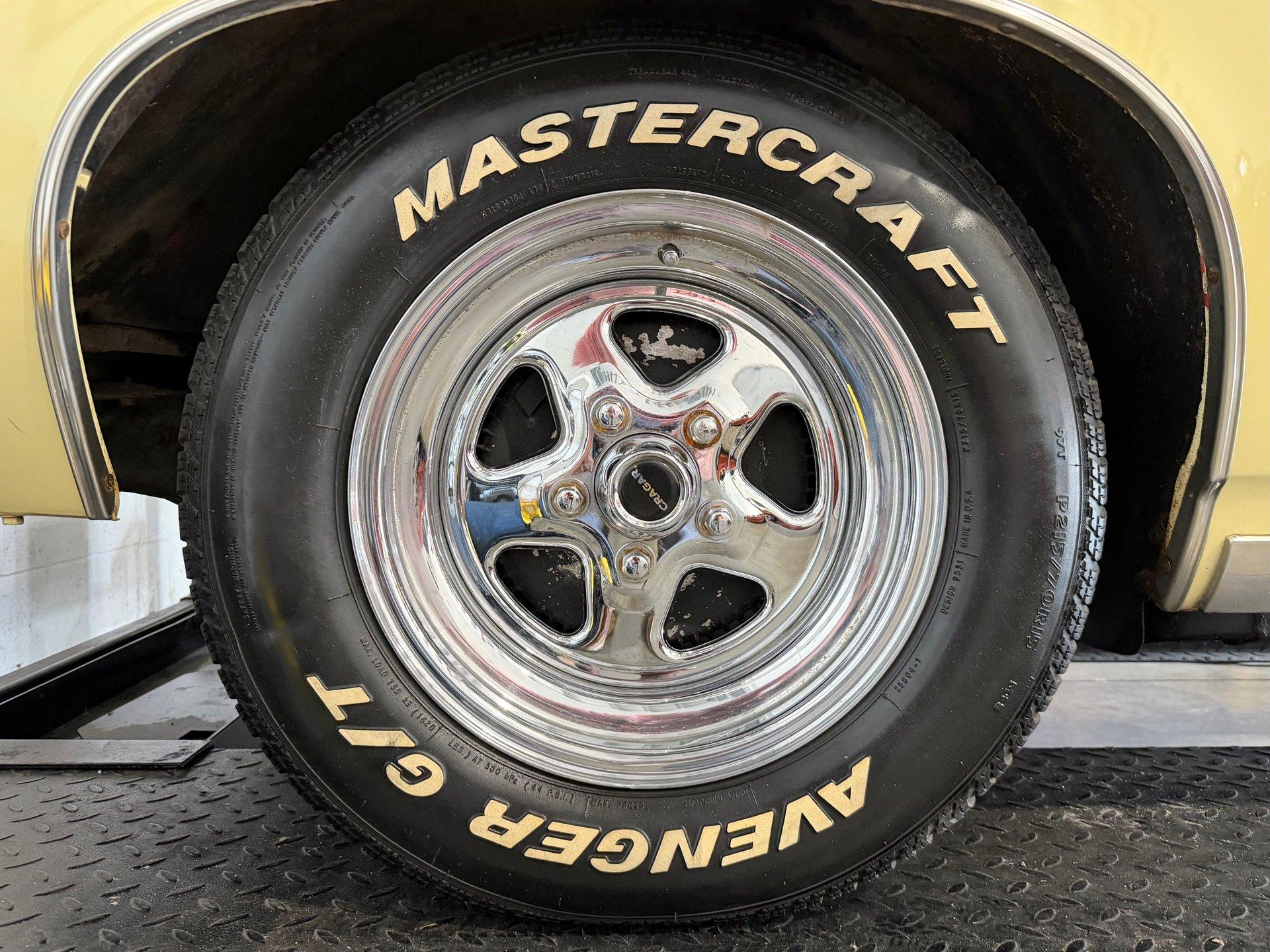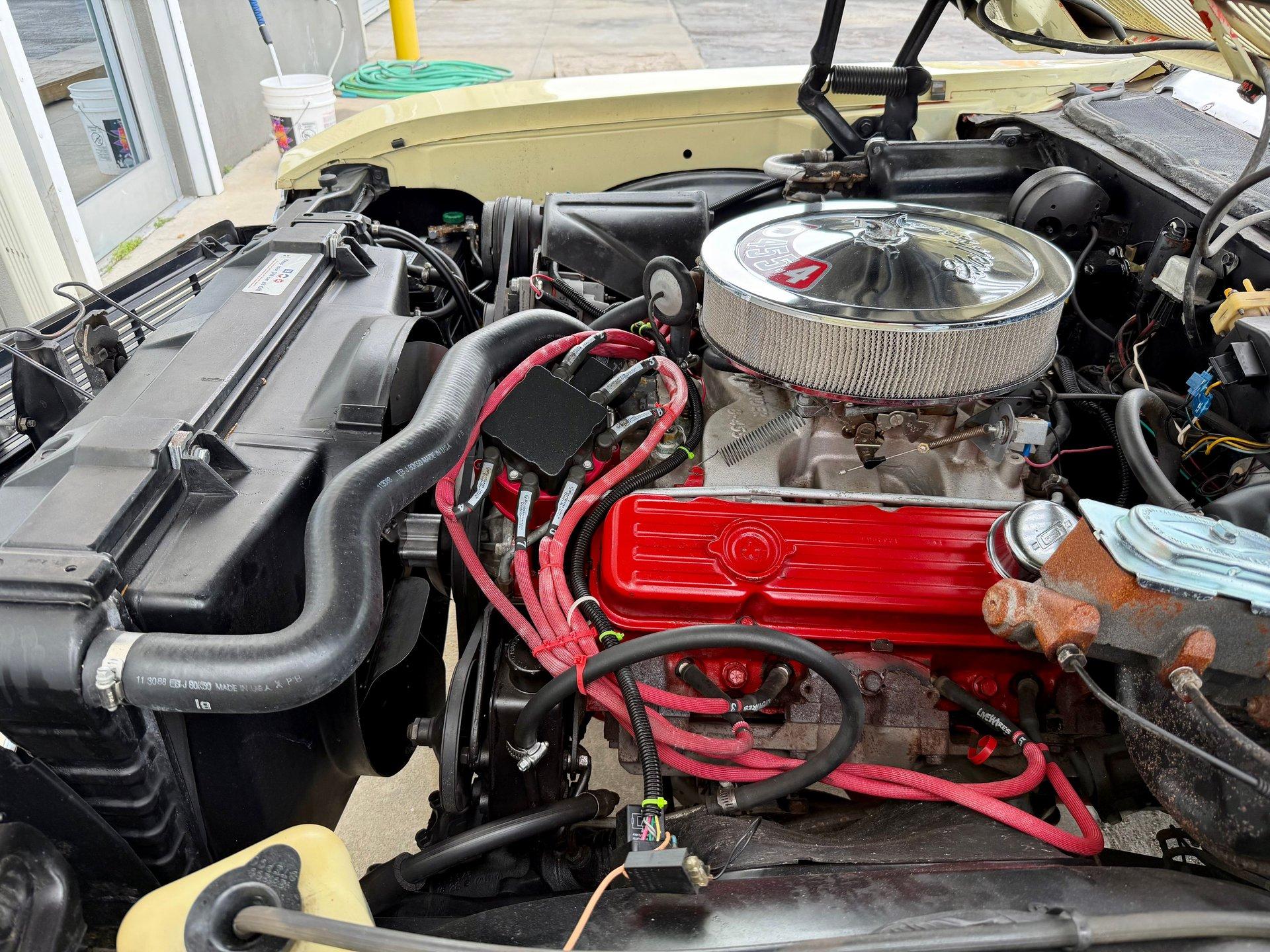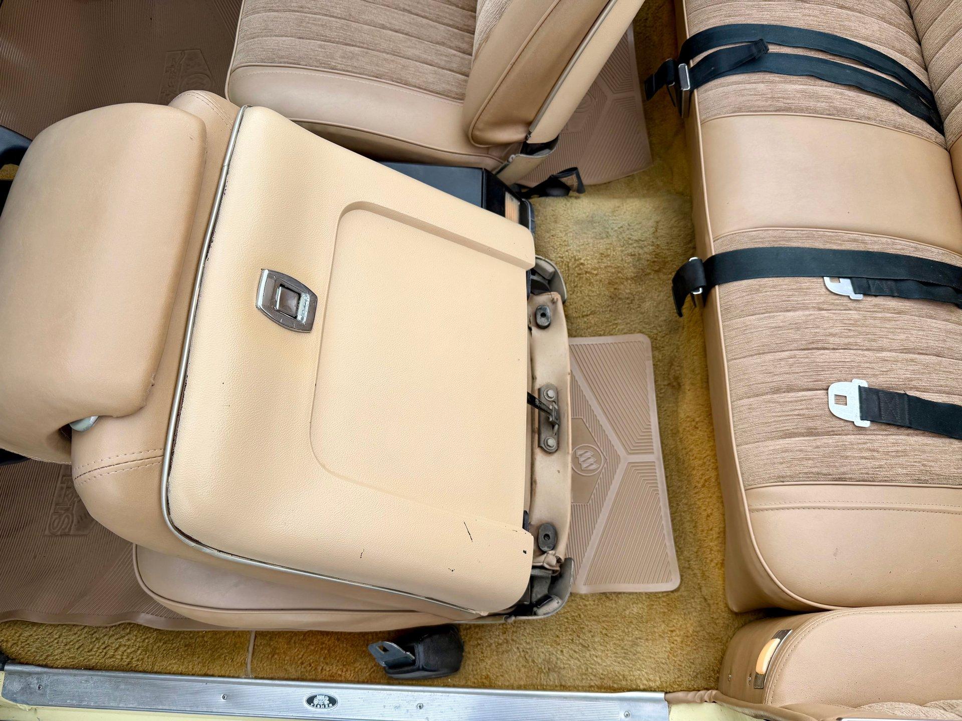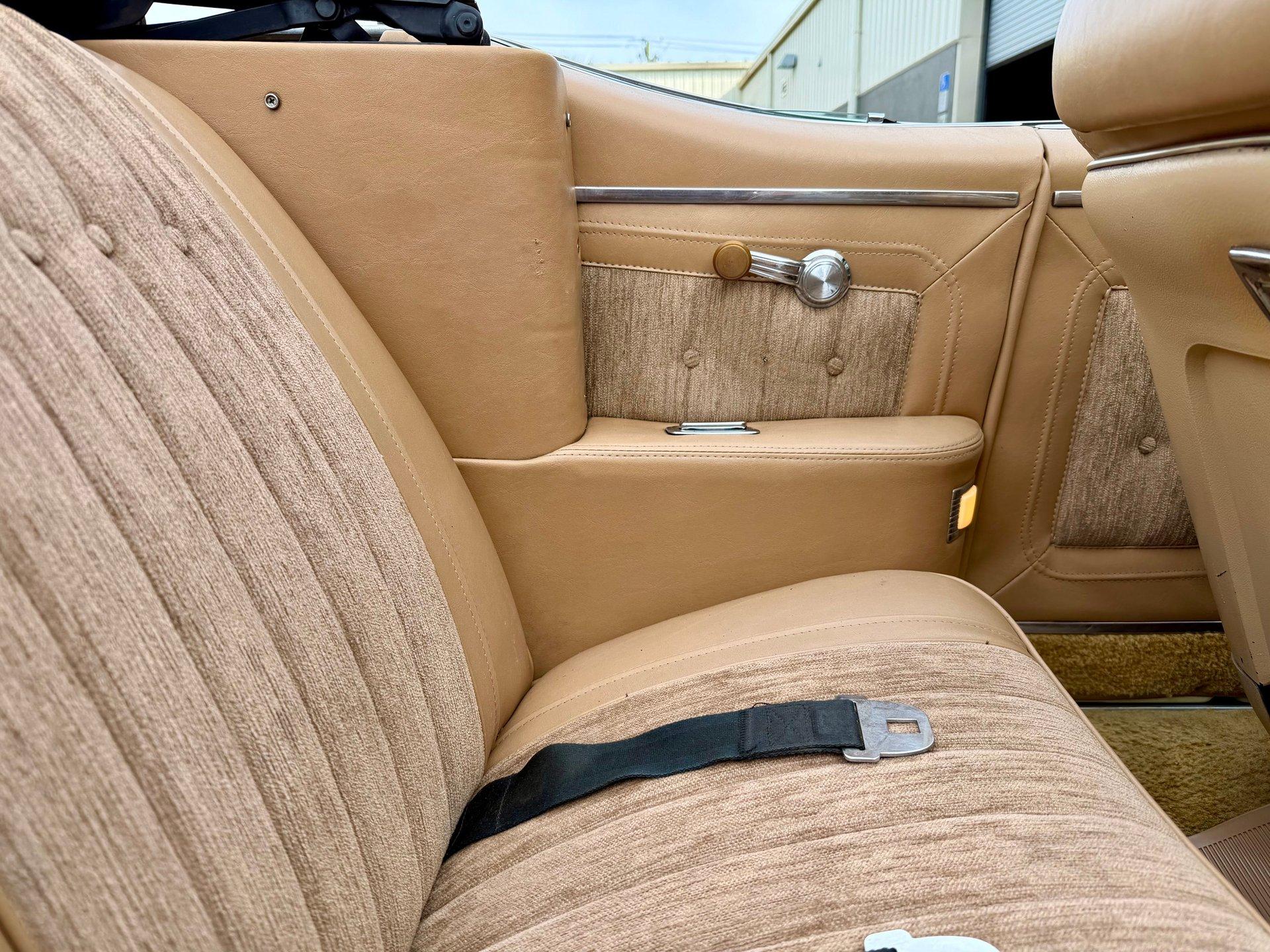 This Skylark wears the factor colors of Cameo Cream with a Buckskin convertible top and Buckskin interior. Cragar 5-spoke wheels have been added, which are always a nice upgrade. The steering wheel and radio have also been swapped for functionality and good looks. There is an upgraded intake, Edelbrock carburetor, and HEI distributor for a bit more power from the 455.