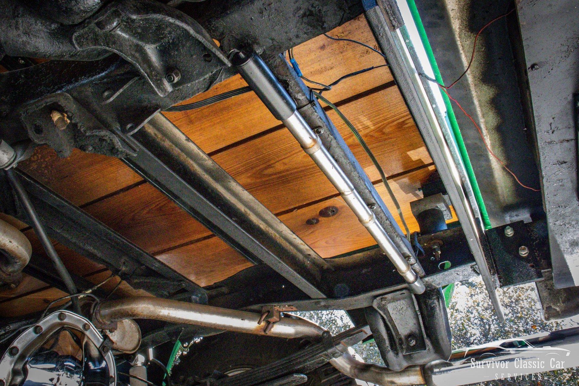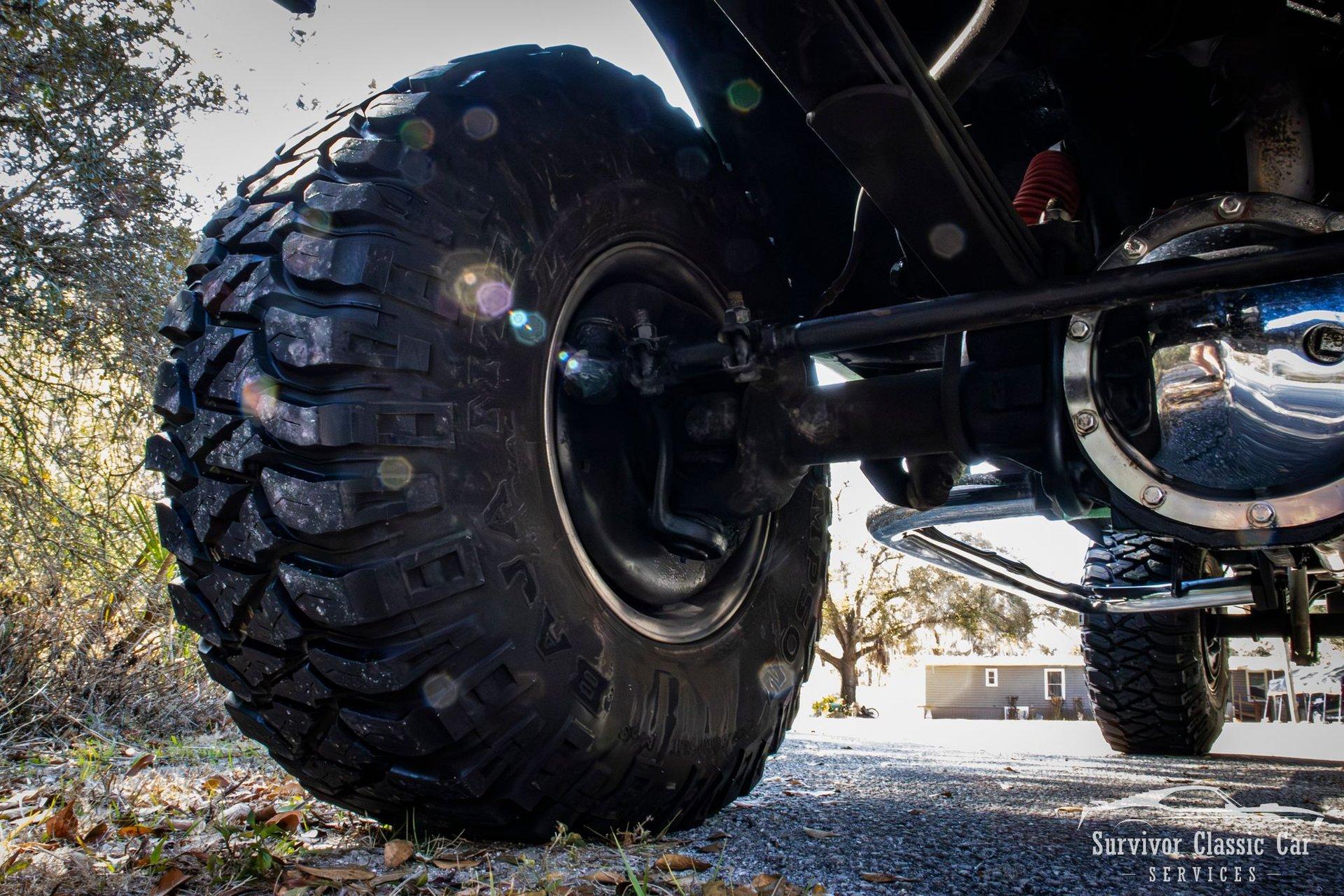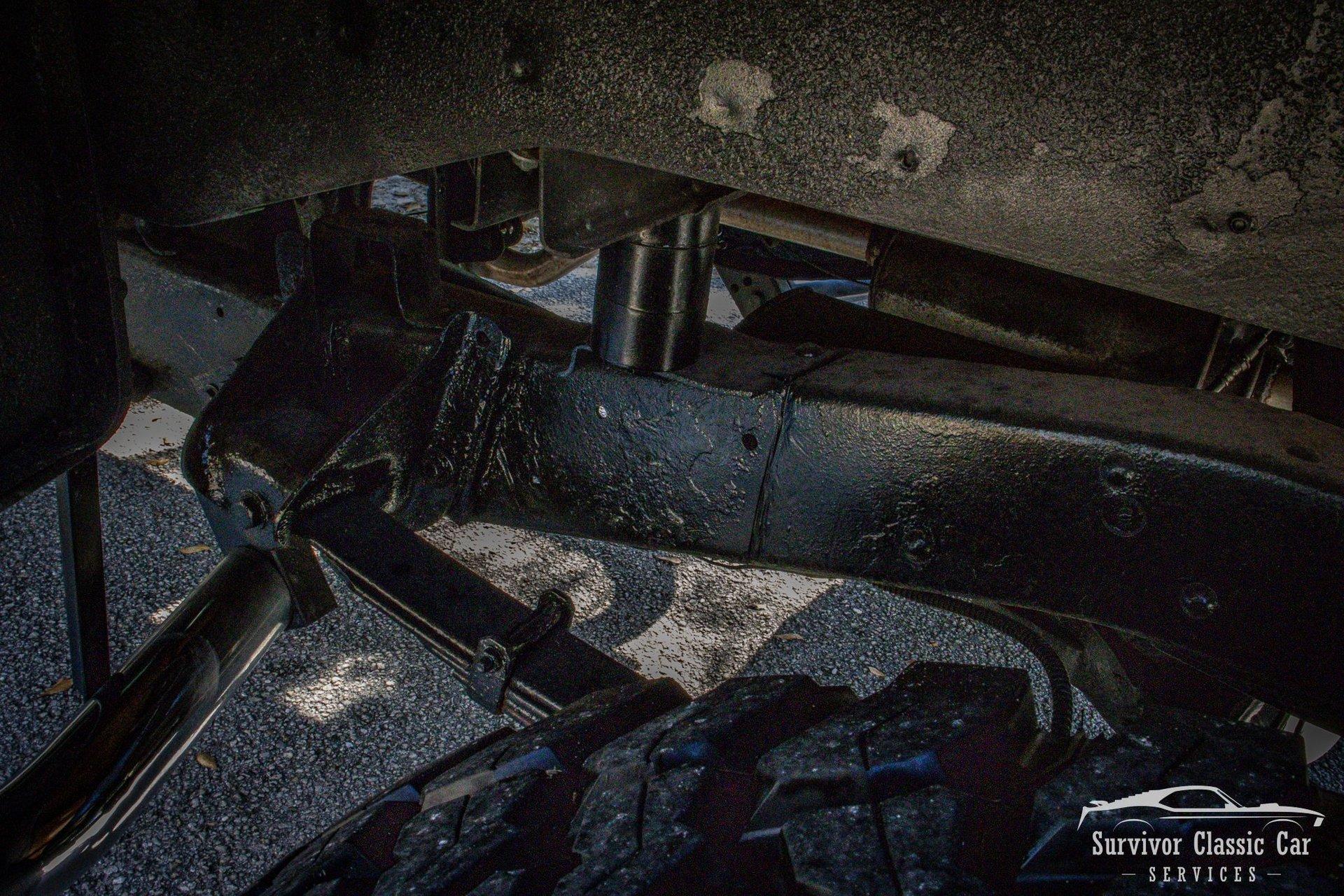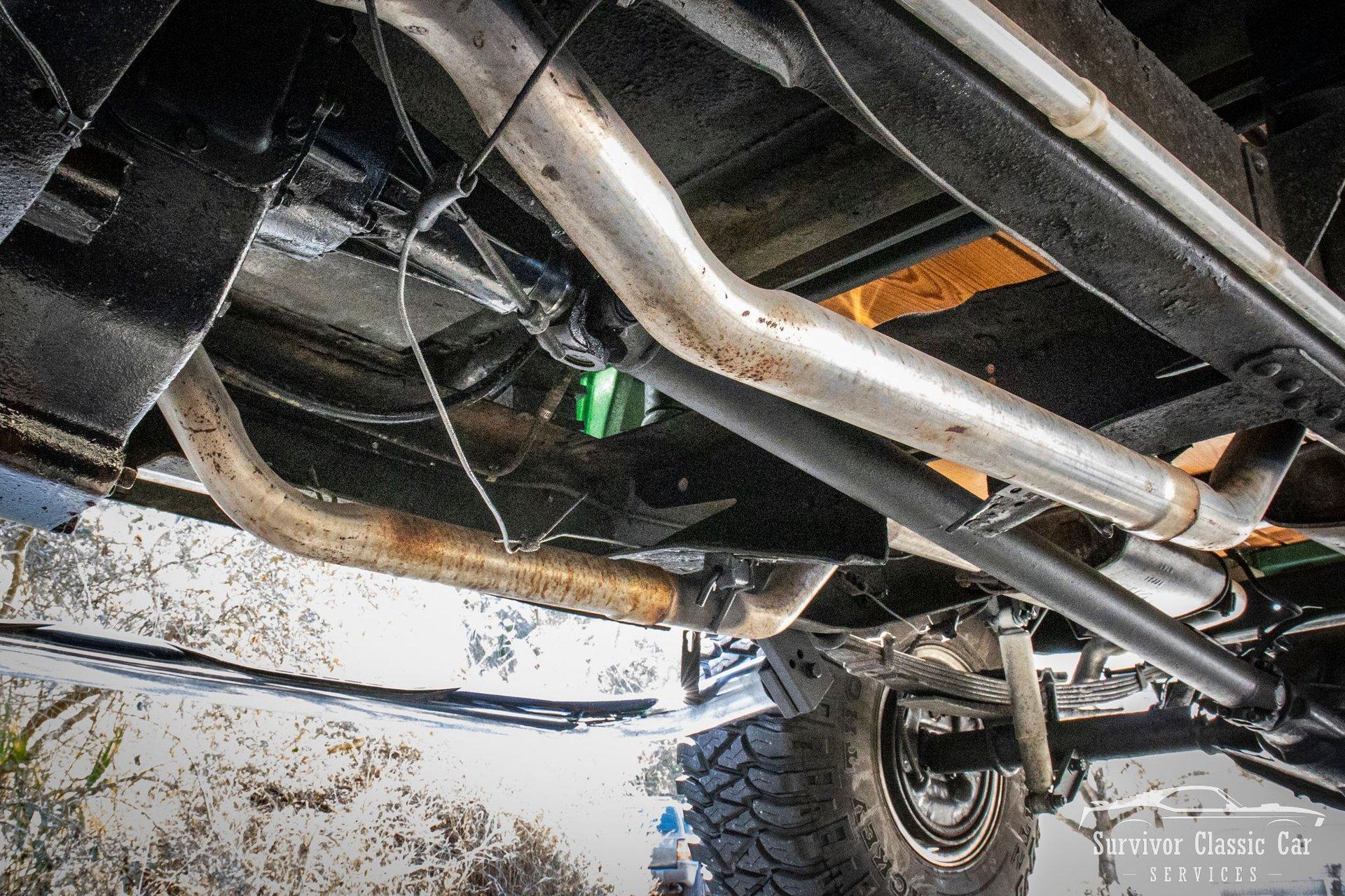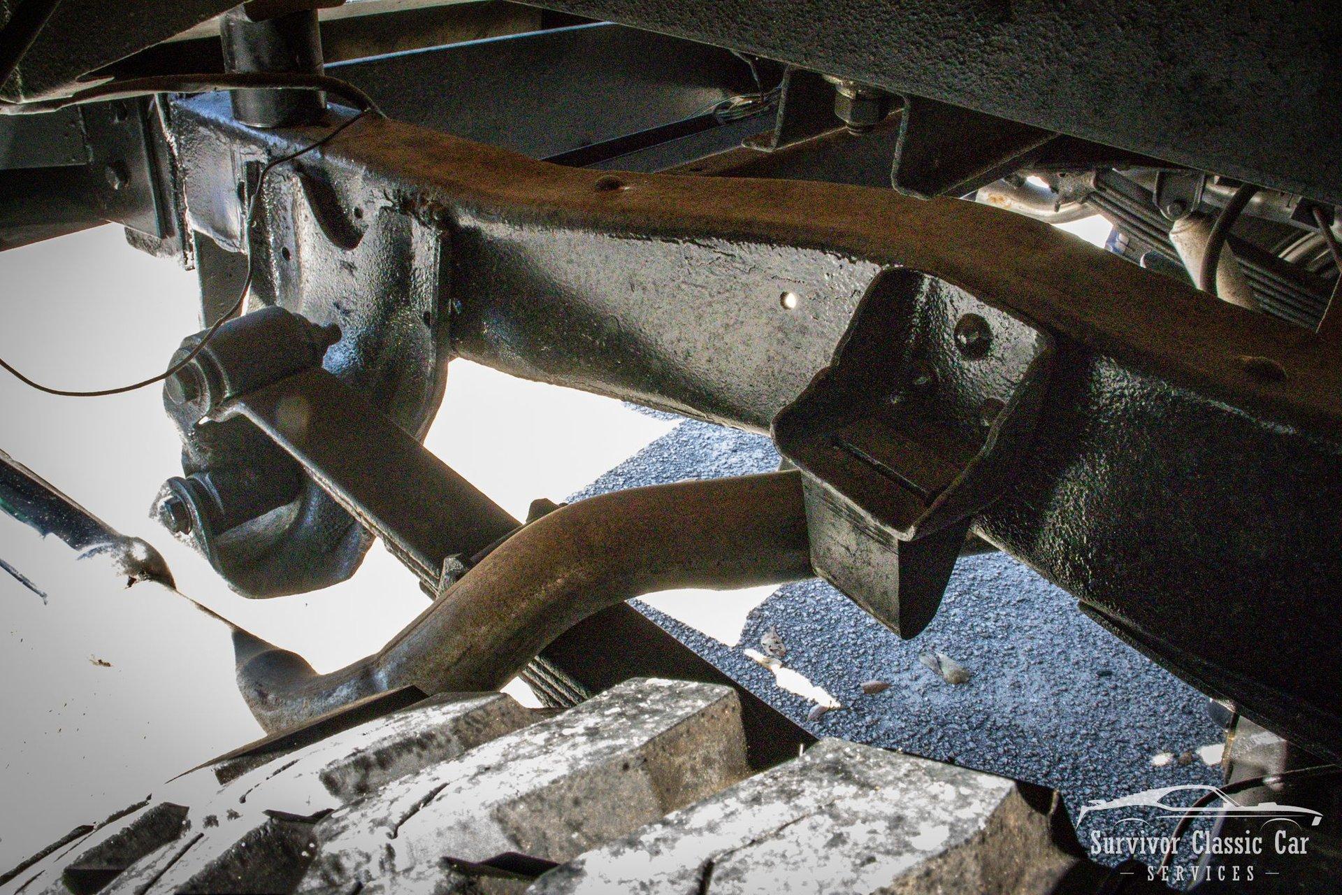 The Chassis is far from original, but still in the Chevrolet Line-Up. This Chassis is Chevrolet K10 (Believed to be from the same timeline 1971-1979 based off the C-99404 Transfer Case). Featuring Lifted Shock absorbers front & rear with leaf springs for a comfortable ride. Driving down the road, she's tracks straight and isn't to difficult to get up inside.