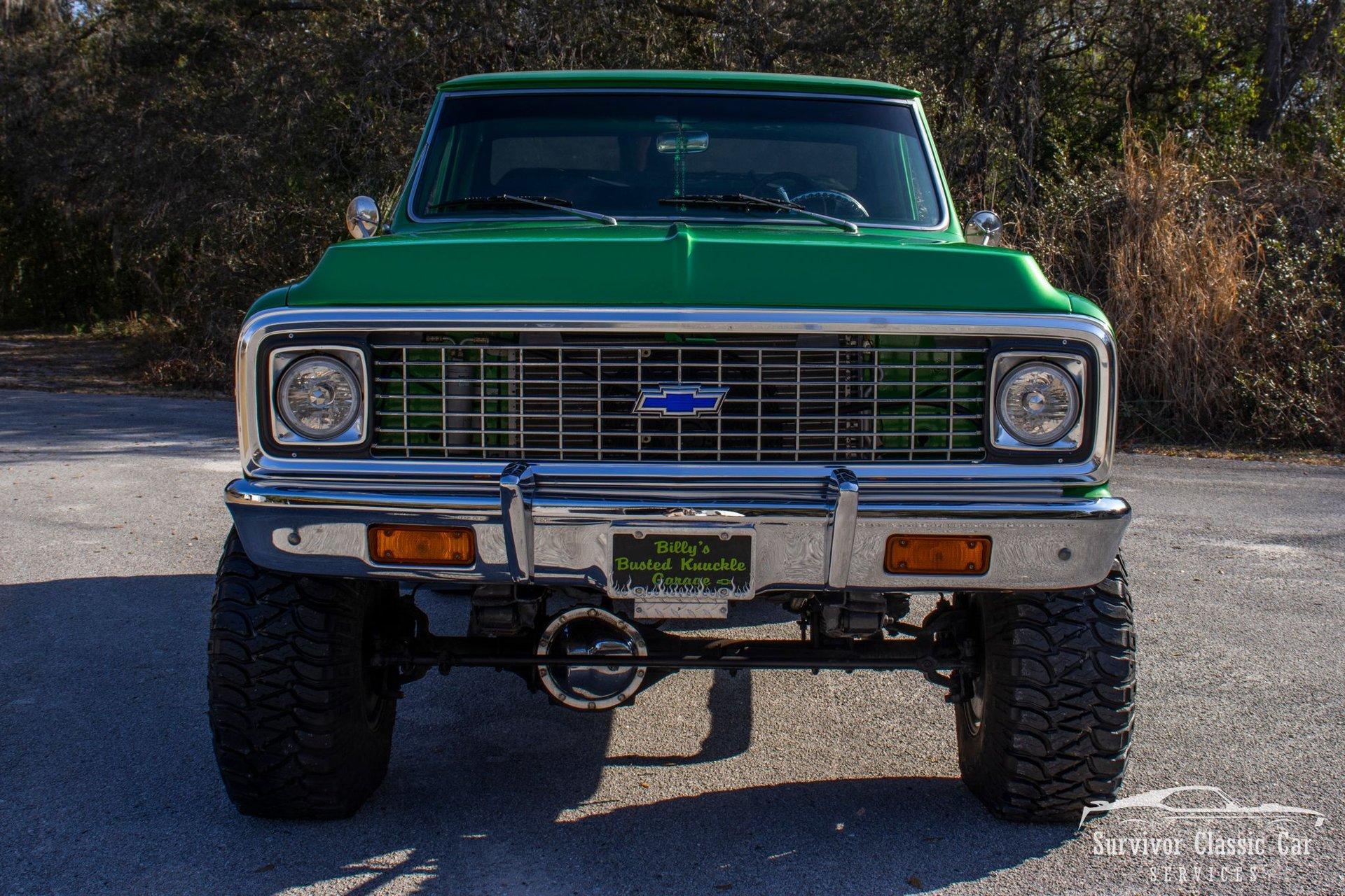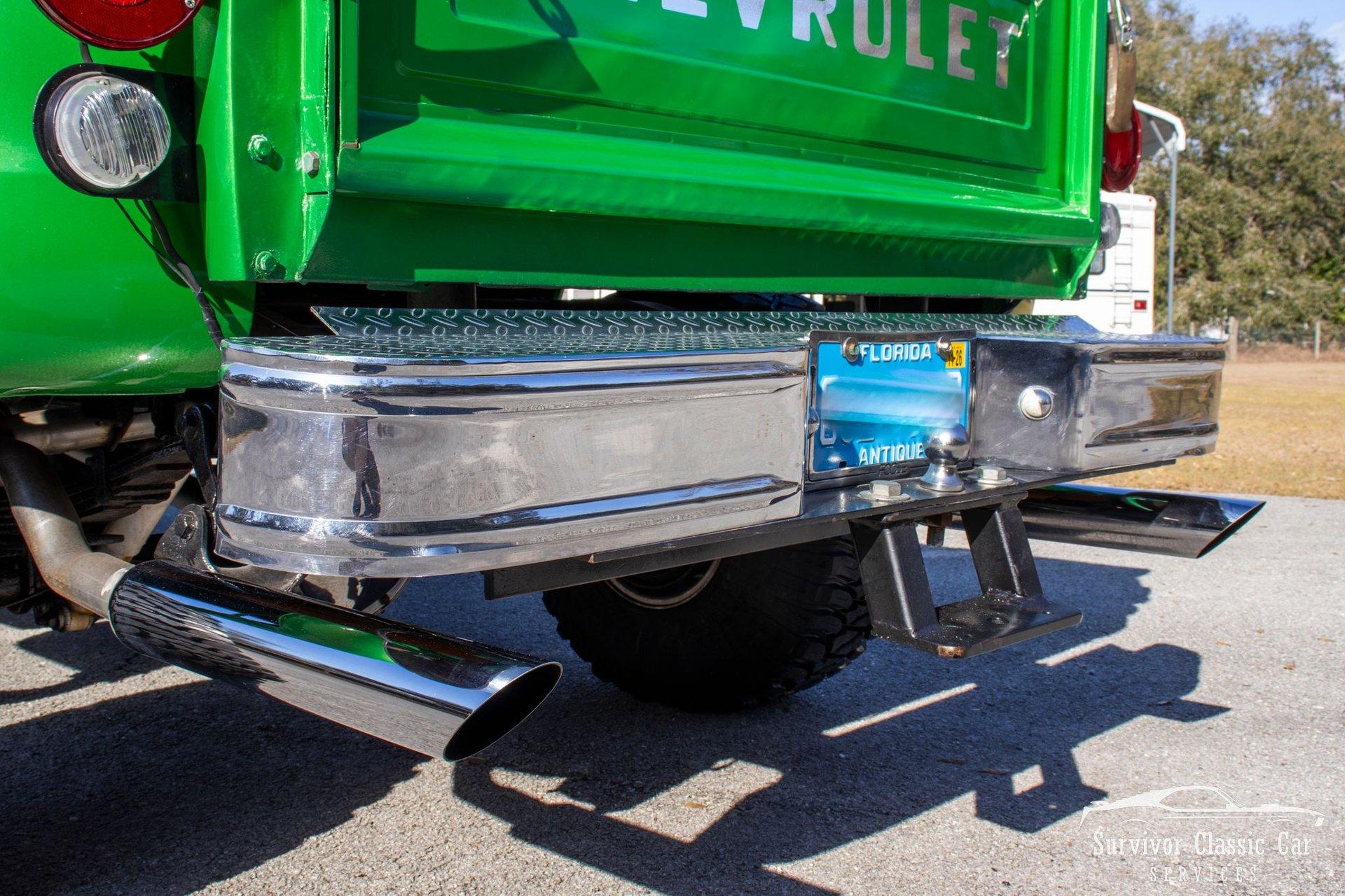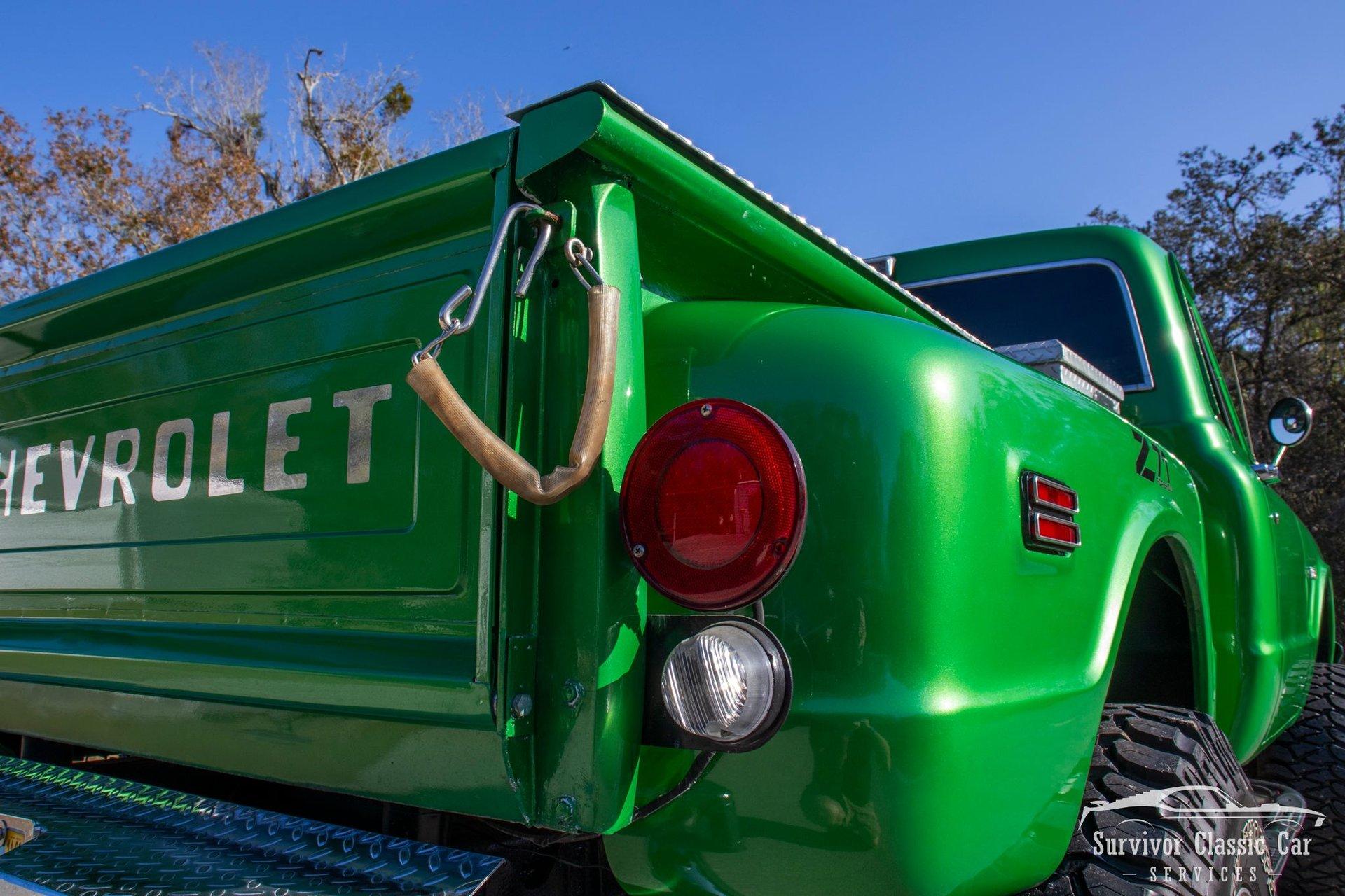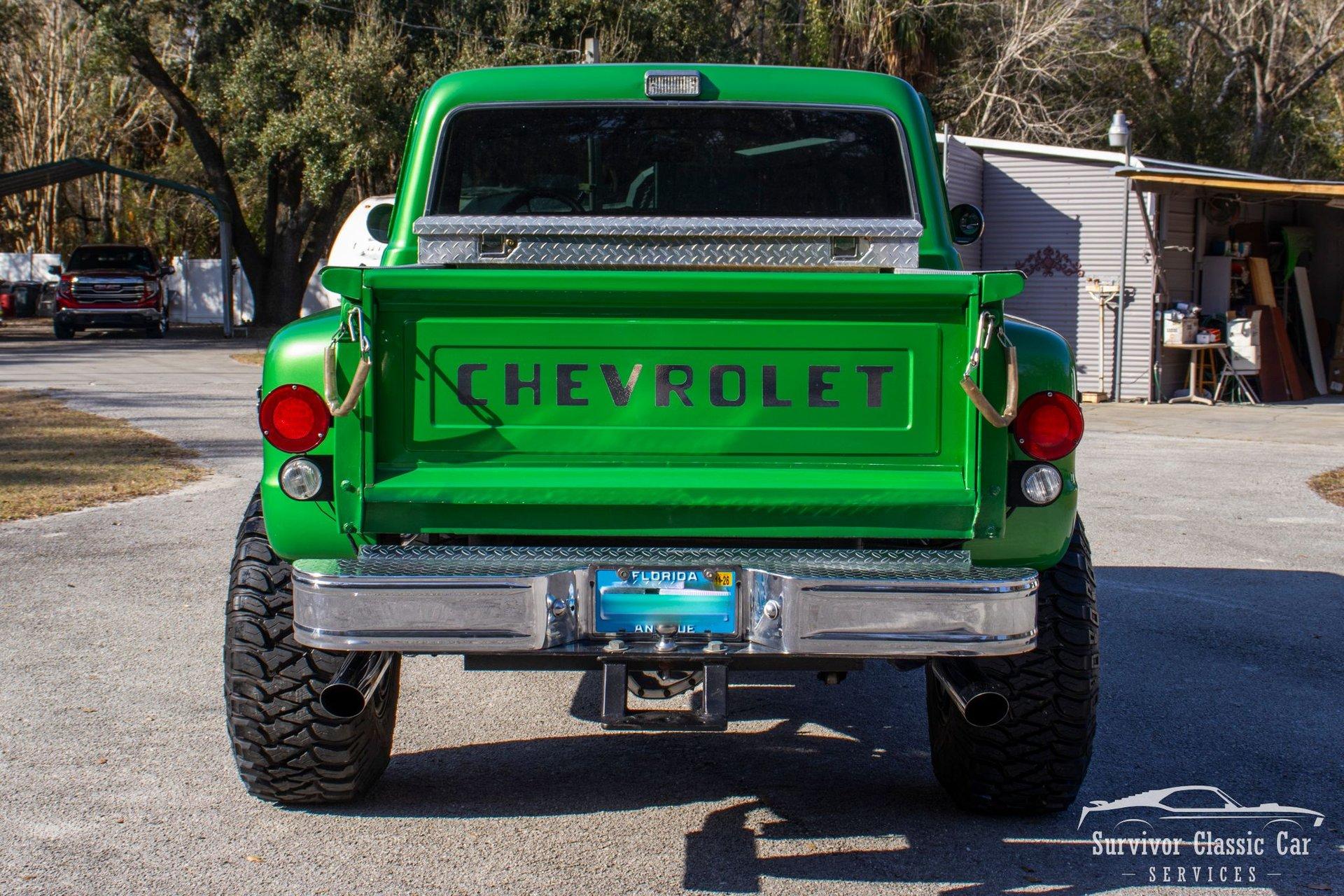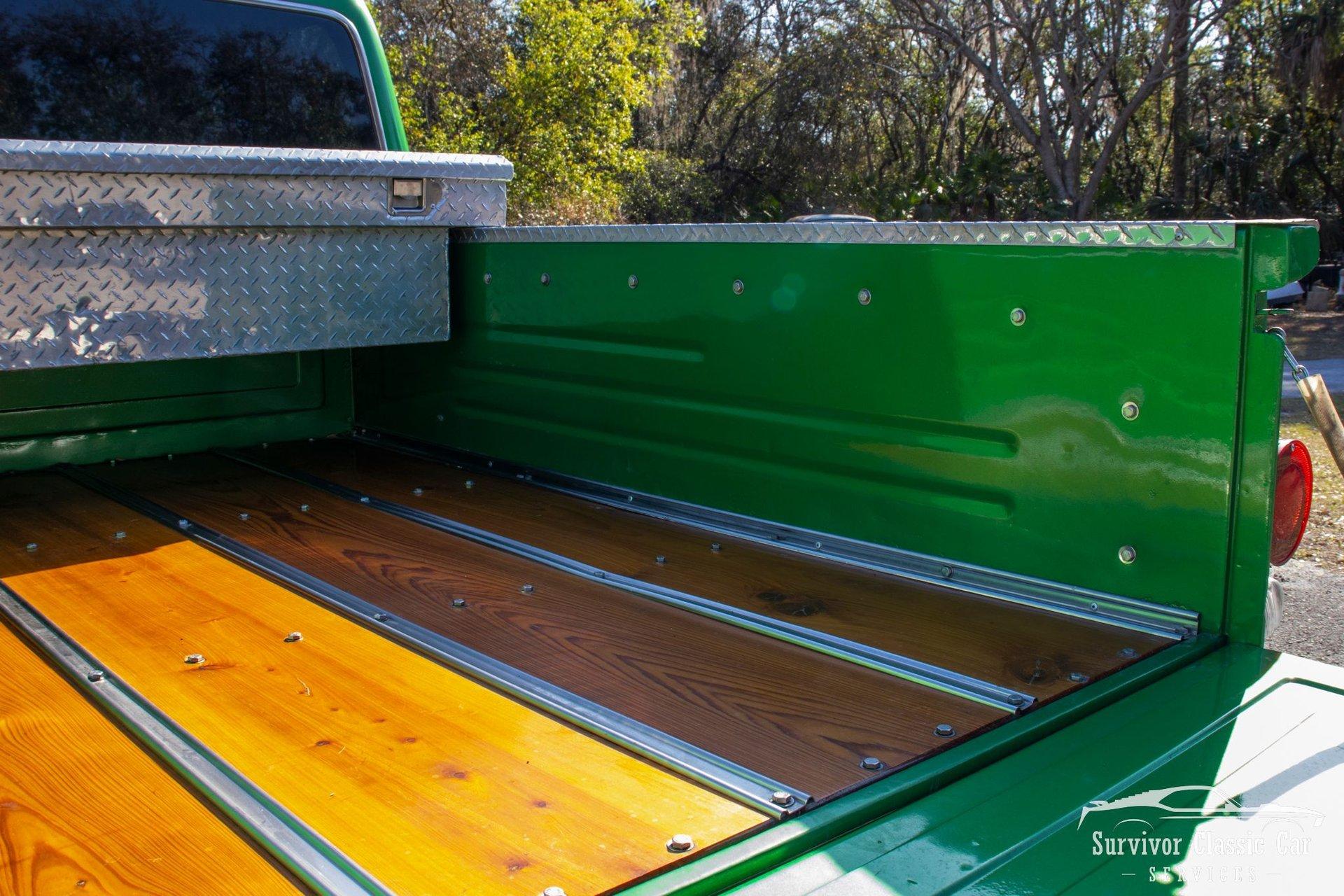 The 1971 Chevrolet C10 is a highly desirable ''Action Line'' (1967–1972) pickup, often noted for blending rugged capability with improved comfort & style. This Green is not a factory color, but one that is a beautiful color that attracts the wye. The metallic pearls float to the top of the paint and have a smooth shimmer in the sun. The Chrome Bumpers & Trim are polished to a show finish and a stunning real wood bed that ties everything together.
