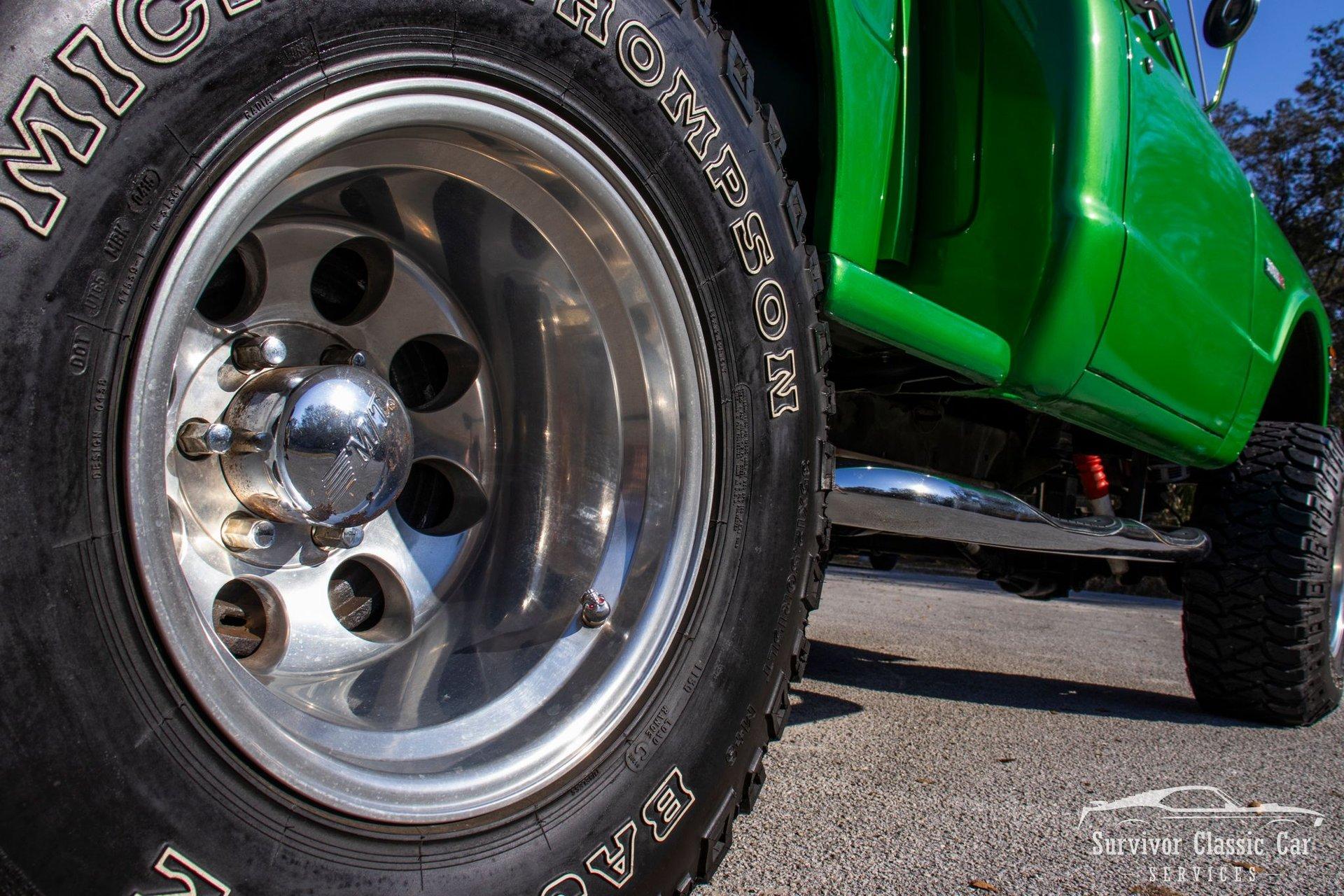 Electric Green Metallic, Chrome Trim & a 4x4 Lifted Chassis, this is the C10 that commands attention where ever it goes. Powered by the reliable 5.7L 350 V8 and fitted with an ICE Cold AC Cooled Interior!