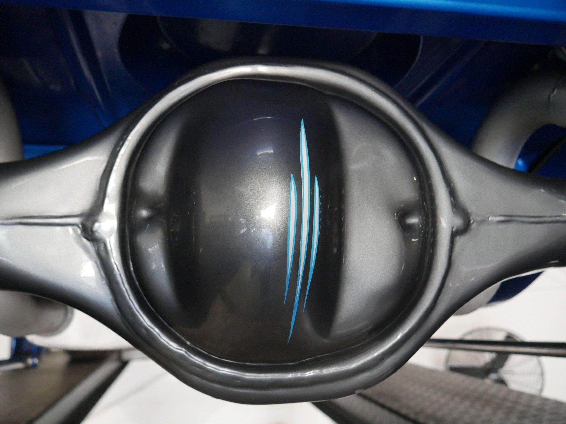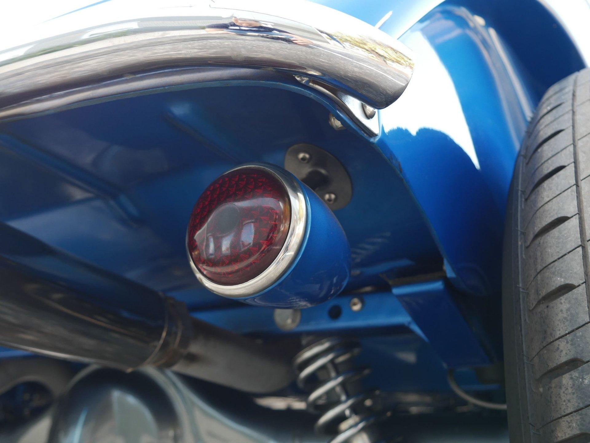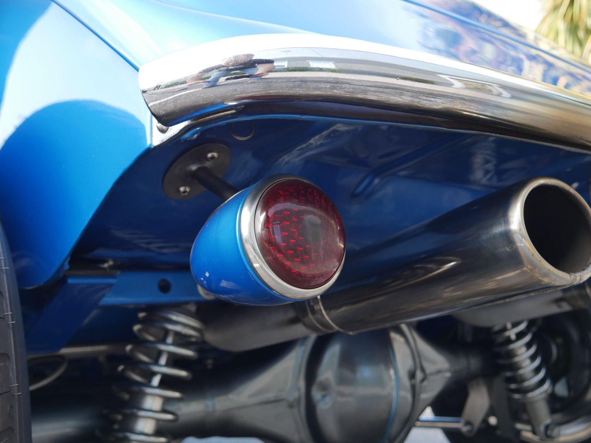 Up front you'll see a custom paint matched grill that looks silver from some angles and blue from others. Stainless steel headlights with built in turn signals, and a tub bumper finish off the front. On the rear you'll see custom painted taillight buckets, third taillight in billet aluminum, and a lighted license plate holder.