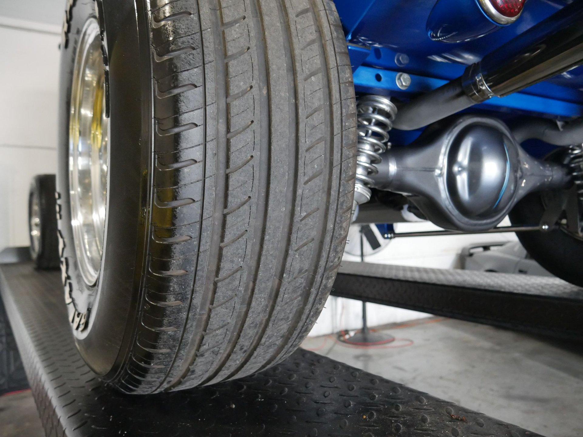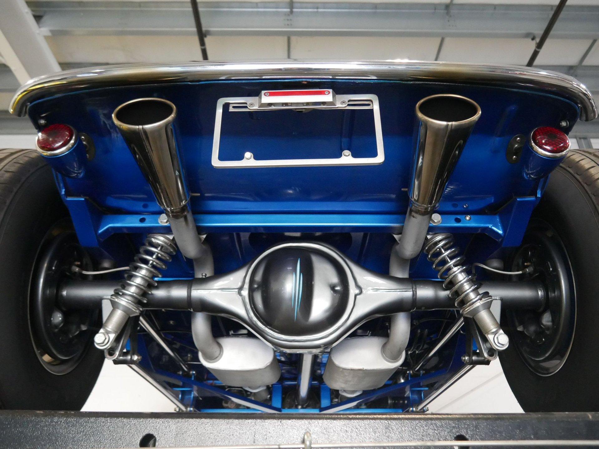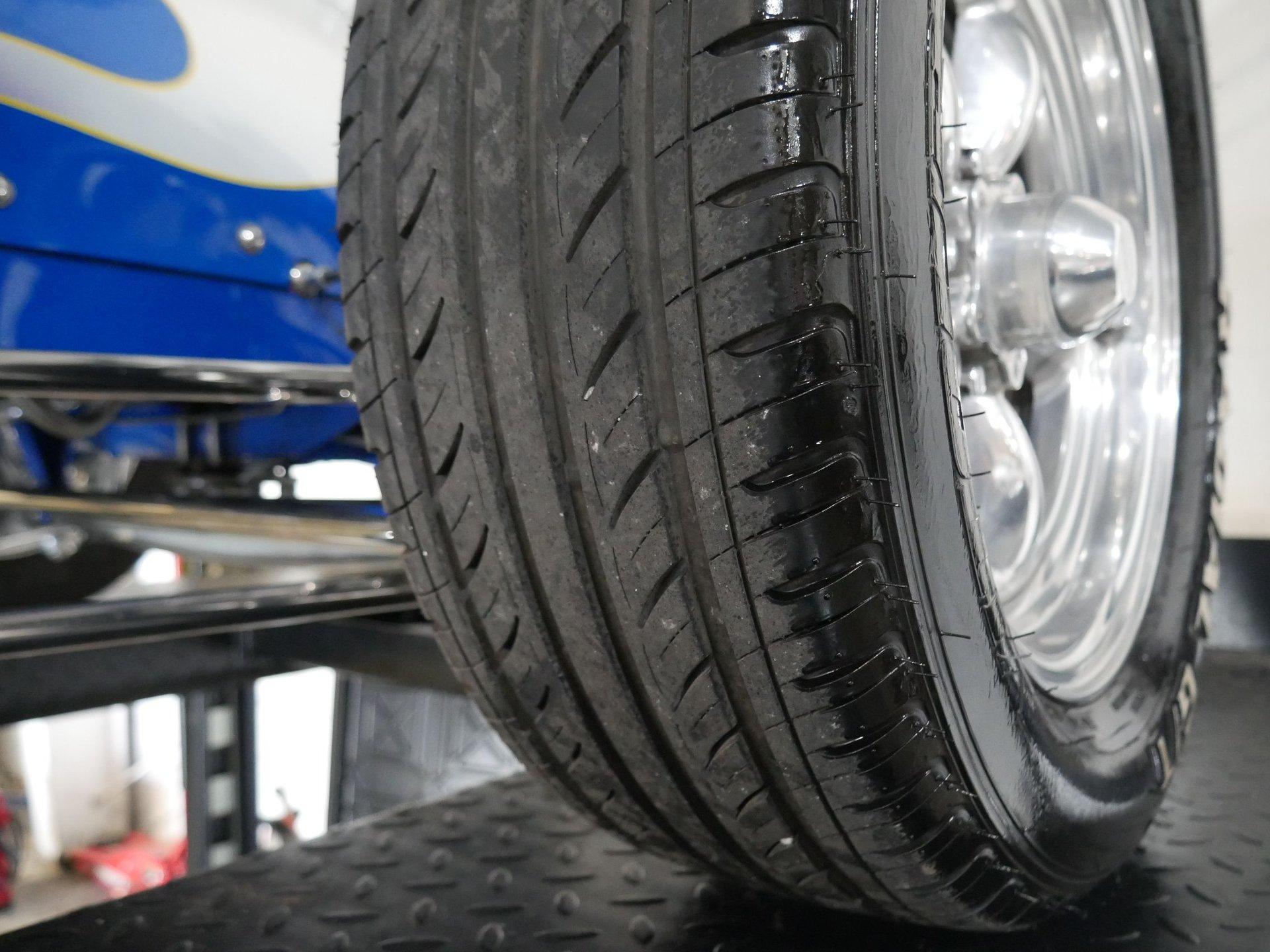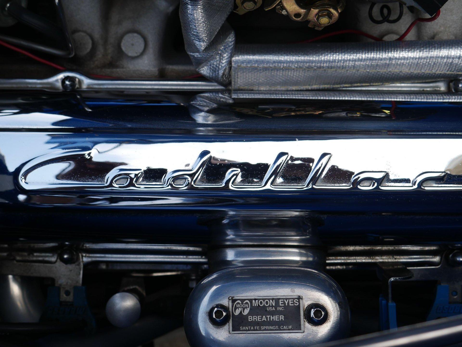 The powerplant moving this hot rod is a 355 CID V8 Chevrolet small block V8 with aluminum heads, Edelbrock intake, Edelbrock 4-barrel carburetor, custom “Cadillac” valve covers and batwing air cleaner that is also painted to match the car. Backing that powerplant is a 4-speed automatic transmission running to a Ford 9” rear end with 3.54 gears and a 4-link setup. Coil over shocks on the rear make for a nice ride. The underside of this car is about as nice as they come, and you'll be happy to let people check this ride out from every angle.