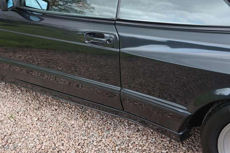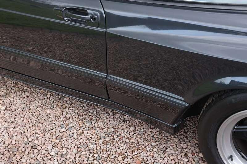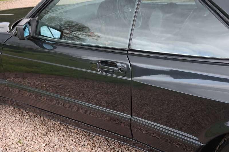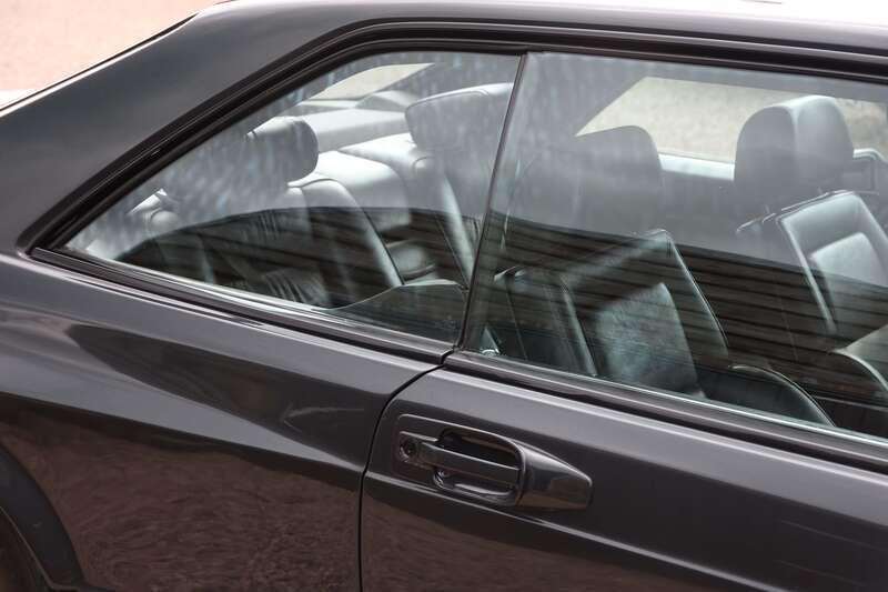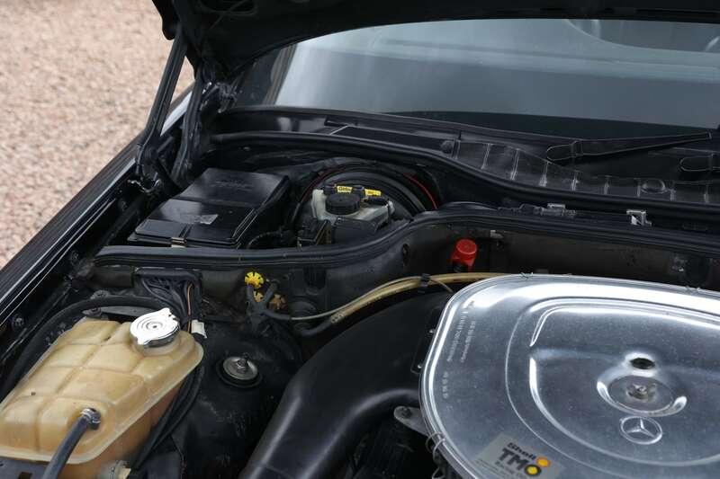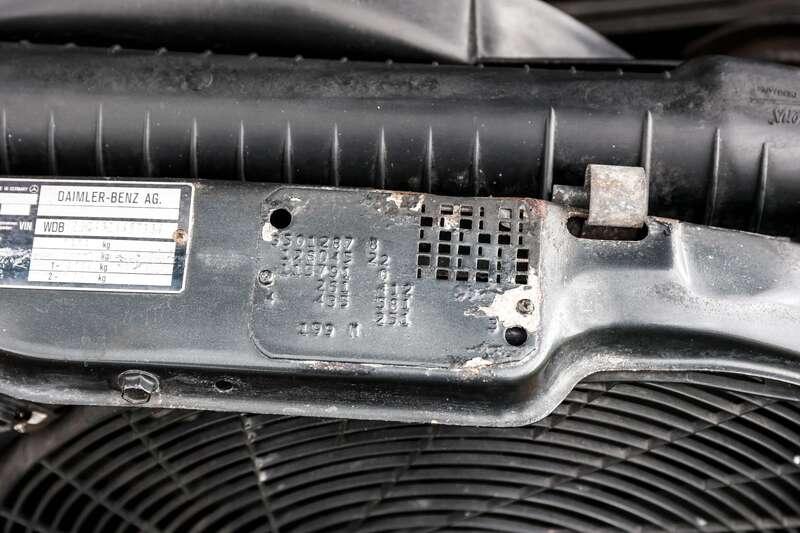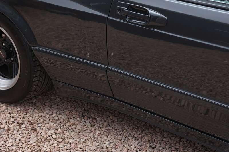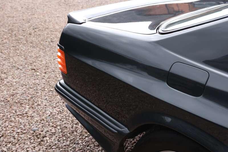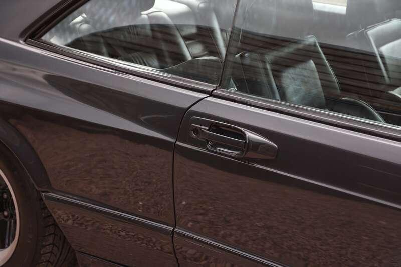 This W126 560 SEC was built in early January 1989, supplied new to Hong Kong on 25th January and first registered there on 14th February 1989. It is finished in Blue-Black Metallic (199U) over a classic black leather interior and is described as a fully dechromed example, a style often associated with AMG’s more purposeful aesthetic of the period. It was optioned from new with a Becker radio cassette, automatic climate control, tropical battery, factory fire extinguisher and notably a limited-slip differential. The car is also fitted with a full ‘Wide-Body’ kit which we understand to be supplied by AMG but cannot confirm, so interested parties will need to form their own opinion.
