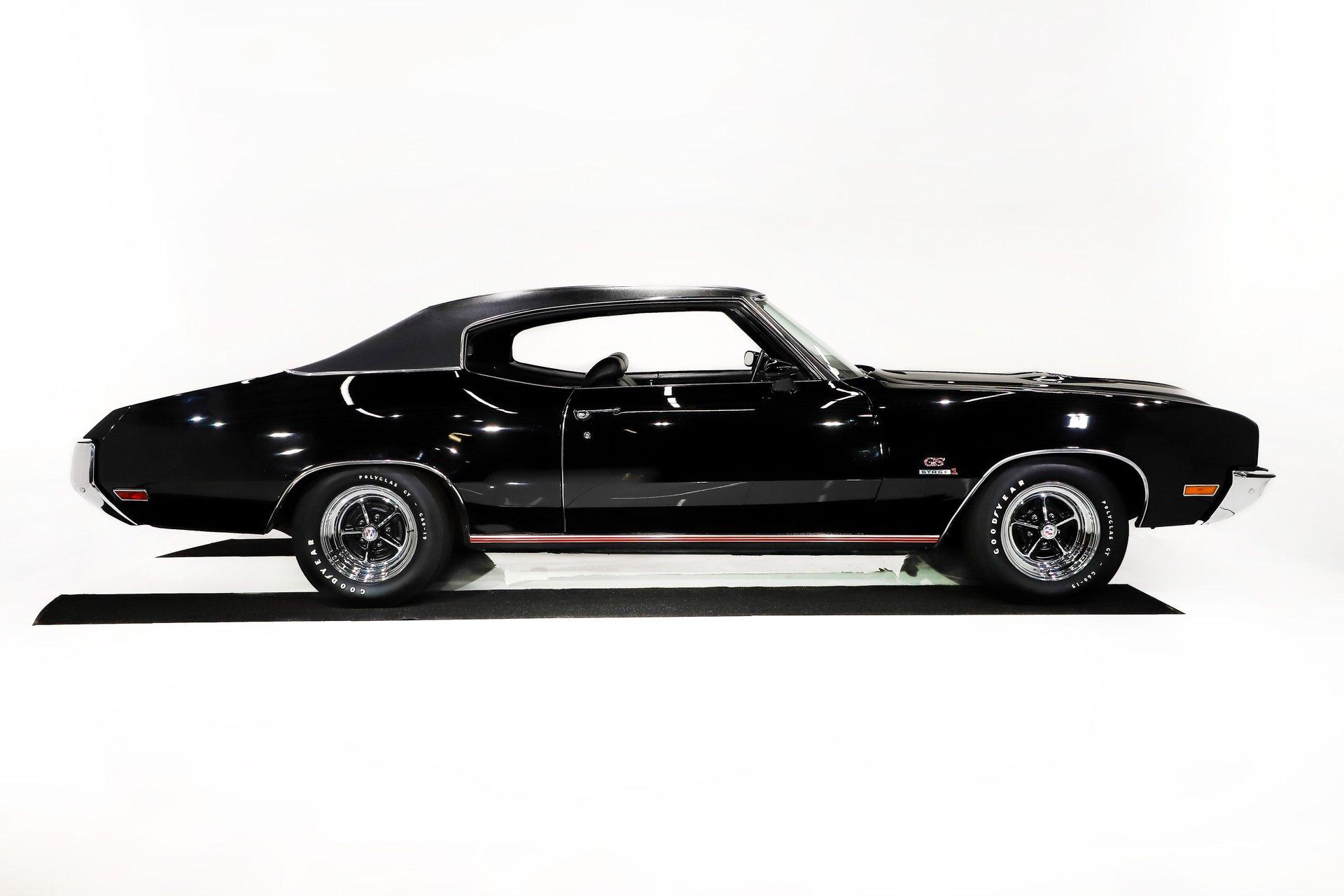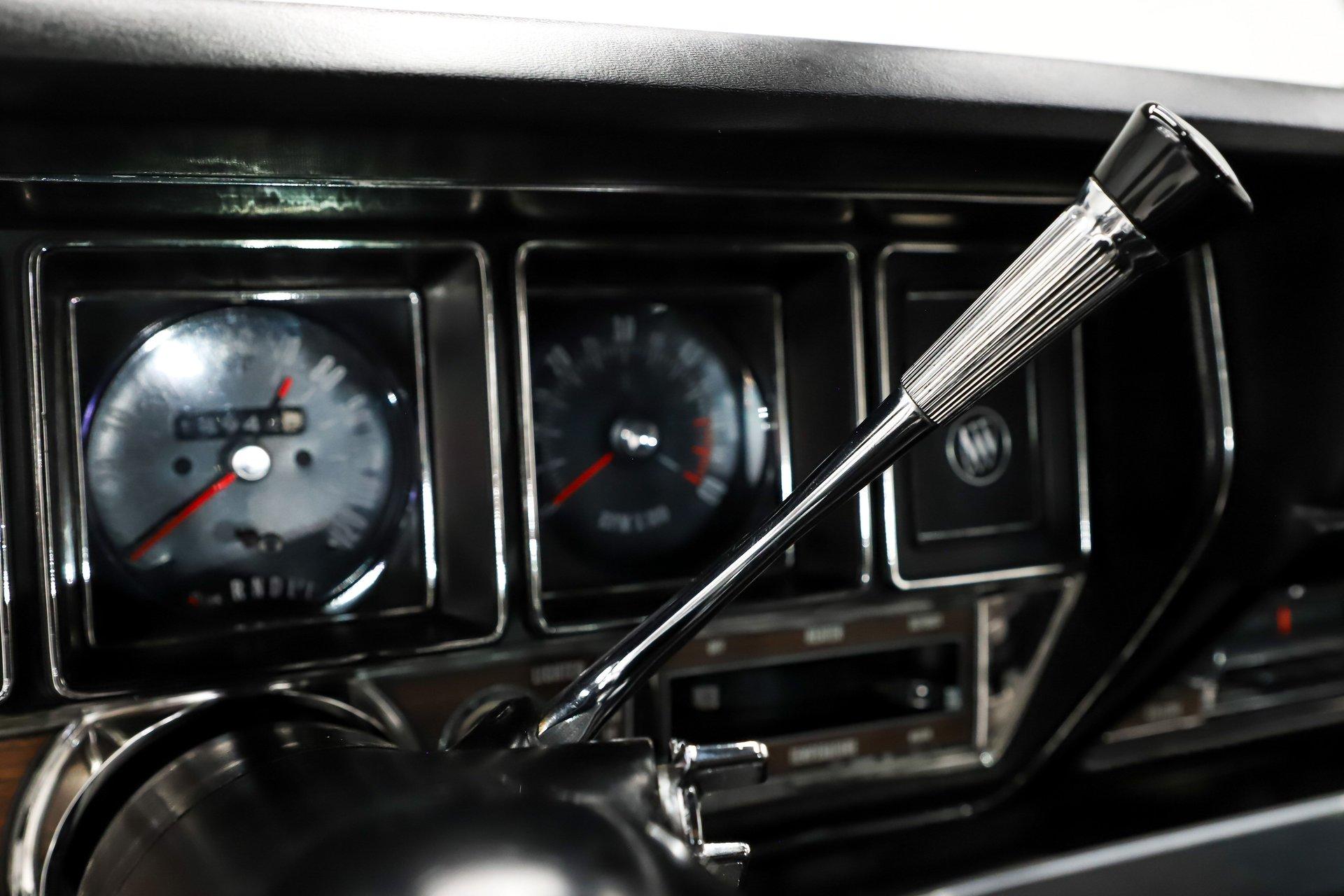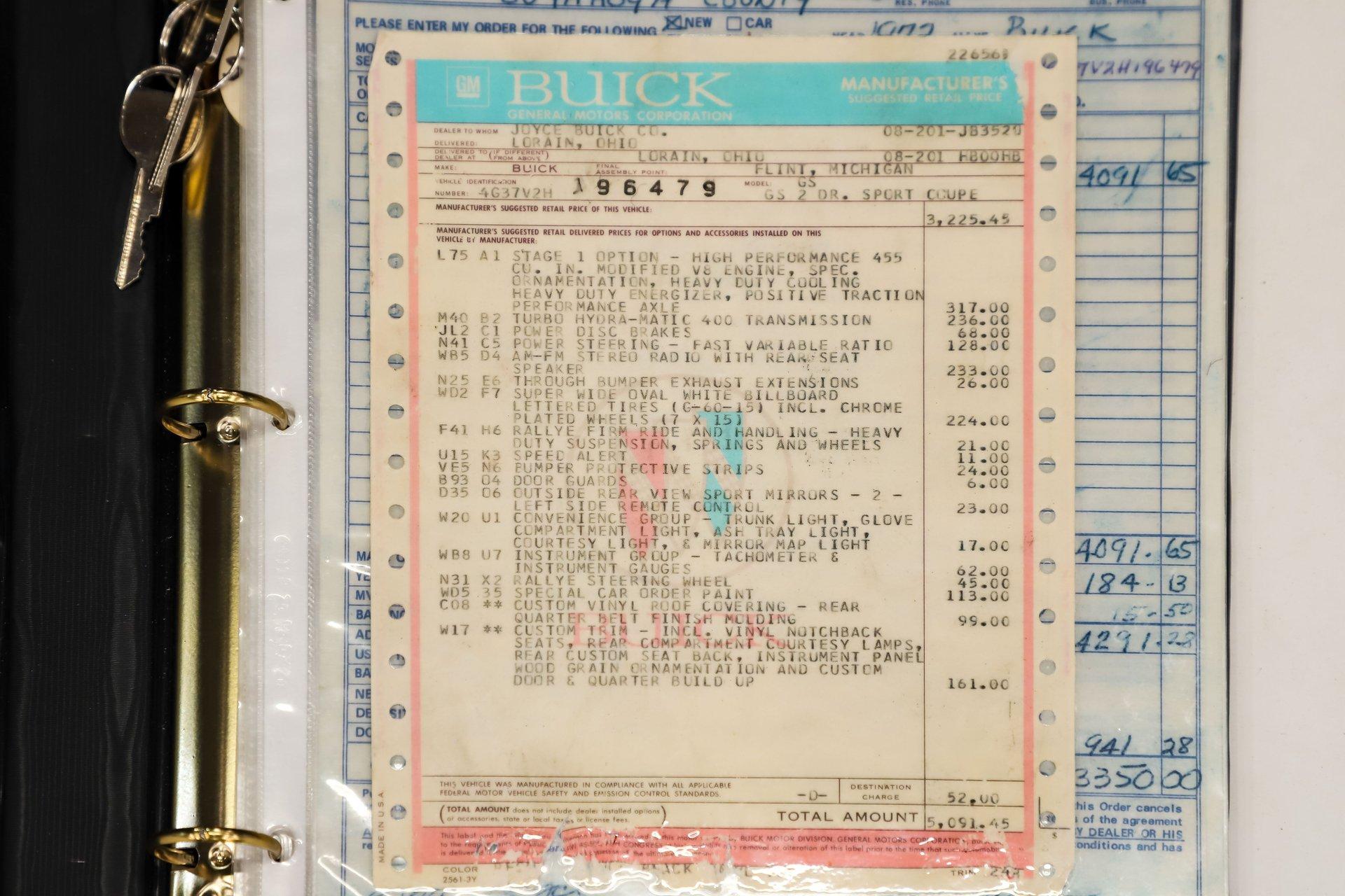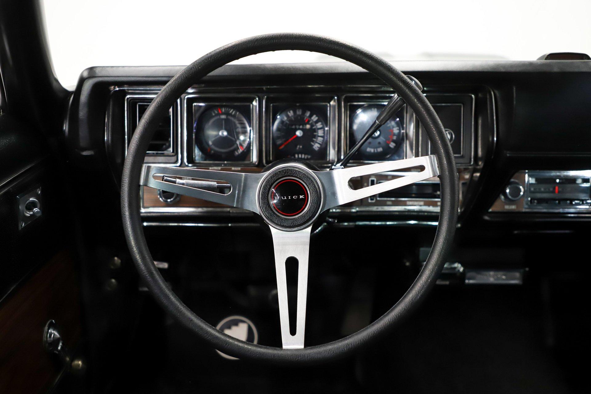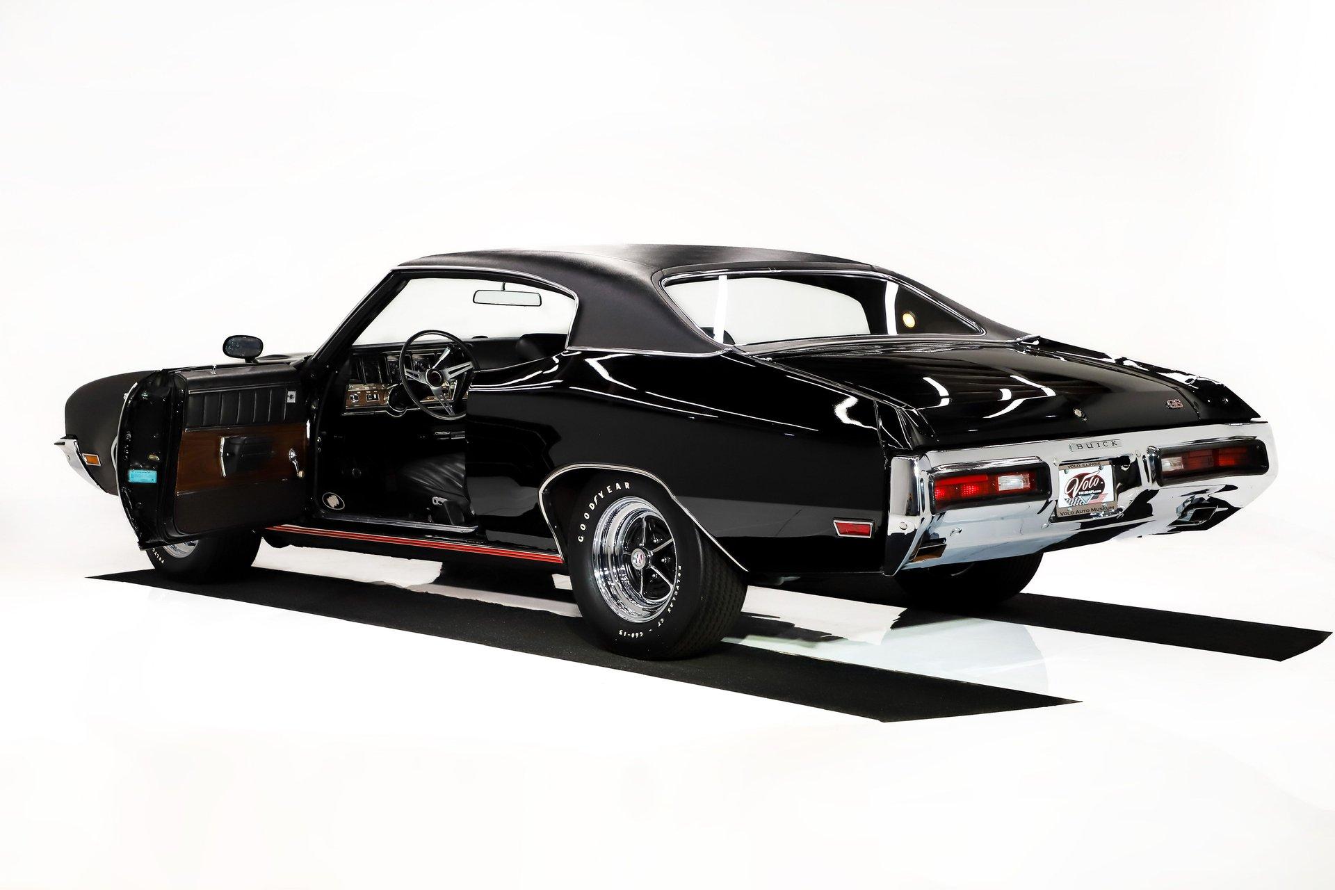 EXTERIOR: It is extraordinary that this car presents so sharply while remaining all original. It is absolutely rust free, retaining its original body panels, which are straight, undamaged, and fit exceptionally well. It is also claimed to wear its original paint and you would have to look very closely to find even the slightest imperfection. The black was a special order color costing $113 extra. It shows beautifully. All of the chrome and trim is bright, straight, and in excellent condition. The original vinyl top remains in outstanding shape. Even the original windshield is crystal clear, along with the rest of the glass. Some unique features include the ram air hood, red stripes on the rockers (unique to 455s), optional sport mirrors and the N25 rear bumper exhaust cutouts. It sits proudly on 15x7 chrome Buick mag wheels wrapped in Goodyear Polyglas GT tires, giving it an unmistakably period correct stance.