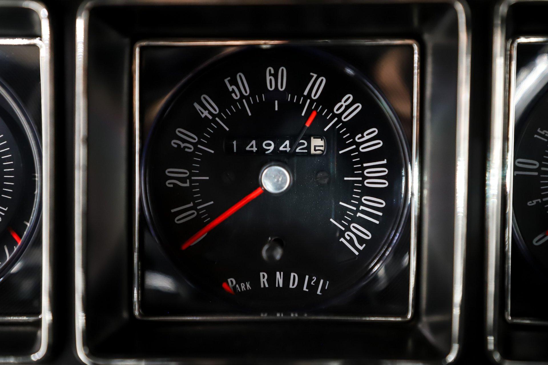 INTERIOR: It is nothing short of amazing! This is a true survivor, with what appears to be all original from the carpet to the headliner, and it presents like new. There is virtually no visible wear, tear, or aging anywhere inside the cabin. It is optioned out with the desirable deluxe interior package, featuring notchback bucket seat with a center armrest, a deluxe steering wheel, factory gauges, and a tachometer. It also includes the factory AM/FM radio along with an 8-track player for the full period correct experience. The deluxe steering wheel shows no signs of wear, the ashtray is spotless, and the cigarette lighter looks like it may have only been used a couple of times. Even the original floor mats are still looking good. Interiors this original and this well preserved are exceptionally hard to find!