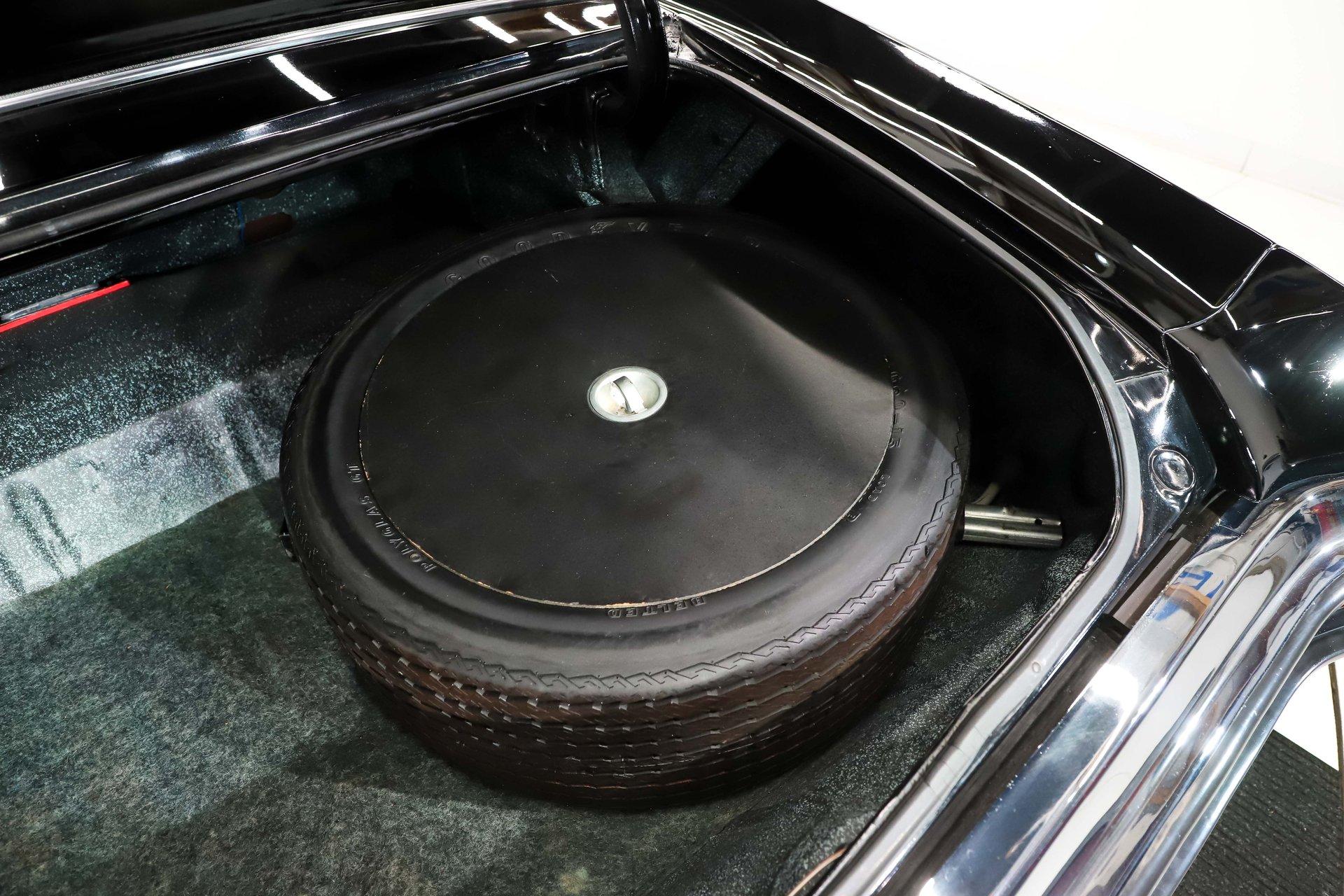 TRUNK COMPARTMENT: I'm going to geek out over this true time capsule trunk compartment! Under the trunk lid and in the jambs, you'll find clean original black paint with factory seams still visible, along with the original decal still in place. Even the weatherstrip is the original, complete with the position indicator marking at the top. Inside is something rarely seen today- authentic factory applied spatter finish paint, not from a spray can, and it remains in remarkably good condition. It also includes an original Buick GS mag wheel and tire, along with the correct jack assembly. This is exactly how it would have looked back in 1972.