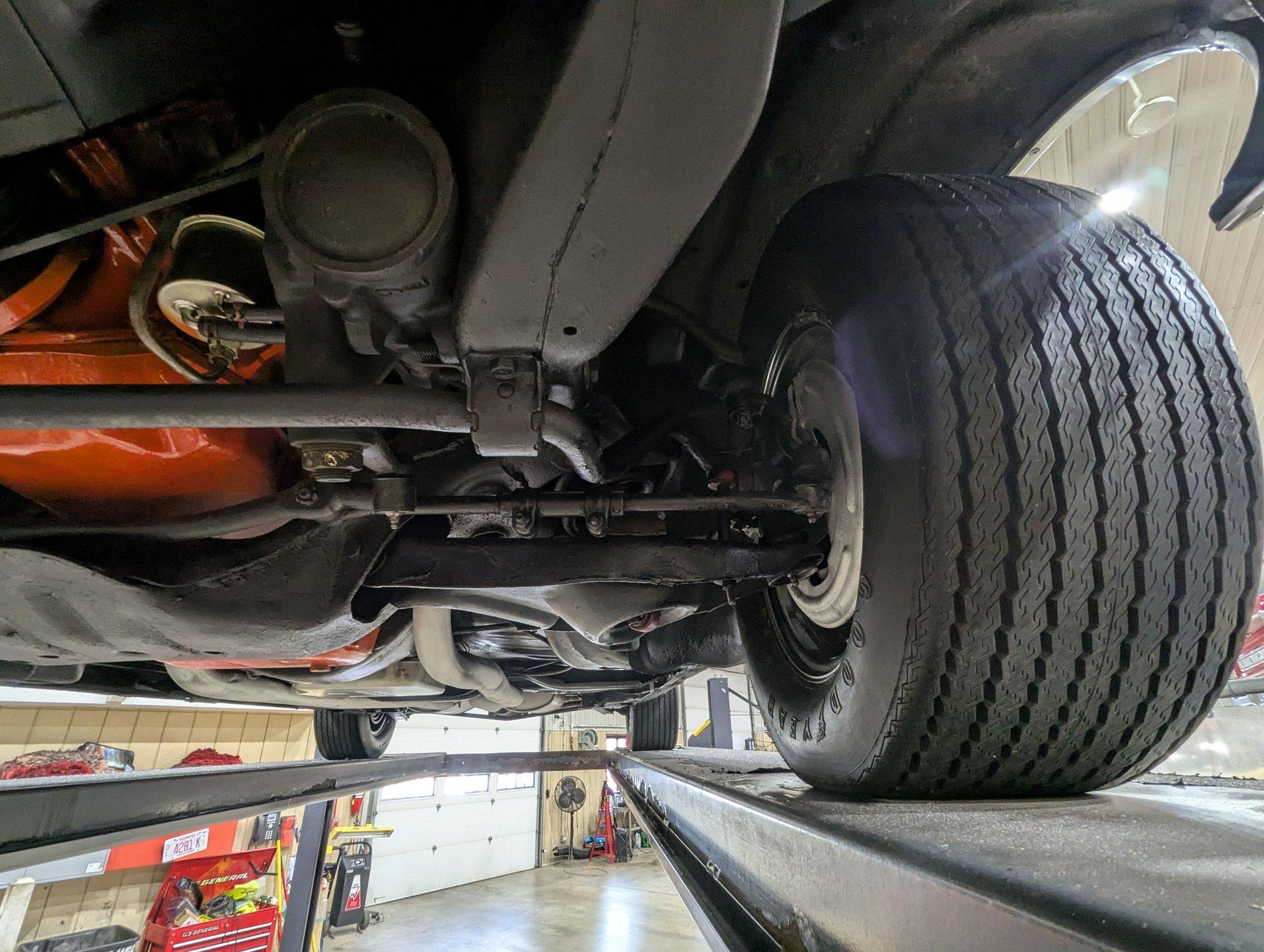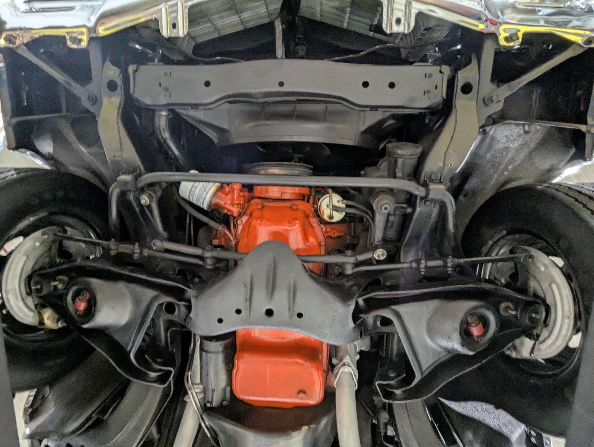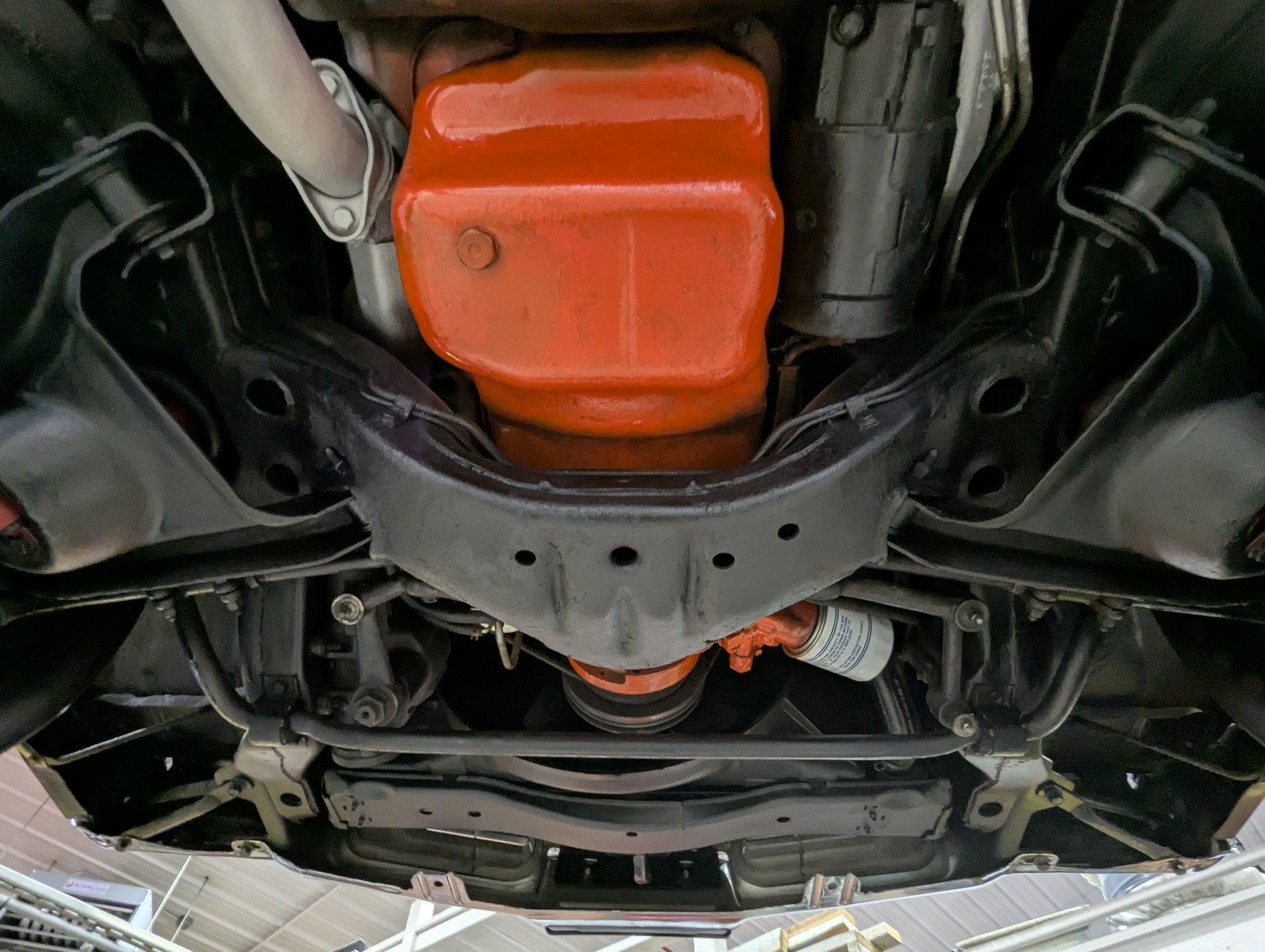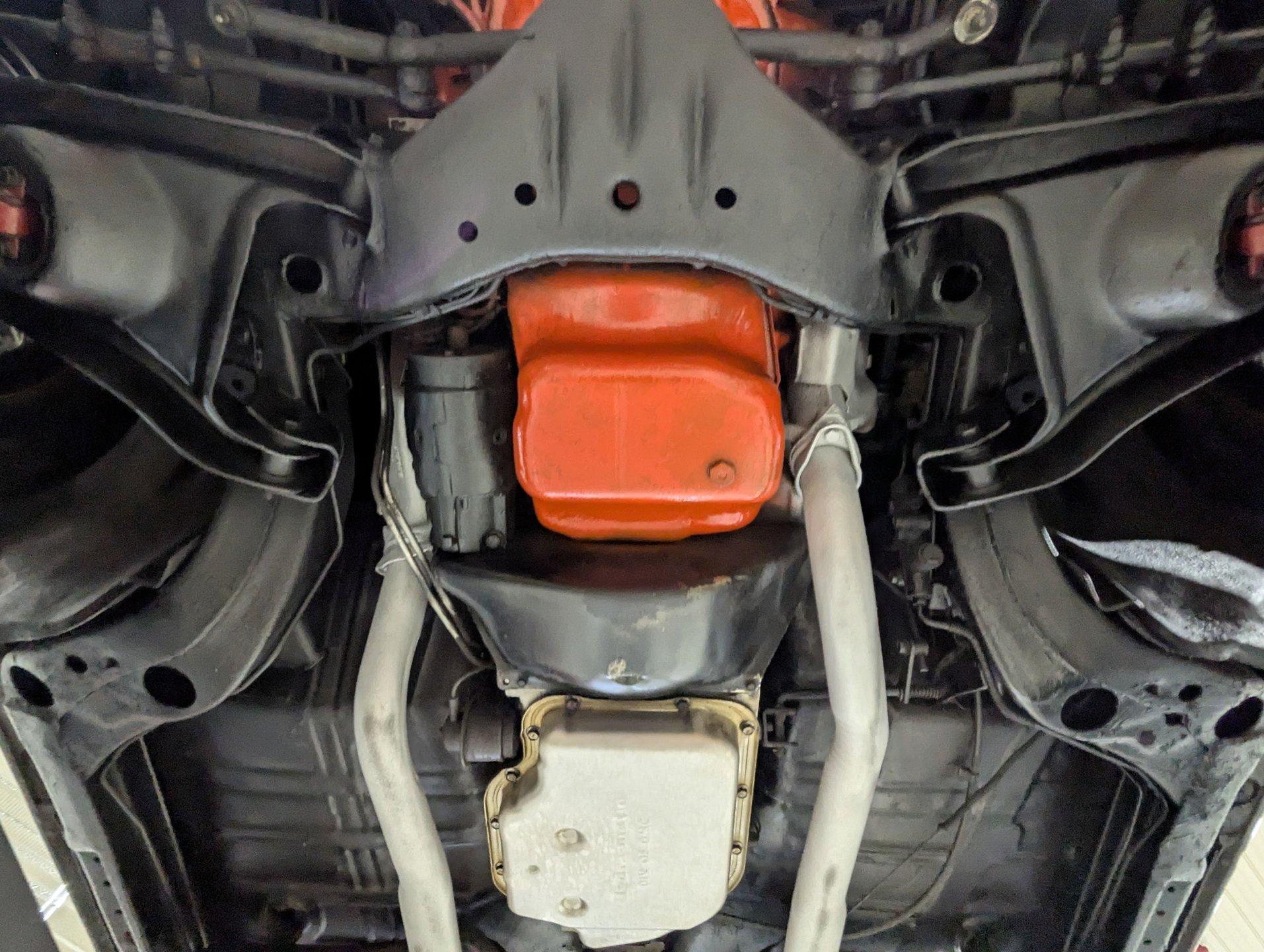 UNDERSIDE: Underneath, this car is exceptionally well preserved and has been properly maintained as needed over the years. The metal floors, braces, rockers, frame, and chassis components are completely rust-free, dry, metal throughout. It is equipped with the desirable Rallye suspension package, which includes front and rear sway bars, boxed rear control arms, and upgraded handling characteristics. The shocks have been replaced as part of regular maintenance. It is also believed to retain its original dual exhaust system, exiting properly through the rear bumper for that unmistakable factory Stage 1 look. The brake system has been maintained, featuring front disc brakes, and the emergency brake remains hooked up and functional. The fuel system is also in excellent condition. Looking up at the engine, details remain impressively authentic, including an AC Delco oil filter and the correct original starter. Backing the engine is the legendary Turbo 400 BB transmission, used exclusively in Stage 1 models. This transmission is original to the car and VIN-matching. Out back, the original rear end still carries its desirable 3.42 Posi gears, completing an original drivetrain.