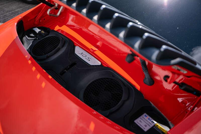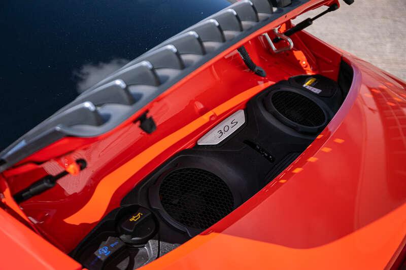 This striking example is finished in Lava Orange, a special paint finish, paired with a Bordeaux Red leather interior. The overall presentation is consistent with the indicated mileage, and the car is noted to have had one owner from new.