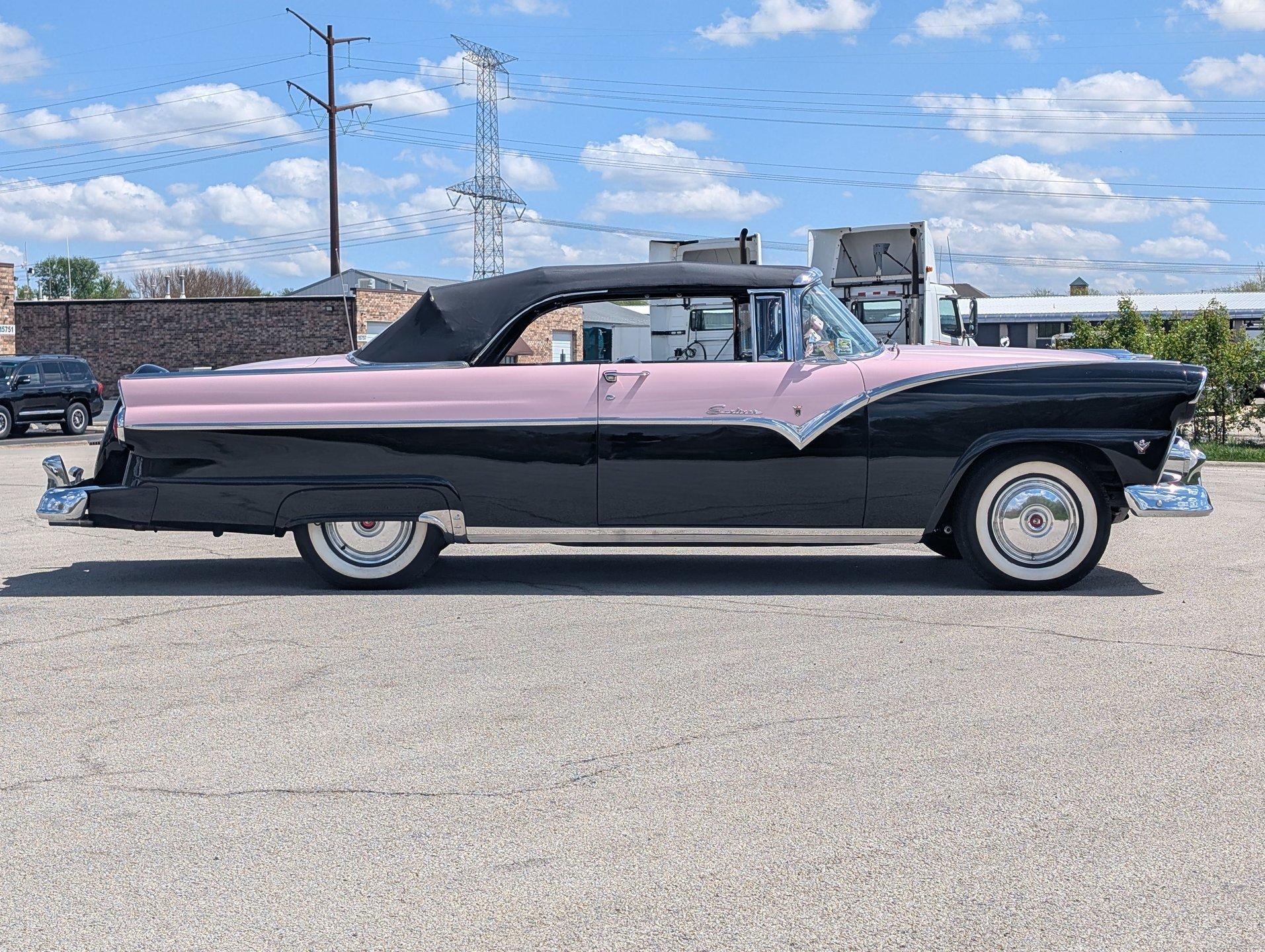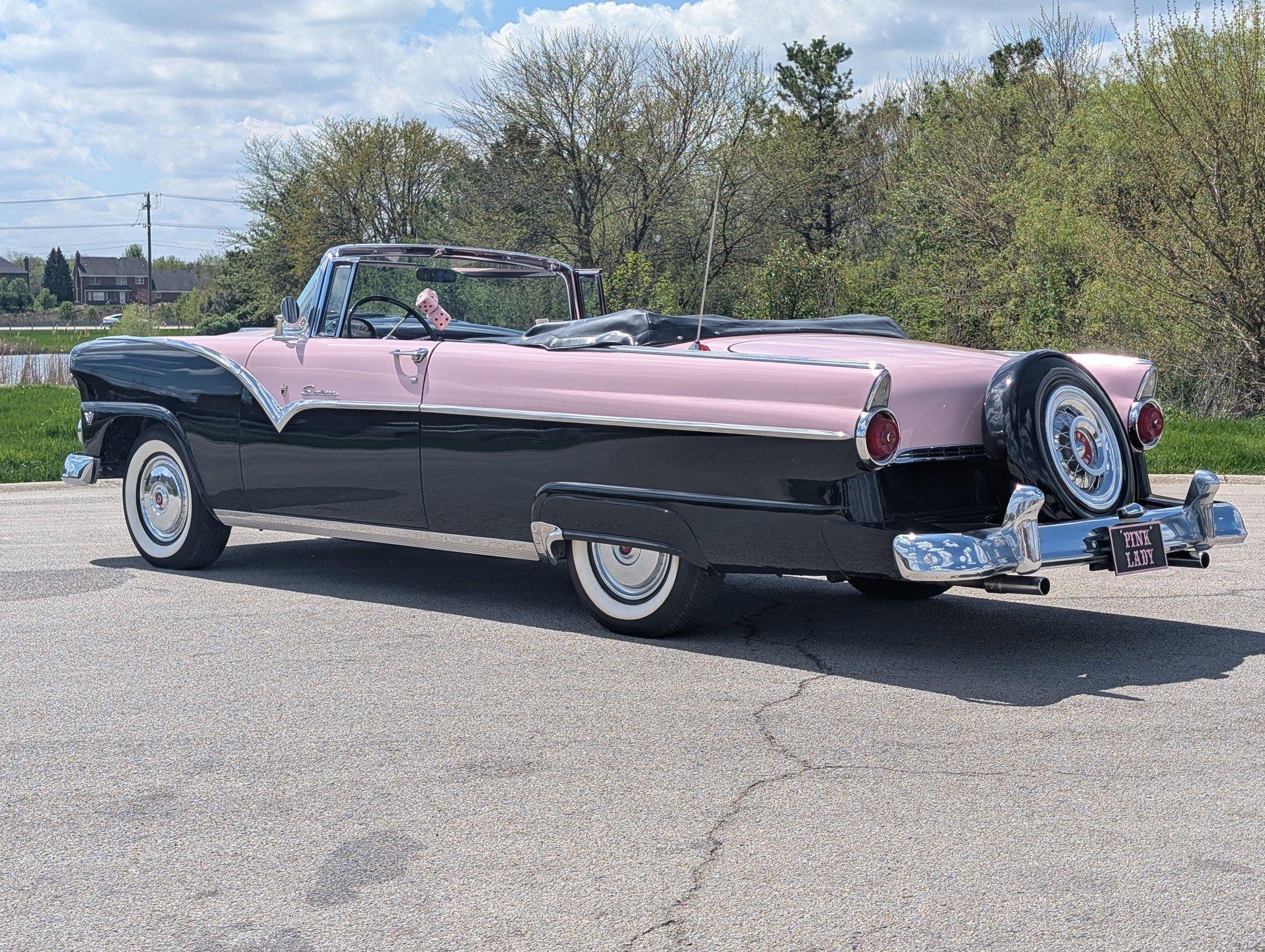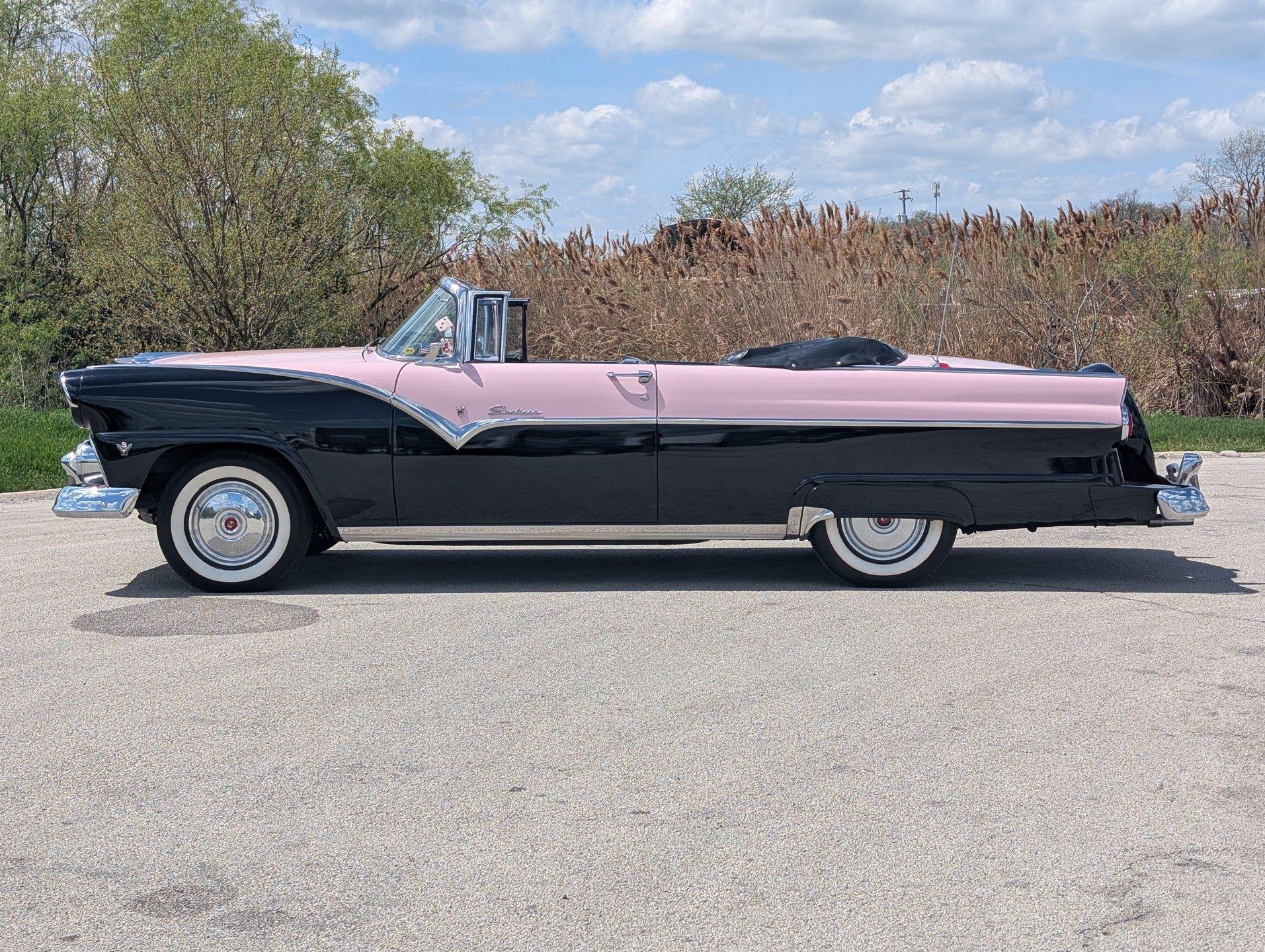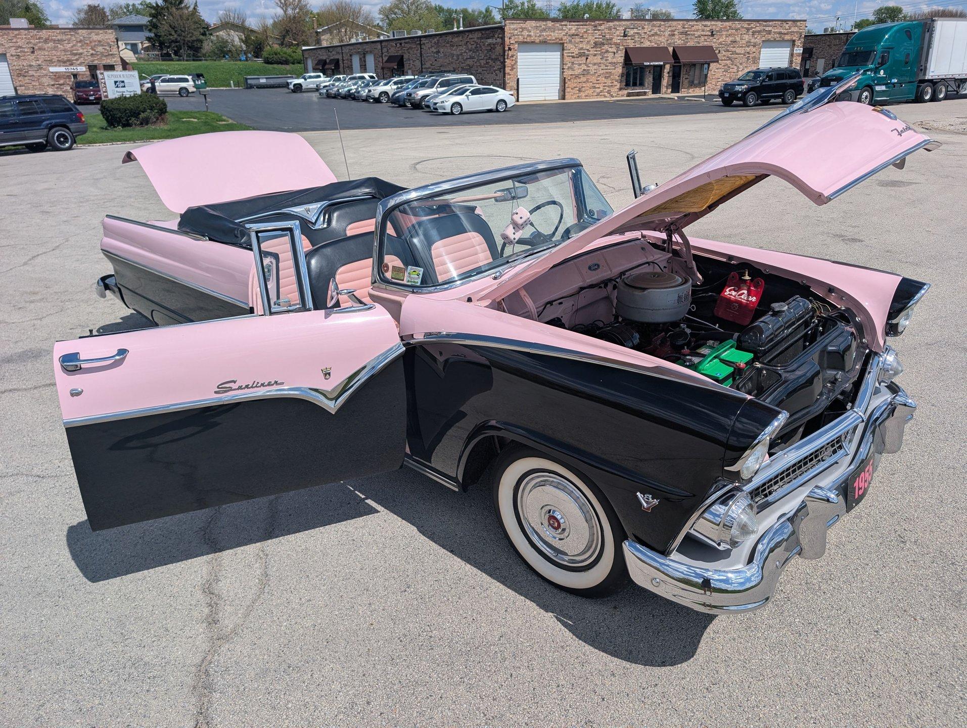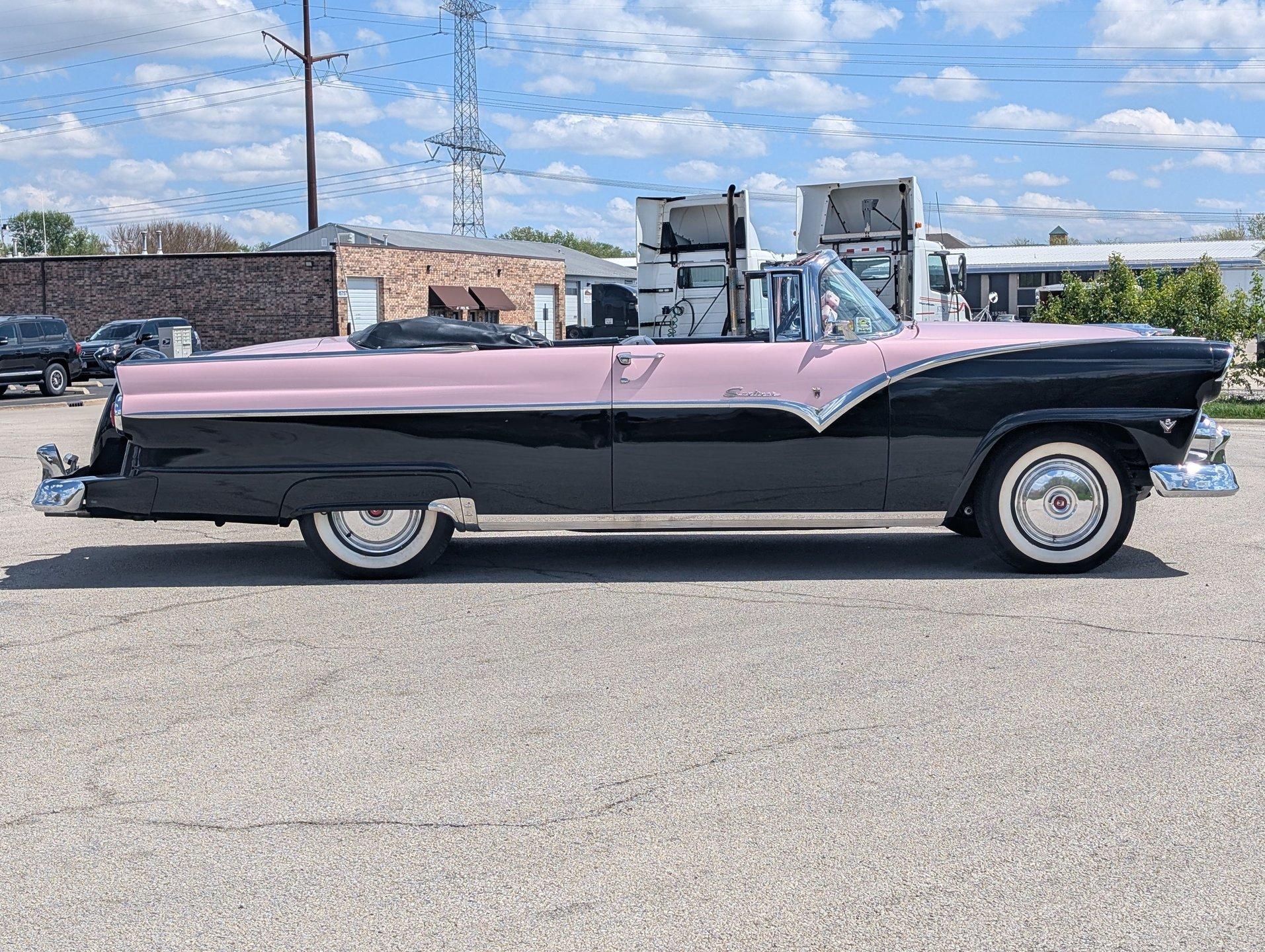 Survivor Classic Car Services Chicago is proud to present this beautiful 1955 Ford Sunliner convertible, affectionately called ''The Pink Lady.'' with a smooth-running 272 cubic inch Y-block ford V8 under the hood paired to an automatic transmission, this drop top was built to cruise! The engine starts up with no fuss and is ready to take you anywhere you want to go! The front and rear bench seats give you plenty of room to stretch out or to squeeze up and get cozy with your partner.