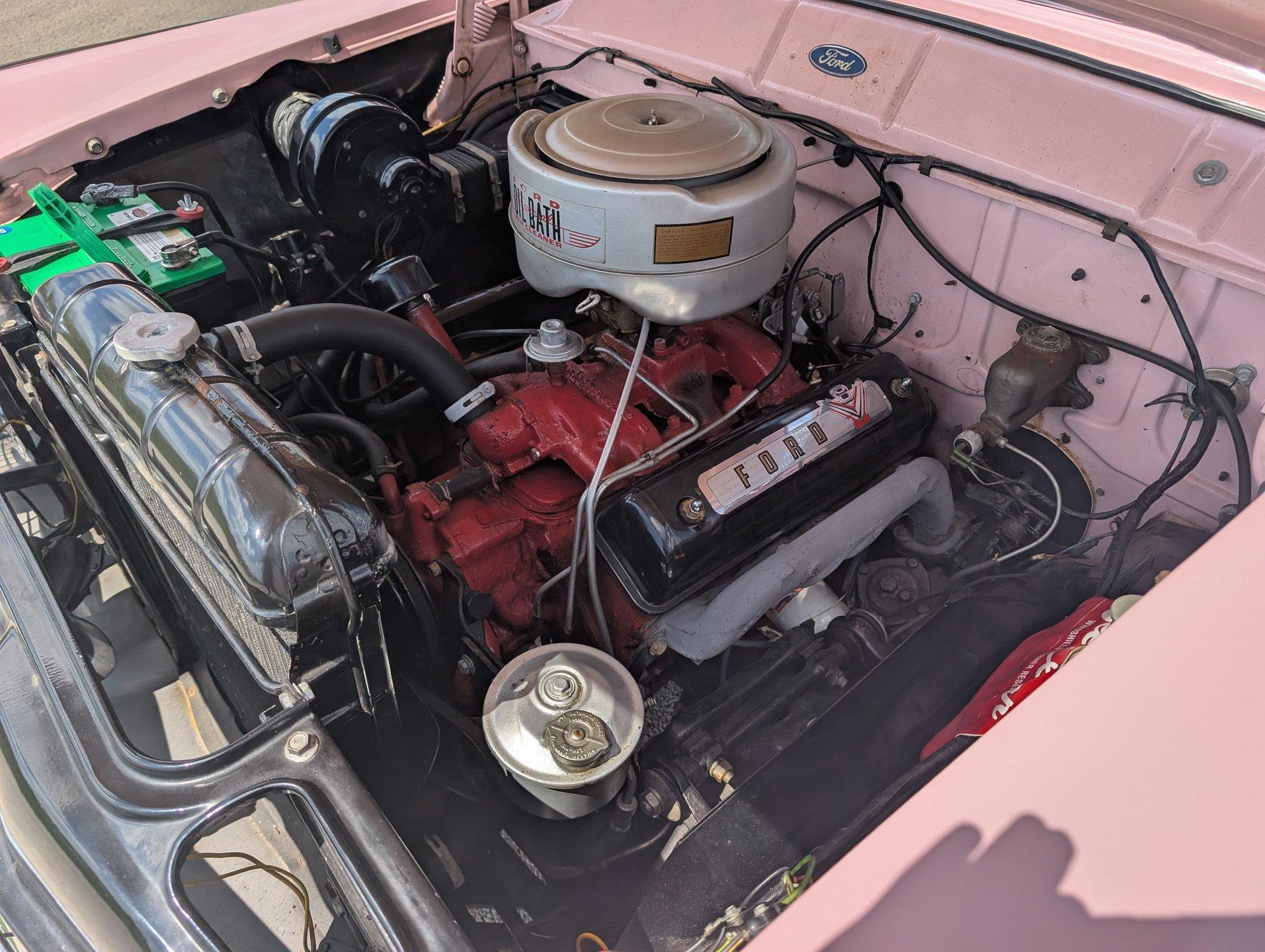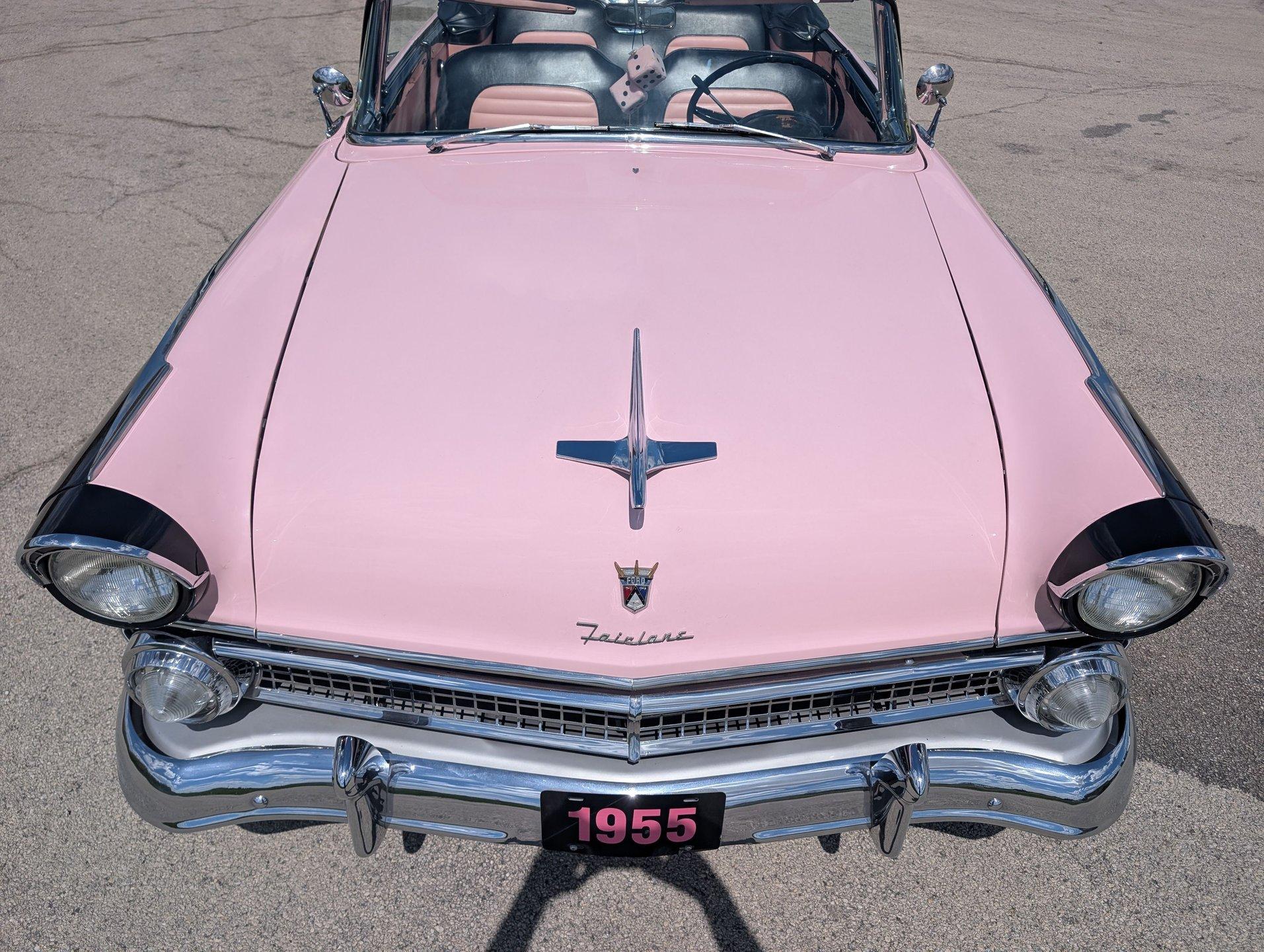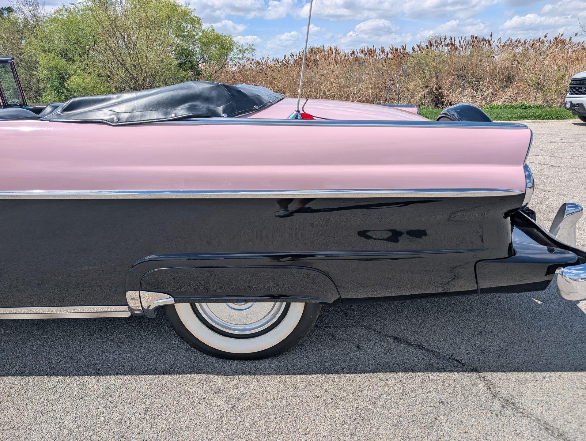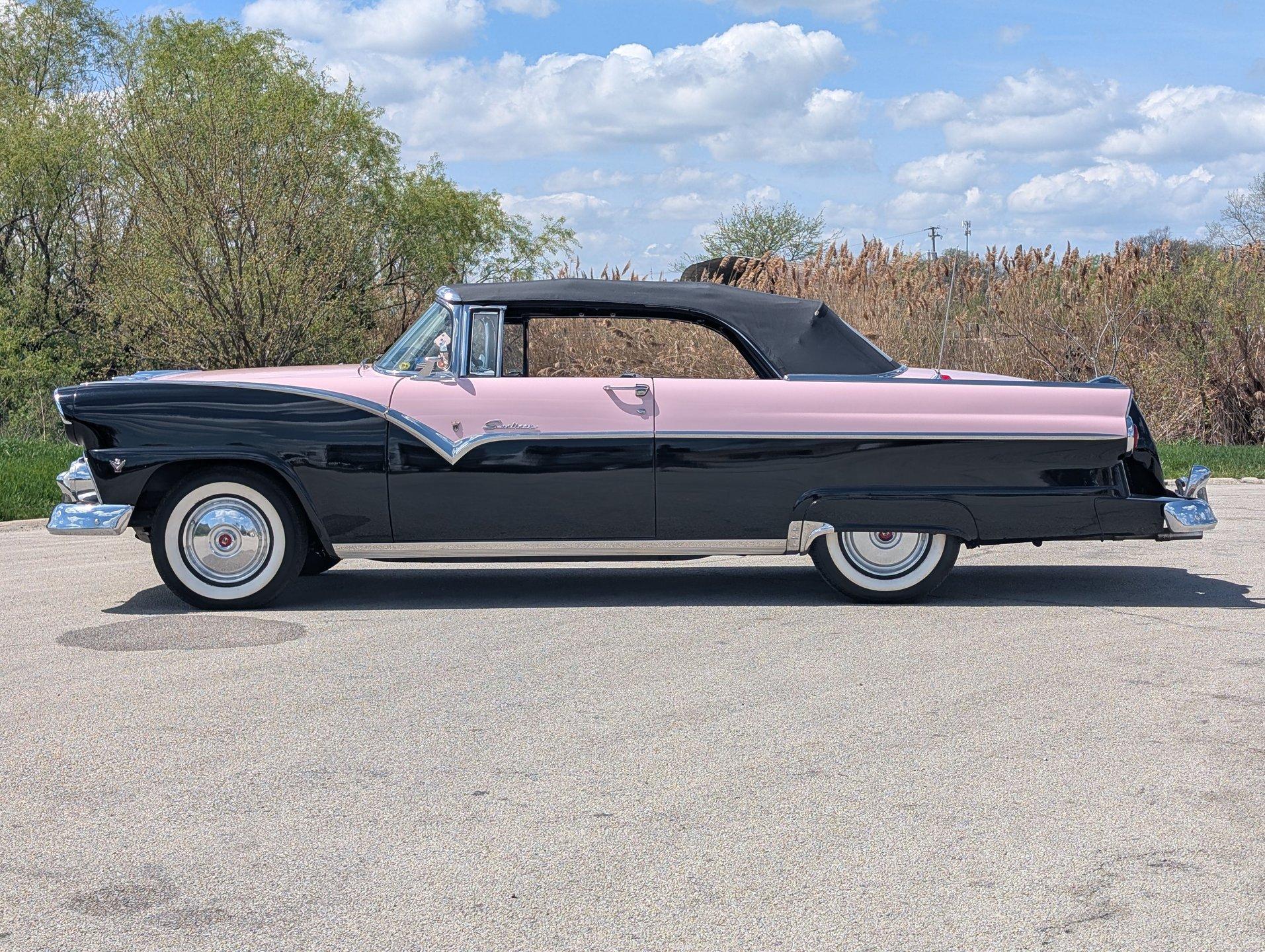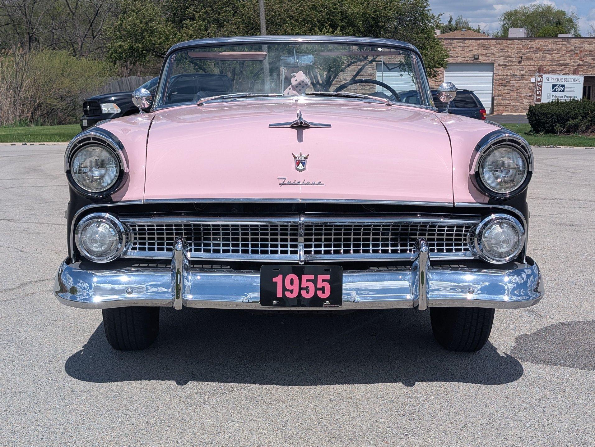 Survivor Classic Car Services Chicago is proud to present this beautiful 1955 Ford Sunliner convertible, affectionately called ''The Pink Lady.'' with a smooth-running 272 cubic inch Y-block ford V8 under the hood paired to an automatic transmission, this drop top was built to cruise! The engine starts up with no fuss and is ready to take you anywhere you want to go! The front and rear bench seats give you plenty of room to stretch out or to squeeze up and get cozy with your partner.