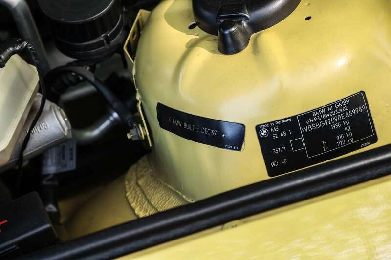 Offered here is this exceptional E36 M3 Evolution, showing just over 24,000 miles from new. A UK-specification, manual gearbox, right-hand drive example ordered through Jacksons of Jersey, it is finished in Dakar Yellow with heated black Nappa leather seats, dual-zone climate control and BMW Business audio with CD changer.