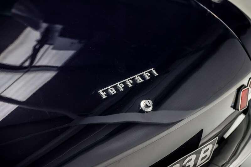 Since its arrival in the UK, the Ferrari has benefitted from careful and knowledgeable ownership. Previously in the custodianship of a qualified motor engineer and Aston Martin specialist, the car was enjoyed on European tours and maintained to a high standard. During this period, it was subject to a comprehensive body restoration, including a full strip-down and rebuild with particular attention paid to panel fit, before being refinished in the correct Ferrari shade of Pozzi Blu.