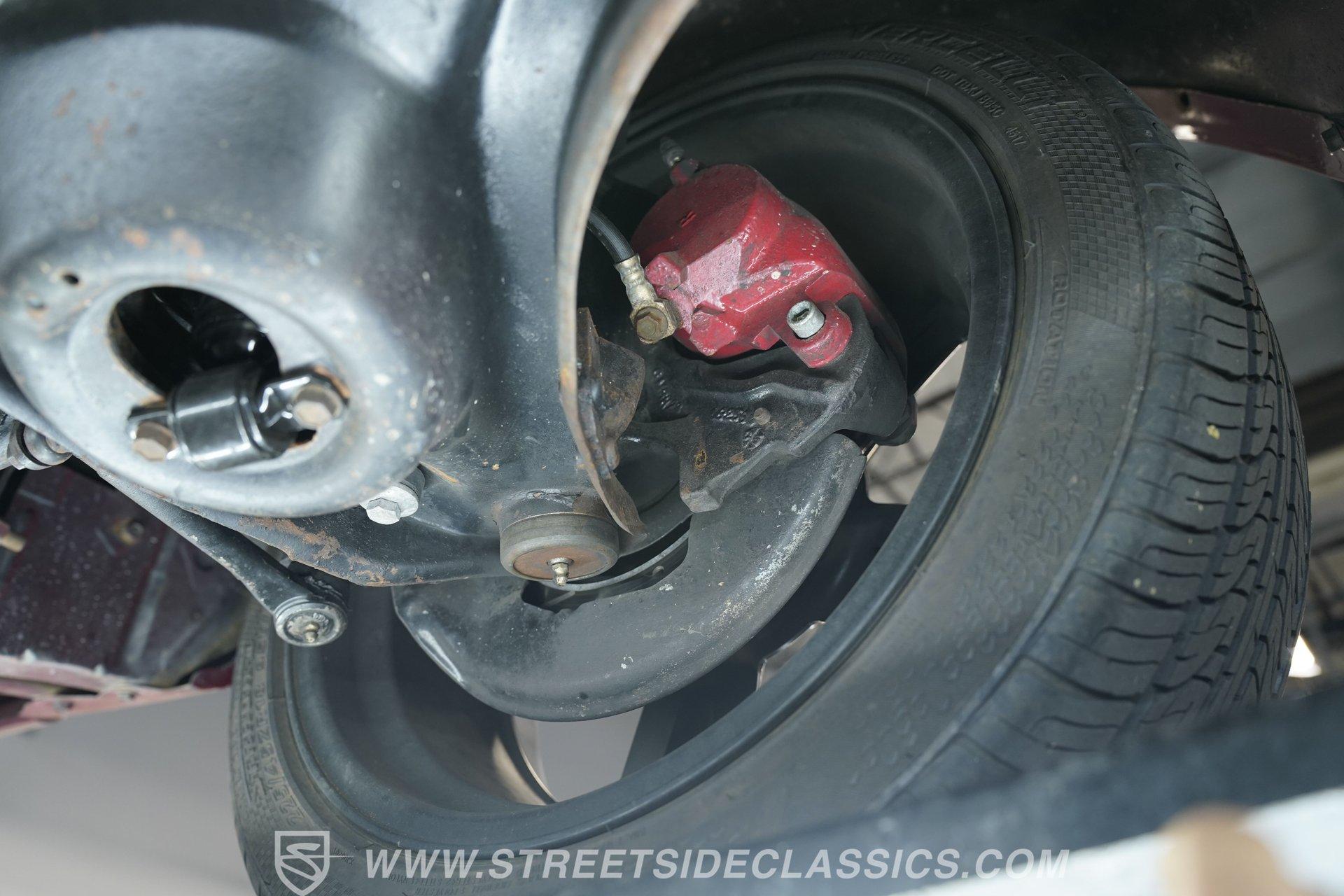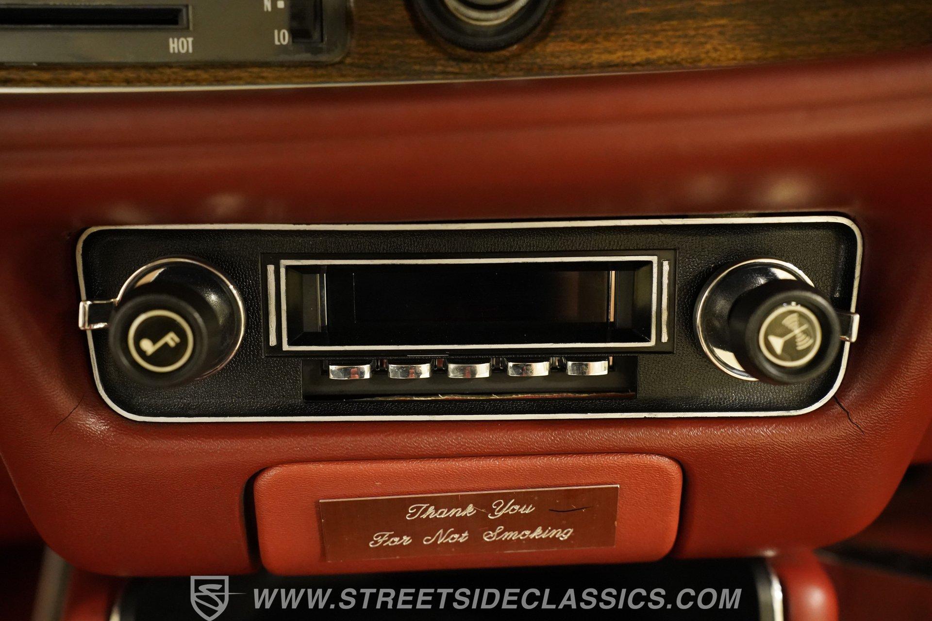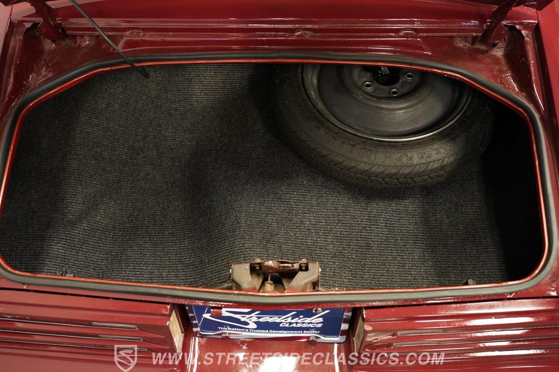 Step inside to a clean, inviting cabin dressed in white vinyl bucket seats that balance vintage charm with comfort. The interior features tasteful upgrades such as a tilt steering column, a woodgrain steering wheel, and a RetroSound radio with Bluetooth connectivity, enhancing your drive without sacrificing authenticity. The dash, carpet, and headliner maintain their classic appeal, while the cruise control adds a touch of convenience for longer journeys.