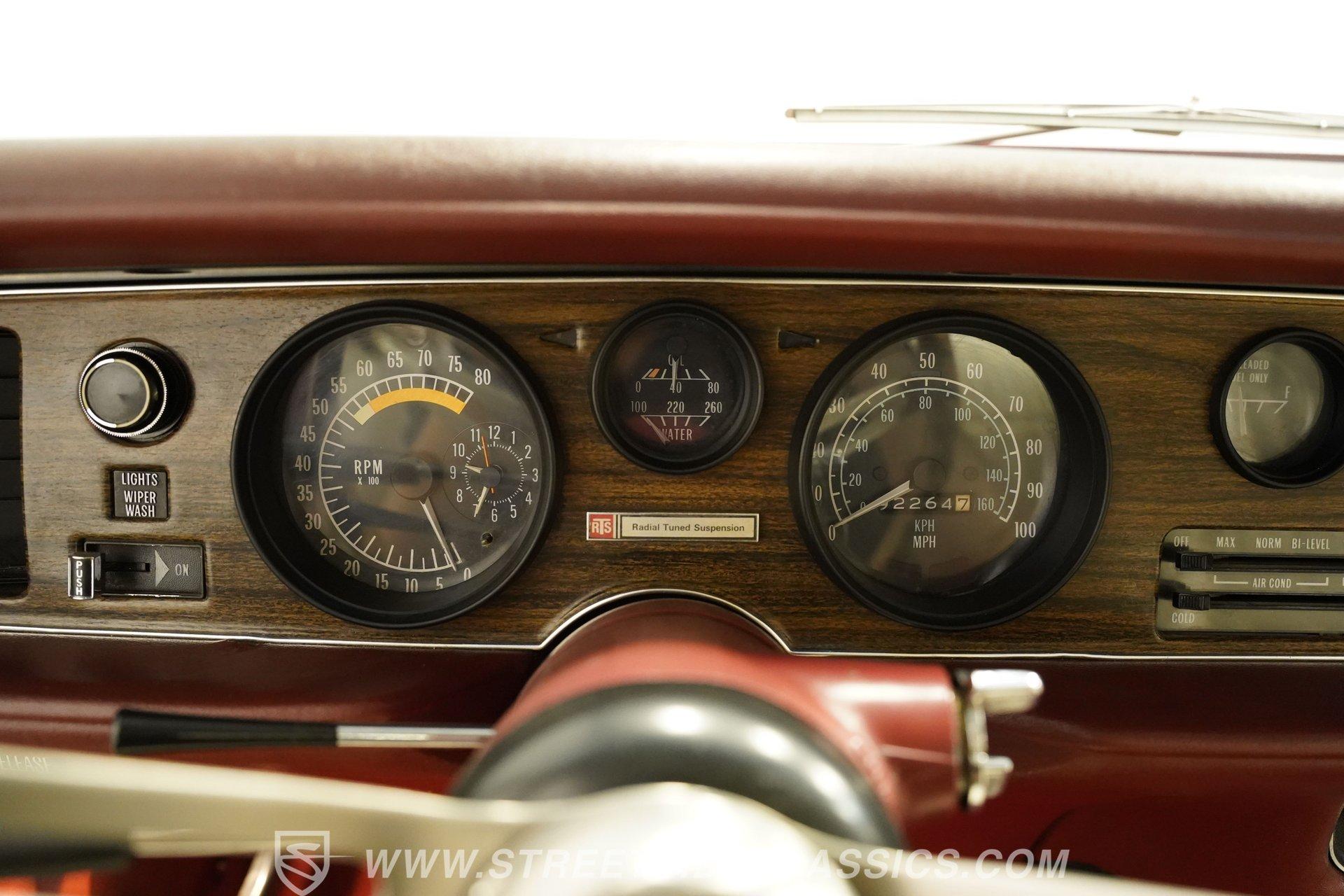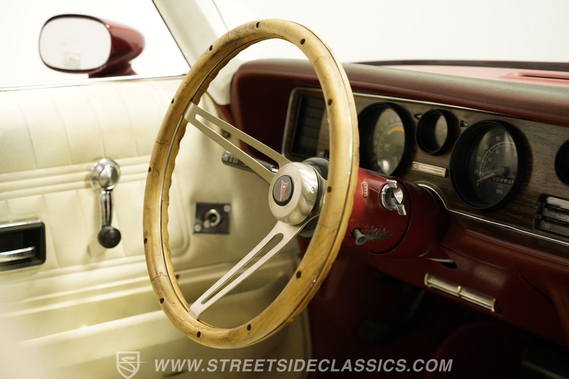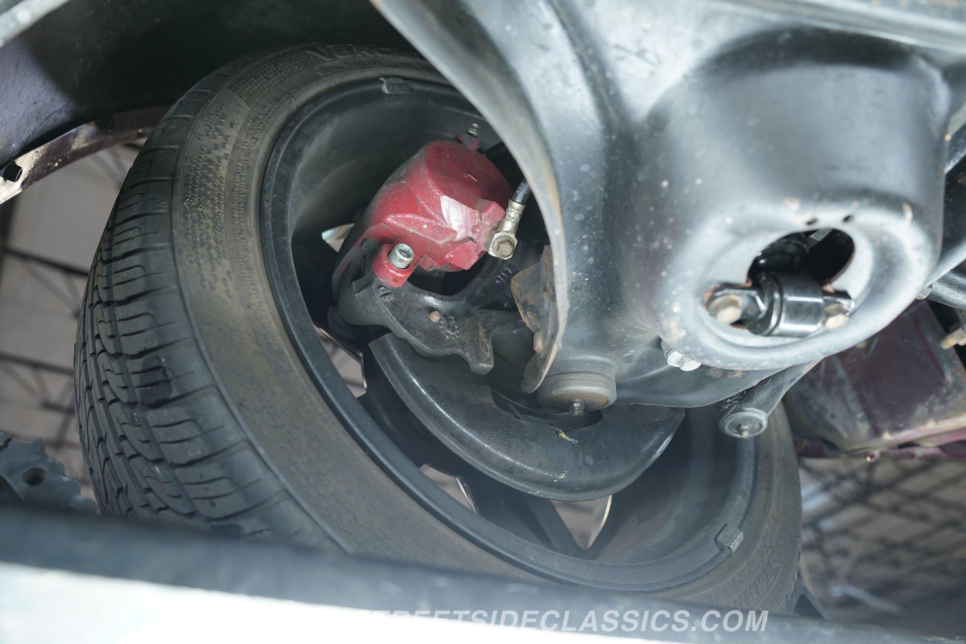Step inside to a clean, inviting cabin dressed in white vinyl bucket seats that balance vintage charm with comfort. The interior features tasteful upgrades such as a tilt steering column, a woodgrain steering wheel, and a RetroSound radio with Bluetooth connectivity, enhancing your drive without sacrificing authenticity. The dash, carpet, and headliner maintain their classic appeal, while the cruise control adds a touch of convenience for longer journeys.