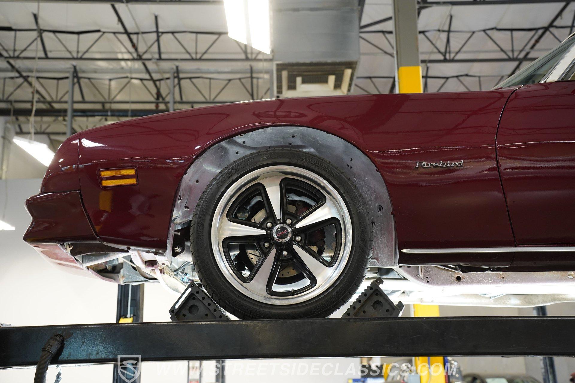 Under the hood, the original YZ suffix Pontiac 400 V8 roars to life with a factory-style Quadrajet four-barrel carburetor feeding its hungry lungs. This powerhouse is paired with a smooth-shifting TH350 three-speed automatic transmission that delivers strong, confident acceleration and effortless cruising. Power steering and power brakes provide responsive handling, while dual Flowmaster mufflers give the Firebird its signature deep rumble. Cooling is enhanced by an aluminum radiator and dual electric fans, ensuring spirited drives remain cool and reliable.