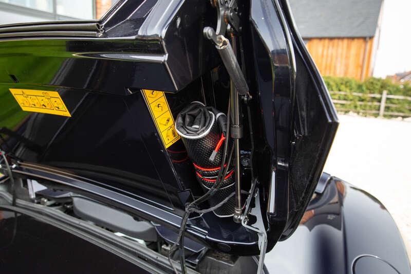 The car presented here is a 2014 McLaren MP4-12C Spider, and would be a prime candidate for a collector-quality example. Finished in the special exterior colour of Sapphire Black (with Sport Alcantara and Leather interior trim in Carbon Black) this is one of the very last examples off the production line, and one of only 15 Spiders in the UK. The specification included Active Dynamics Panel (which offers Normal, Sport and Track settings for the hydraulically controlled suspension), Exterior Stealth Pack, Front & Rear Parking Sensors, Carbon Fibre Interior Upgrade (centre console, steering wheel, door-mounted button surrounds), Harissa Red Stitching, Lift System, Diamond-cut Lightweight Forged Wheels, Red Brake Callipers, Sports Exhaust, Volumetric alarm upgrade, heated/electric seats, climate/cruise control and branded floor mats.
