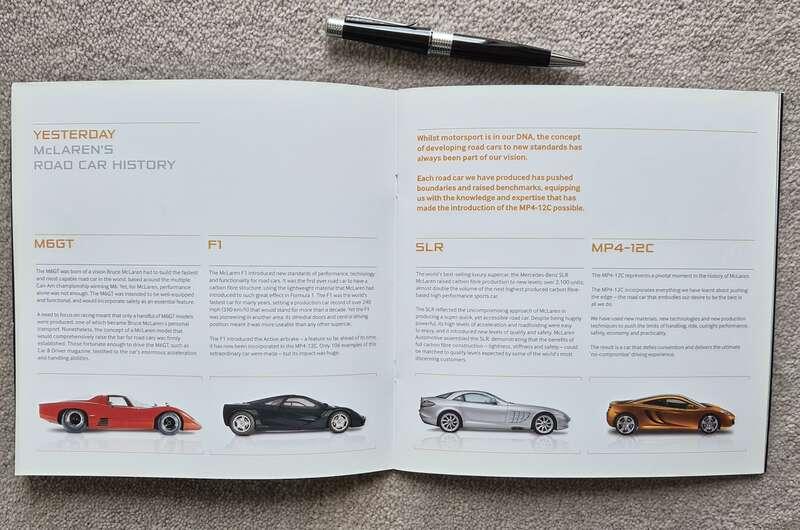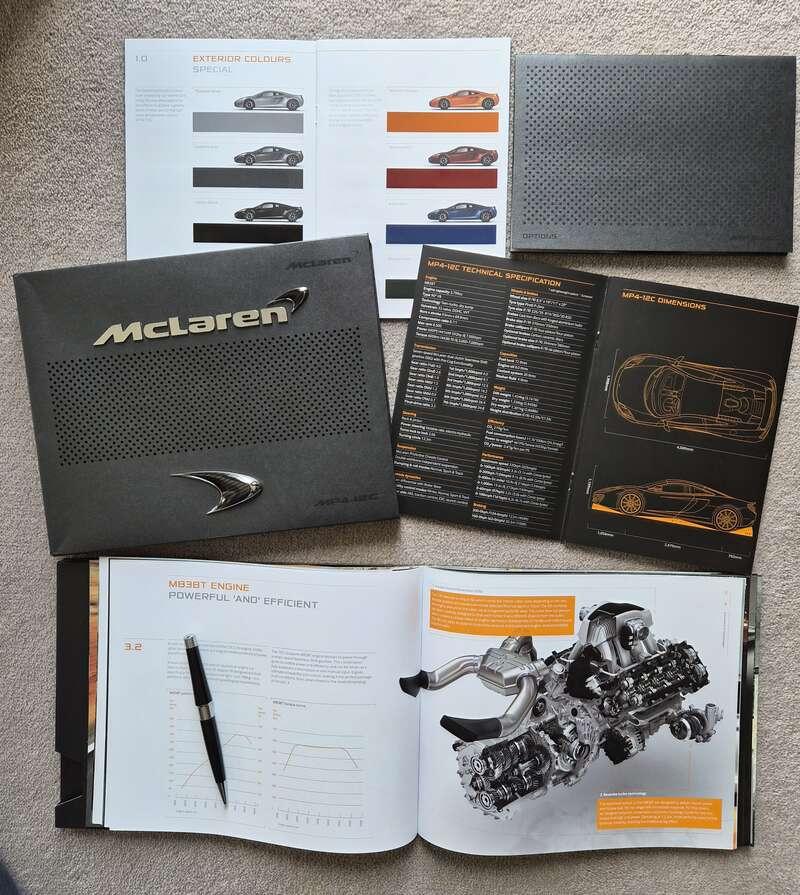 It has covered just 2,730 miles from new, whilst being kept in the most fastidious fashion, and is accompanied by all its ‘from-new’ elements, including a full key/fob set, all user guides (and servicing booklet), drivers manual, 12C style and engineering guide (including Colour & Trim, Options, and Technical Specifications booklets), 50 Years of McLaren and McLaren racing history booklets, plus some very special and highly collectible McLaren memorabilia – including 12C artwork signed by Button and Hamilton and two hardback books, McLaren – The Wins and McLaren – The Cars, both signed by all the designers and engineers involved with the 12C - this is quite the package! One for the Collector perhaps, there is much to appreciate here.