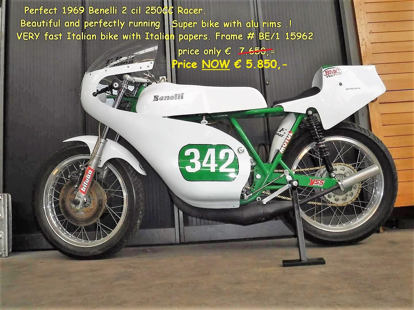 Perfect 1969 Benelli 2 cil 250 cc racer.Beautifull and perfect running super bike with alu rims. Very fast Italian bike with italian papers. Biggest choice in REAL Classic Cars in "the Stolze Collection" with more than 450 cars in stock ! From a project to perfect .