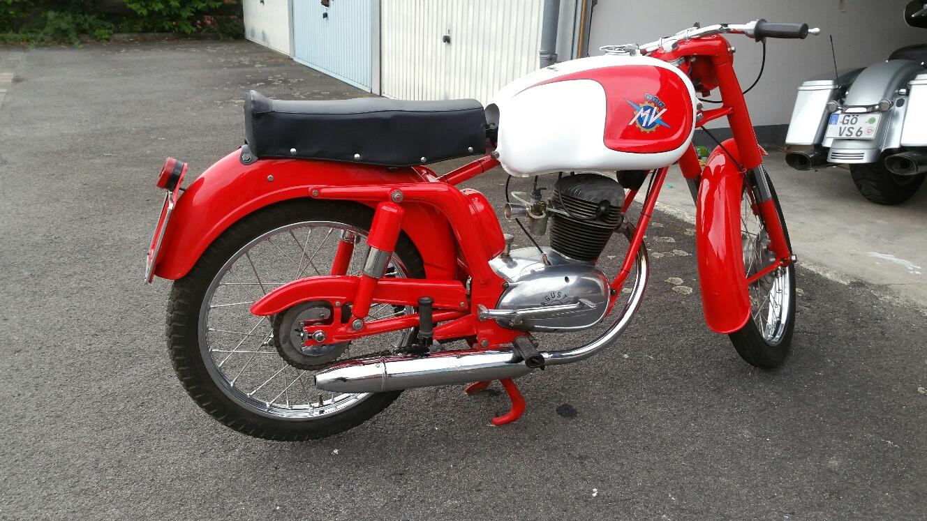 A perfectly restored, all original MV Agusta 125CC Sport. A VERY, VERY nice and good running bike. Big choice in bikes and mopeds in ''''the Stolze Collection''''!