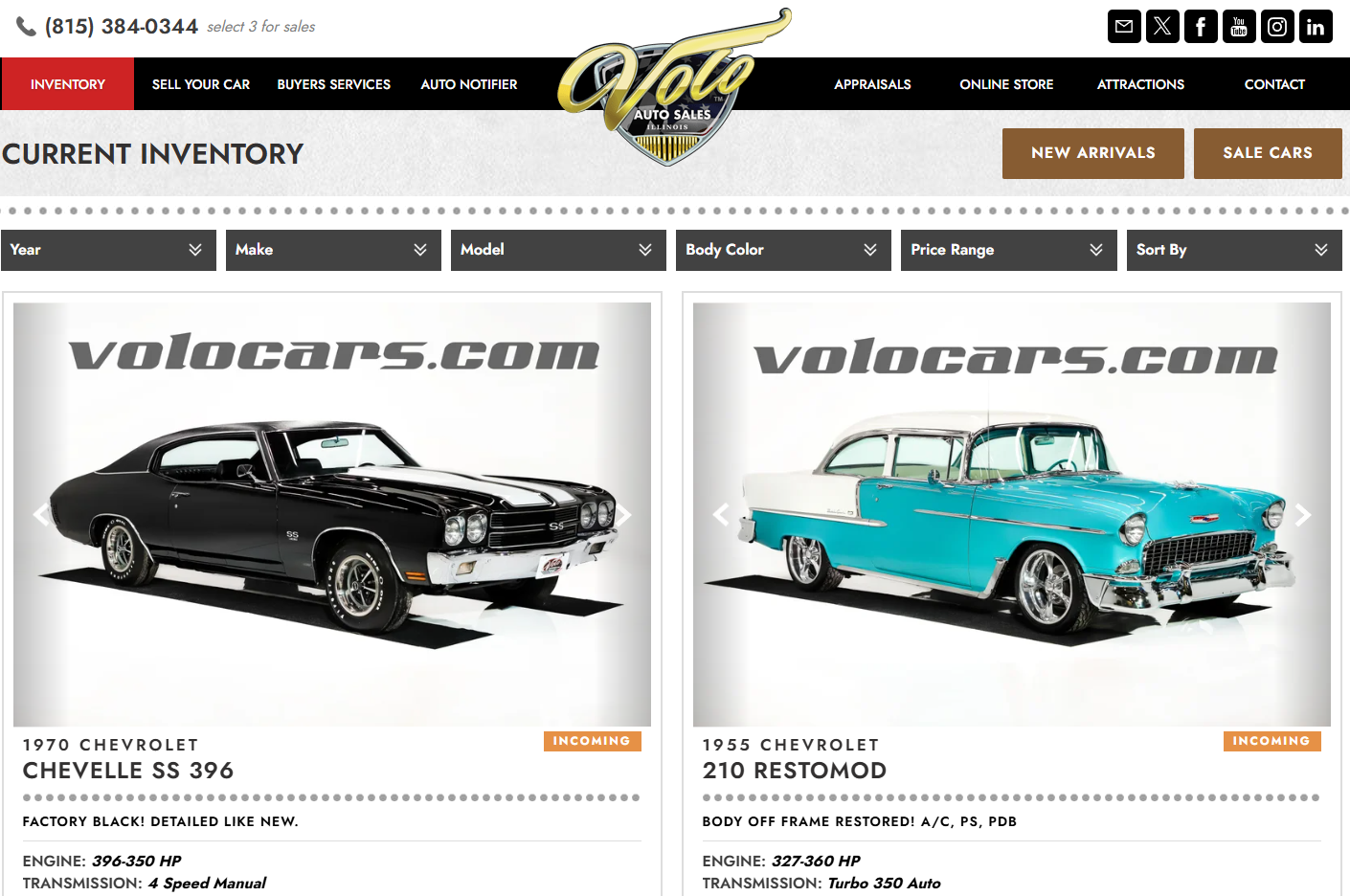 Established in 1960, Volo Museum Auto Sales is a fifth generation family business offering 225 top tier classic automobiles from concours collector grade cars to pro touring performance builds. Each vehicle is carefully selected, serviced and extensively presented to ensure confidence and transparency. Our experienced and knowledgeable staff is dedicated to guiding you through every step of the buying process.